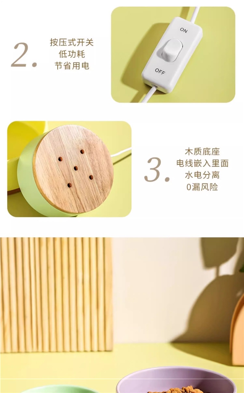 • ⭐ 550ml [세라믹 옐로우] 가열그릇 [푸시스위치+원목베이스+플러그] (품질검사 통과)