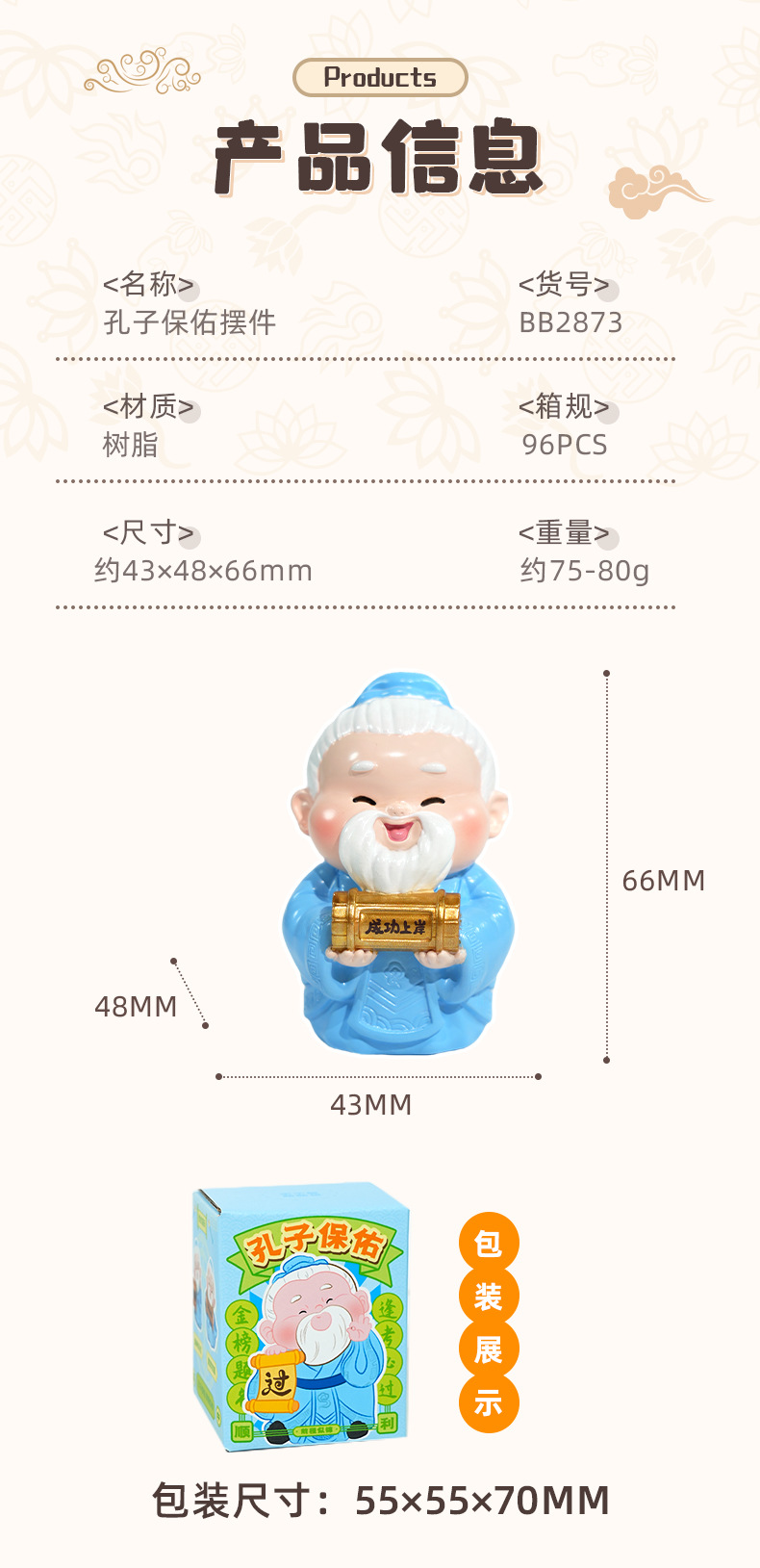 Wen Chuang 선물 공자 축복받은 장식품 국가 조수 좋은 의미 1 위 공자 만화 귀여운 장식품 선물스토어 가기