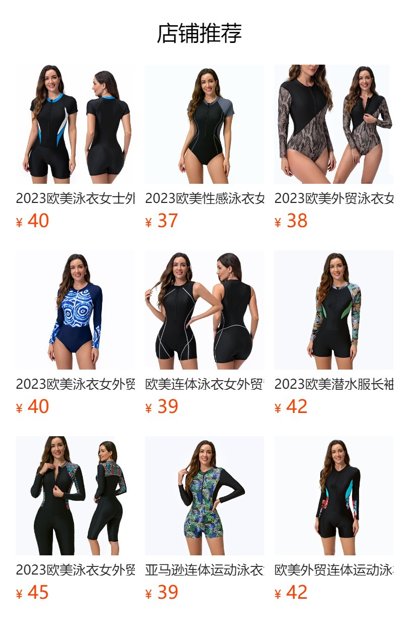 2023 새로운 유럽 및 미국 수영복 여성 긴팔 지퍼 서핑 세트 대외 무역 비키니스토어 가기
