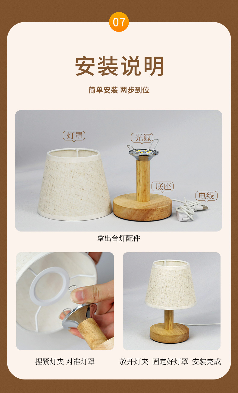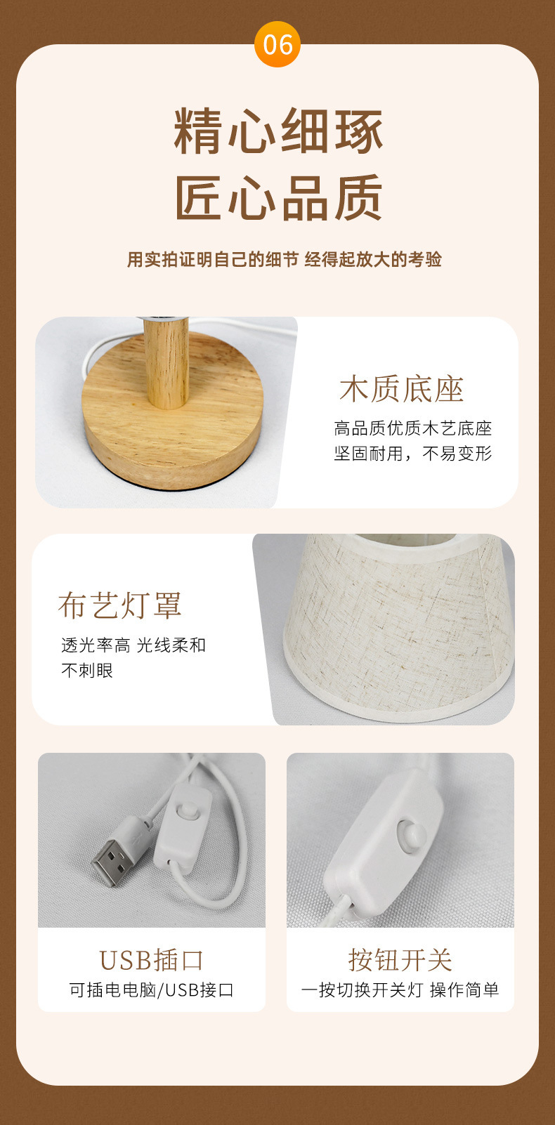 소형 테이블 램프 usb 원목 패브릭 침실 머리맡 램프 연구실 기숙사 led 야간 조명 분위기 조명 3색 리모컨스토어 가기