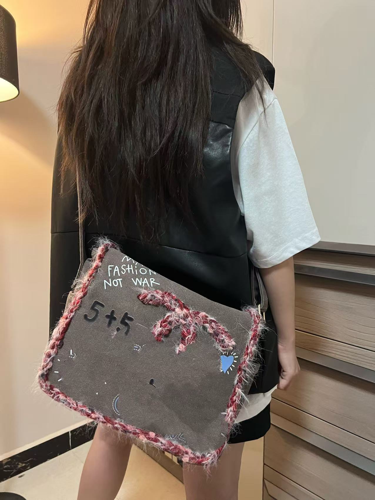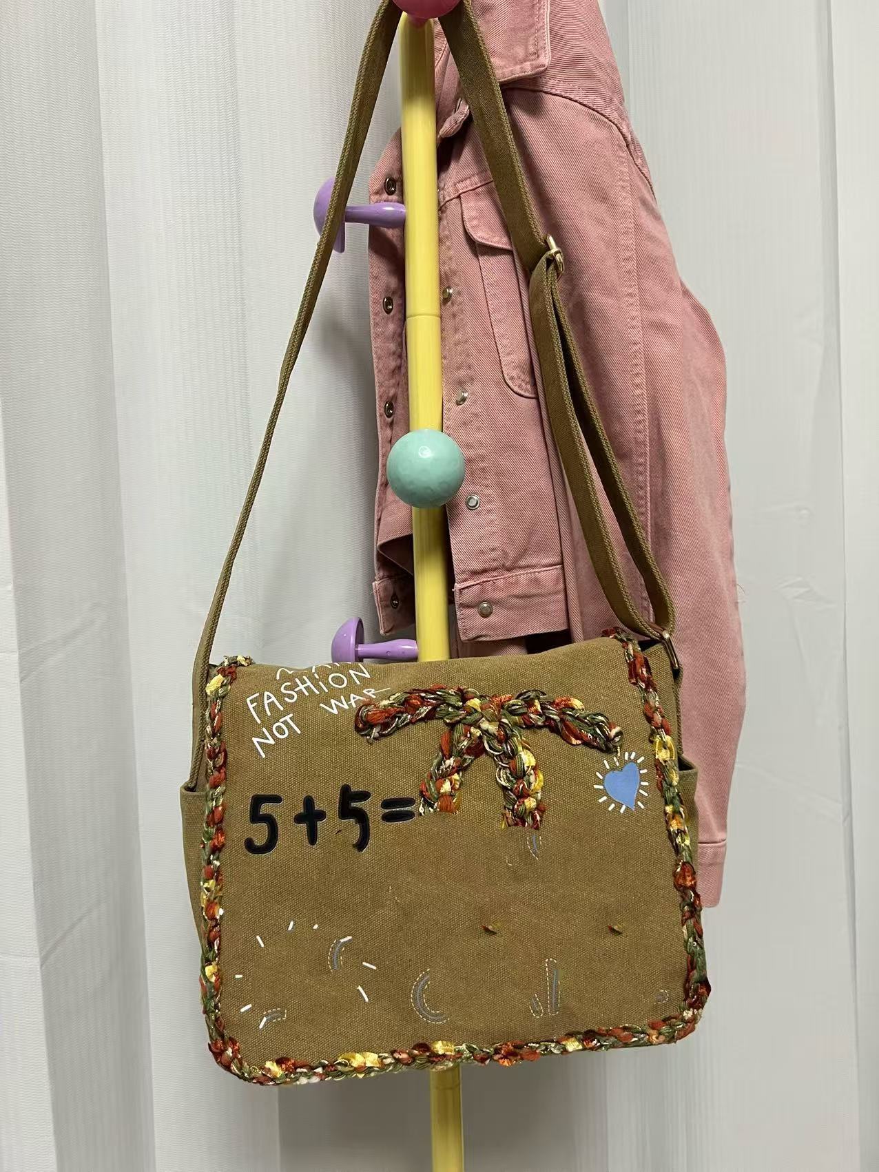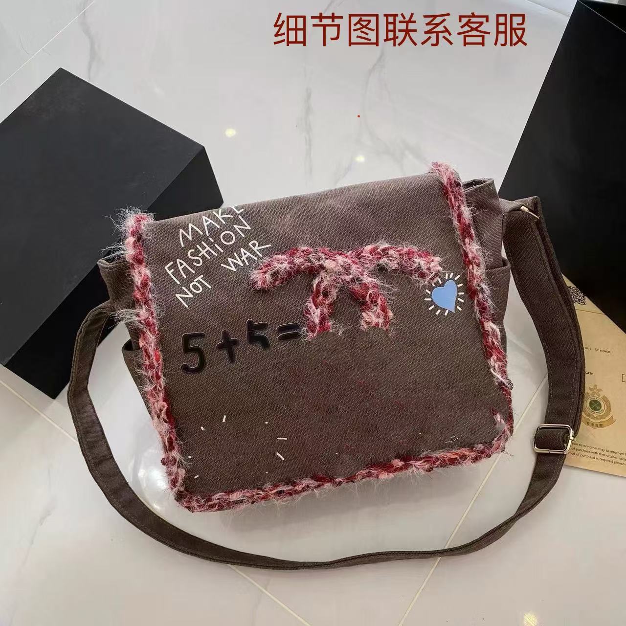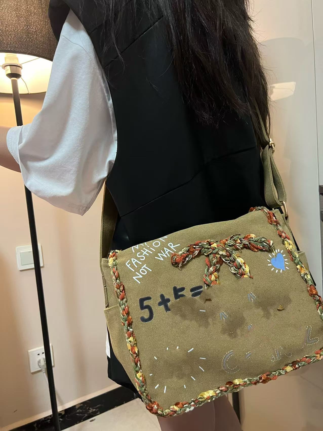 향기로운 스타일 낙서 캔버스 수제 짠 높은 어깨 크로스 바디 백 유행 유행 유행 틈새 맞춤형 가방스토어 가기