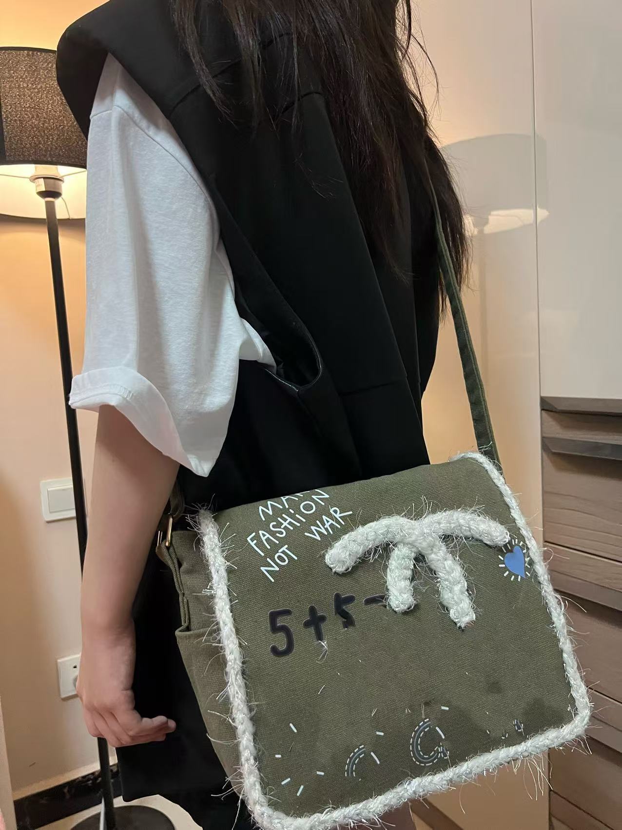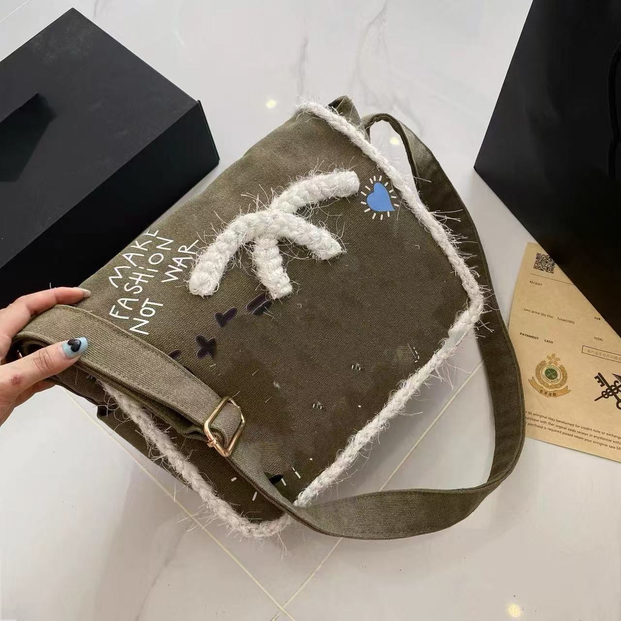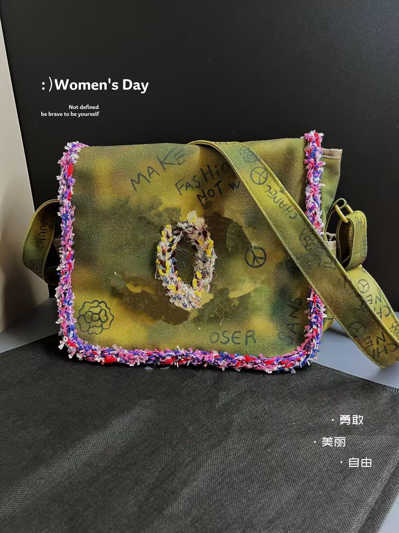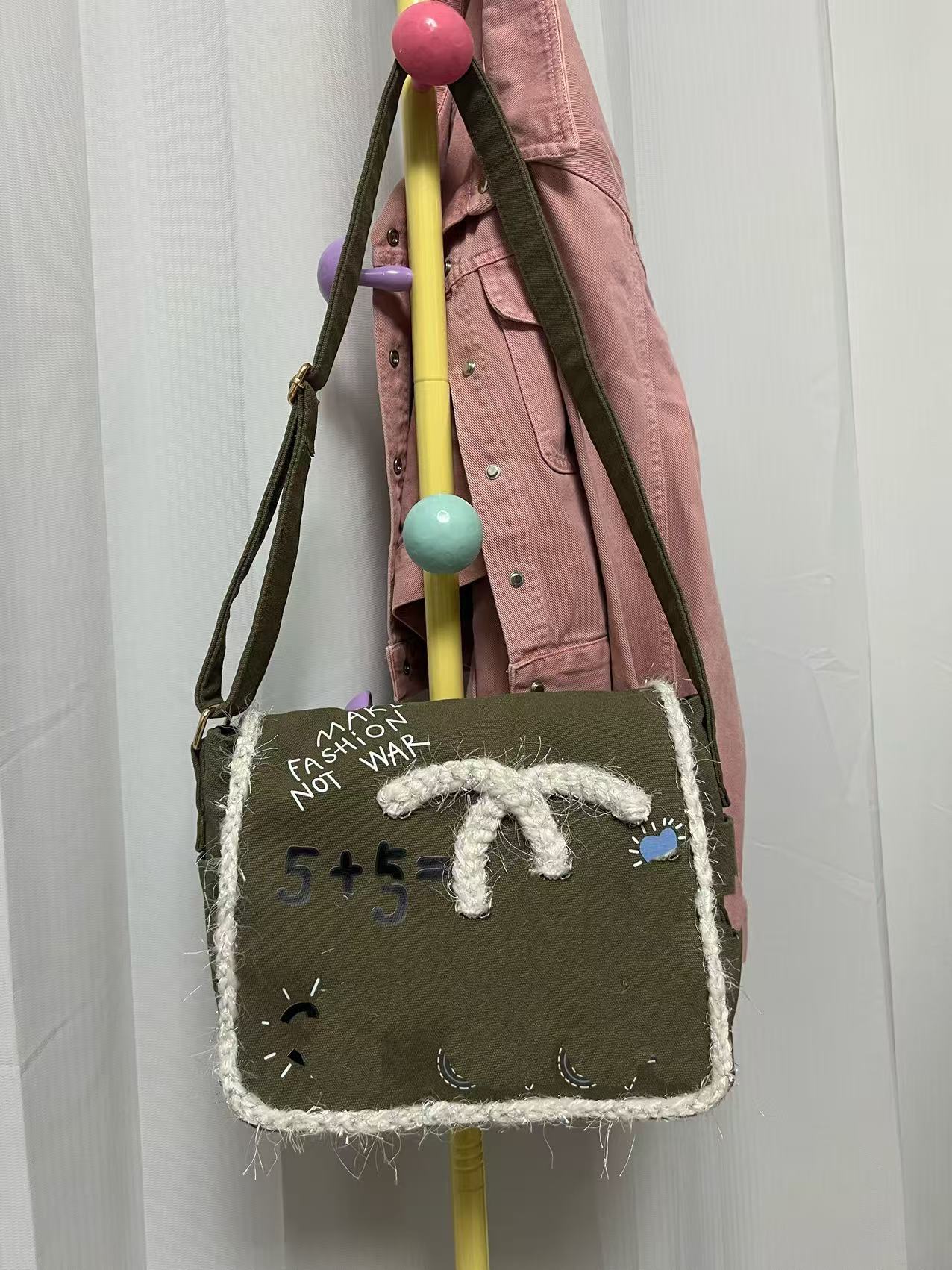향기로운 스타일 낙서 캔버스 수제 짠 높은 어깨 크로스 바디 백 유행 유행 유행 틈새 맞춤형 가방스토어 가기