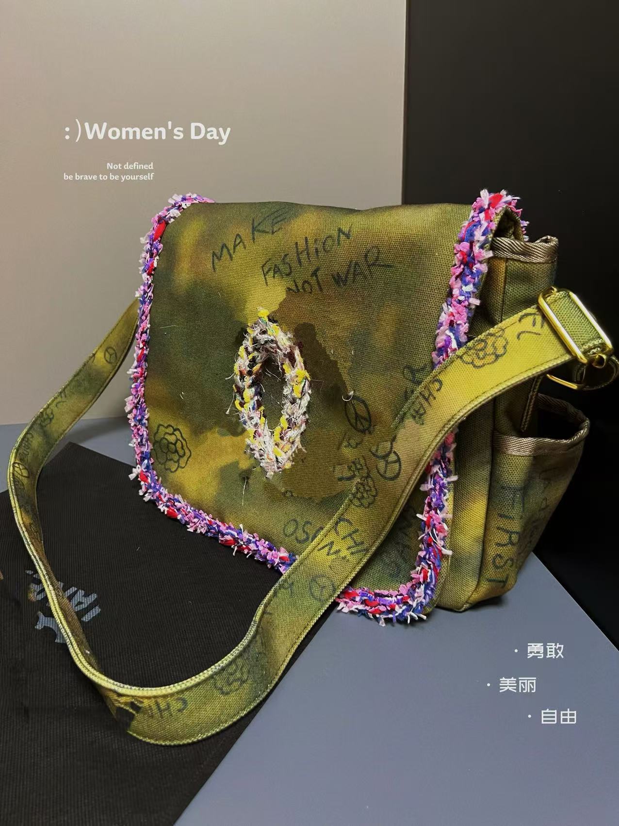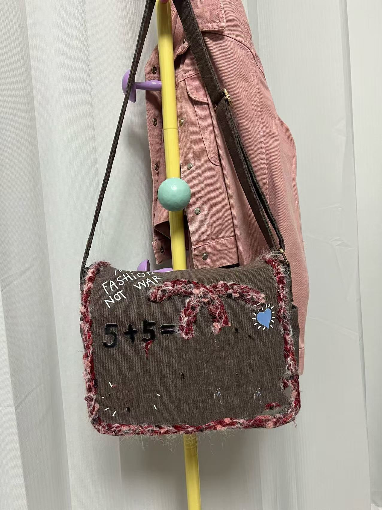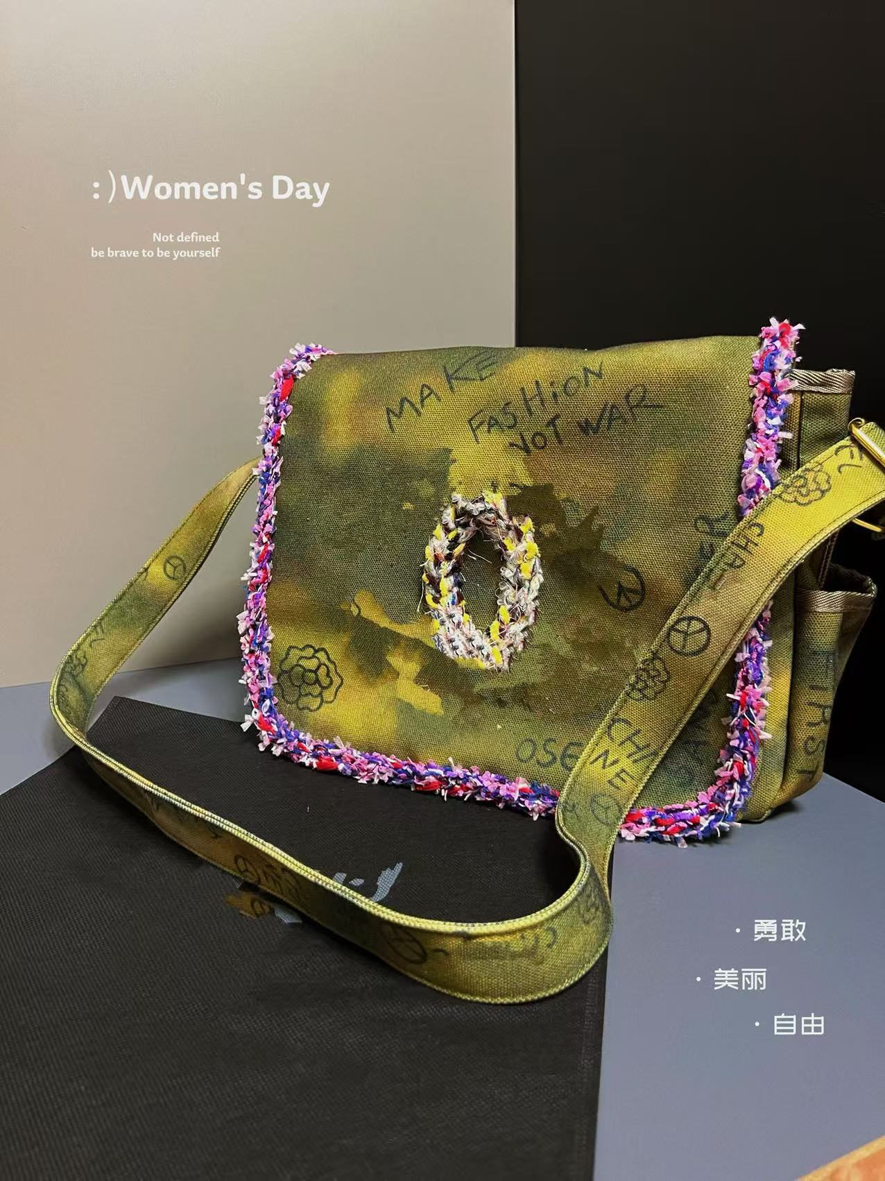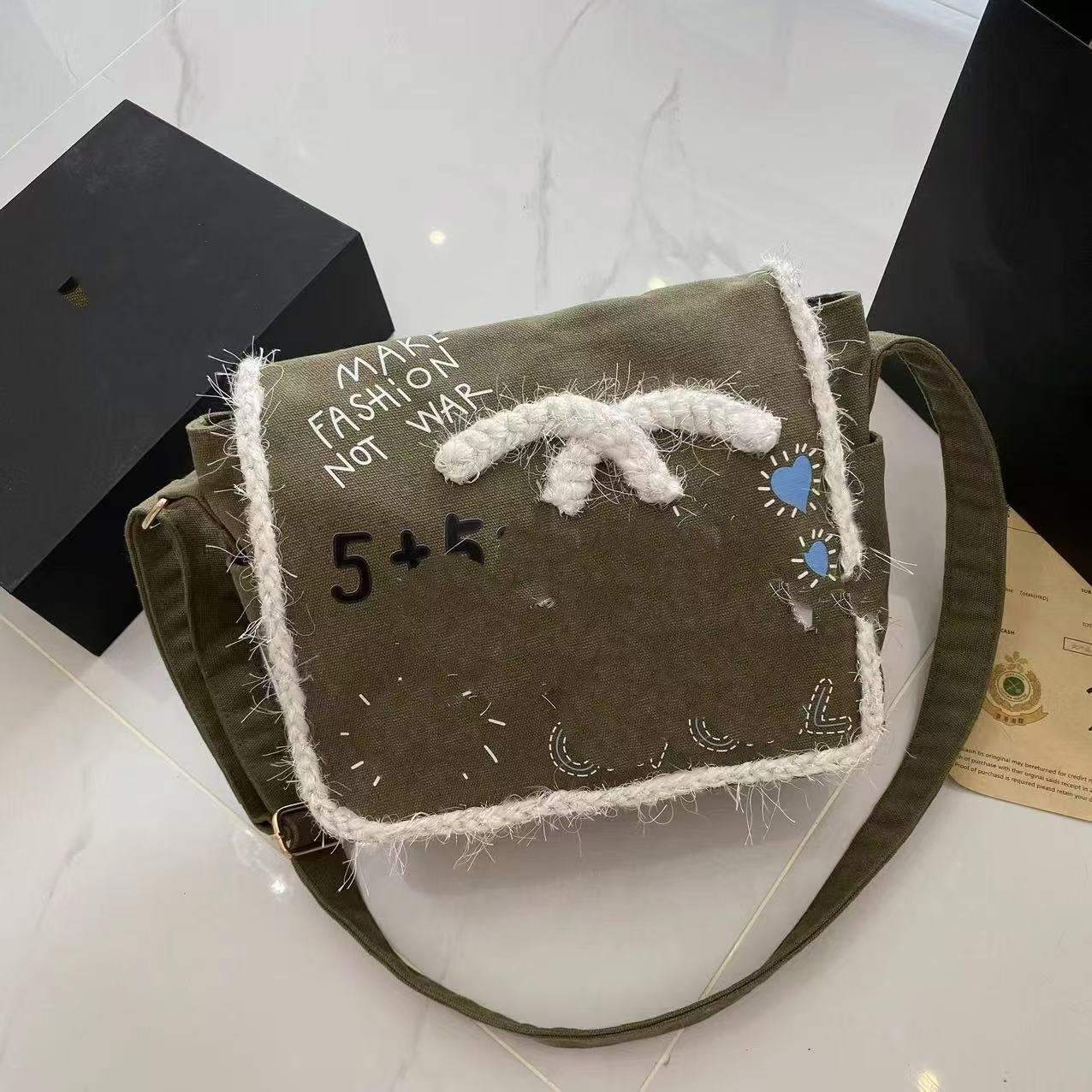 향기로운 스타일 낙서 캔버스 수제 짠 높은 어깨 크로스 바디 백 유행 유행 유행 틈새 맞춤형 가방스토어 가기