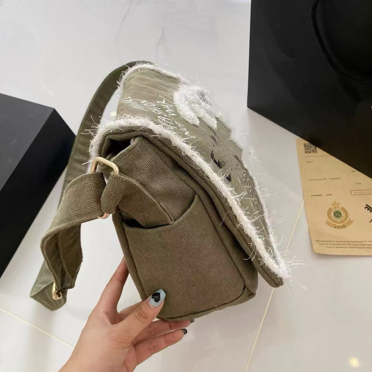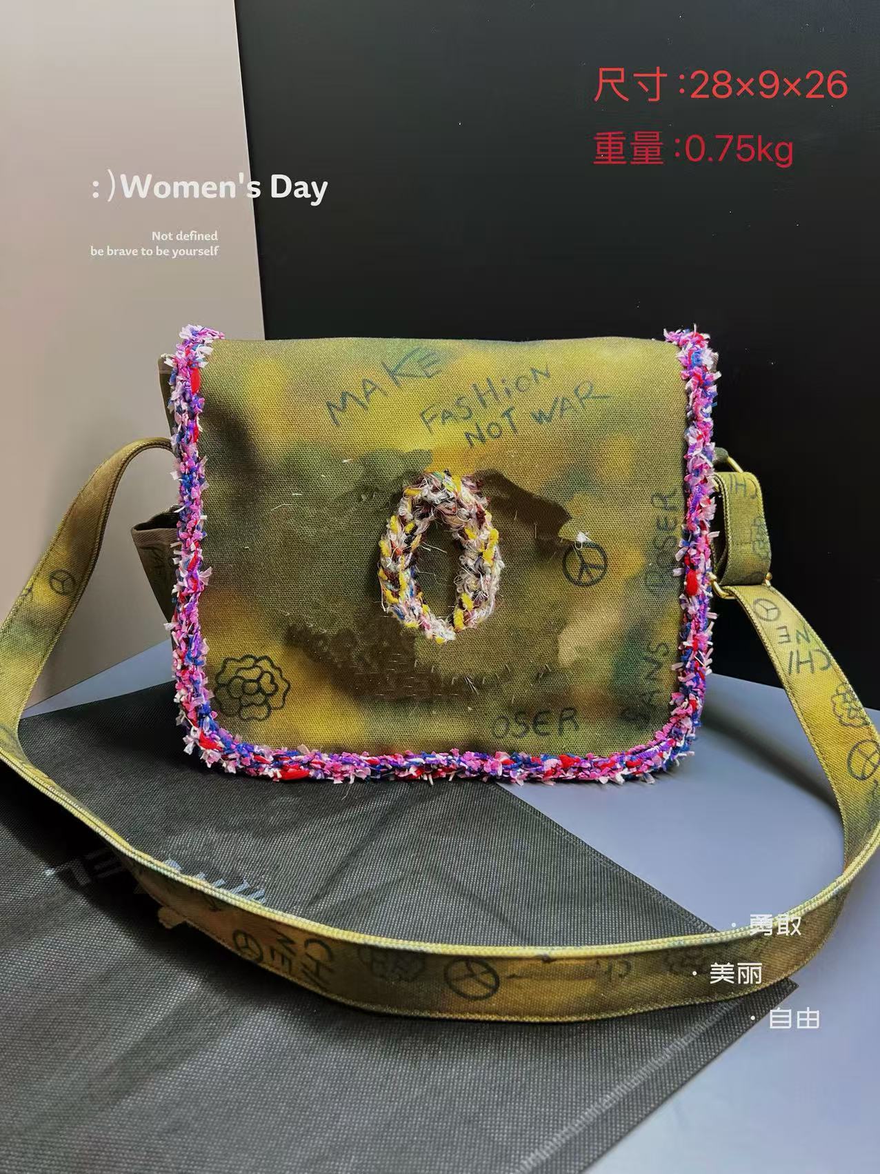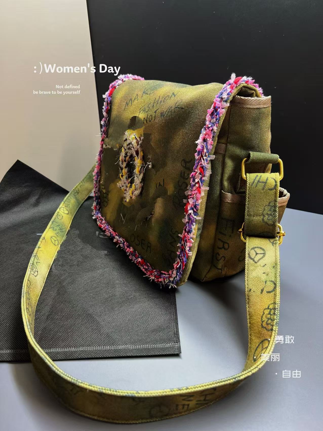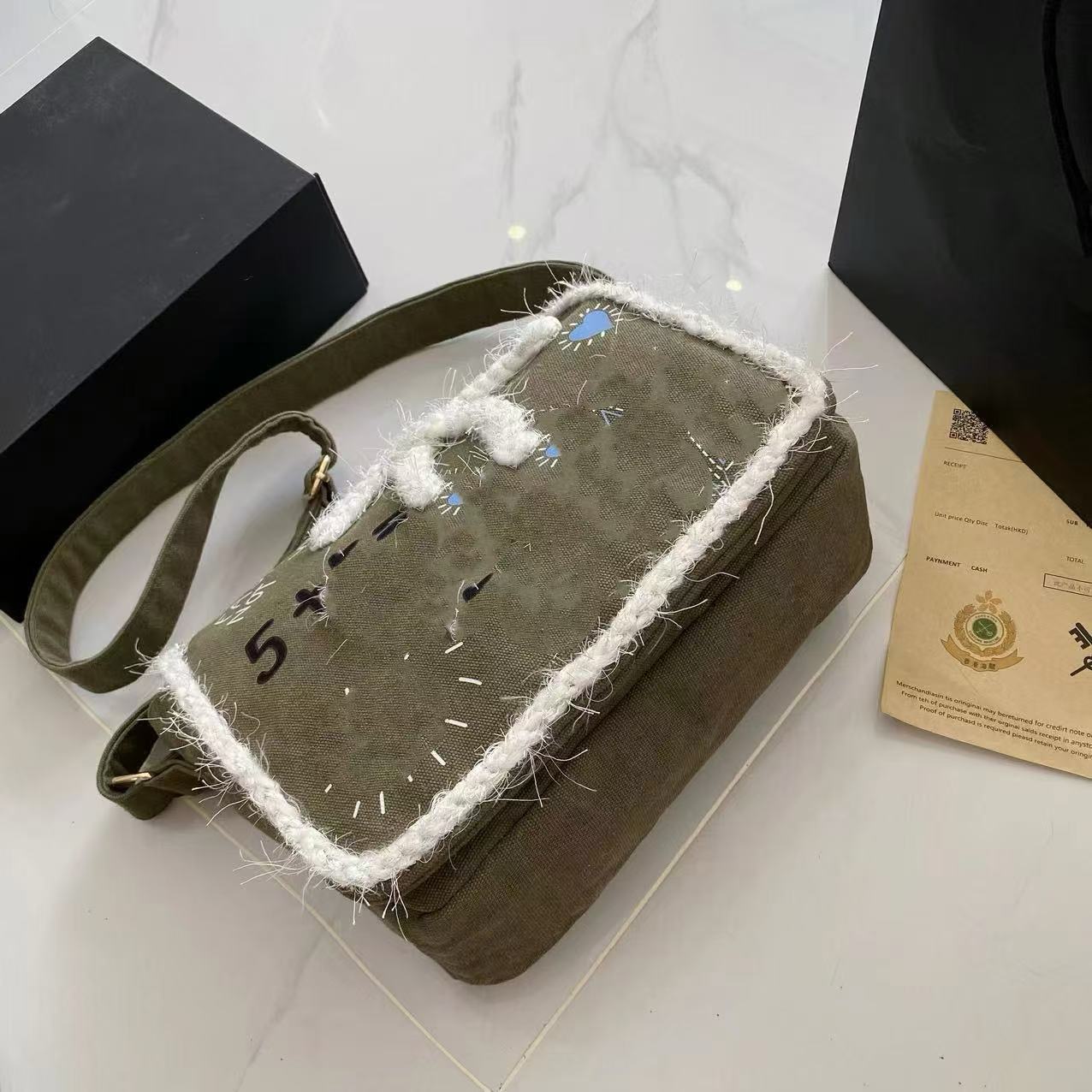 향기로운 스타일 낙서 캔버스 수제 짠 높은 어깨 크로스 바디 백 유행 유행 유행 틈새 맞춤형 가방스토어 가기