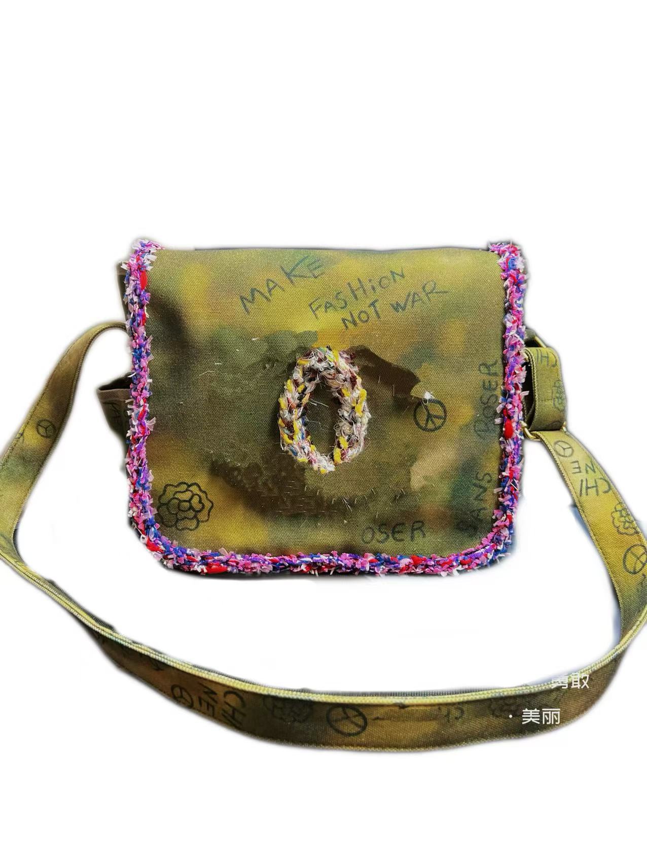 향기로운 스타일 낙서 캔버스 수제 짠 높은 어깨 크로스 바디 백 유행 유행 유행 틈새 맞춤형 가방