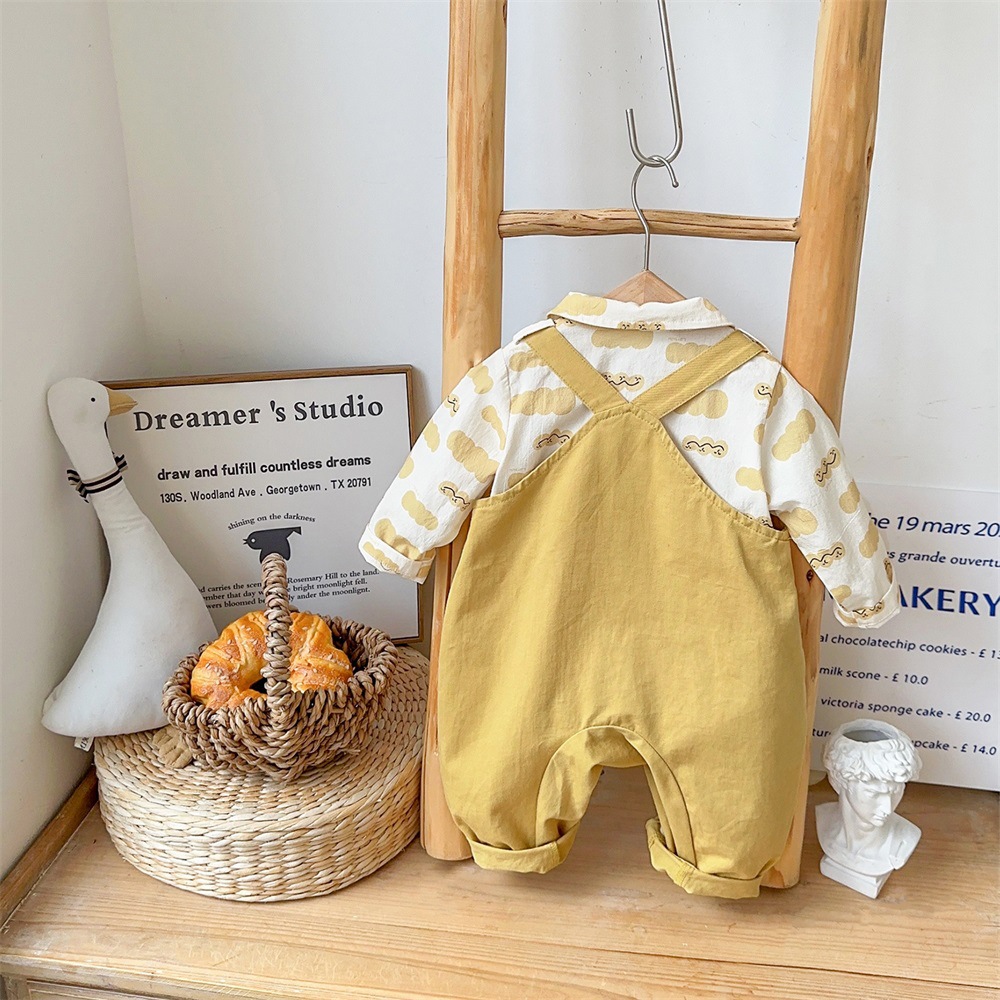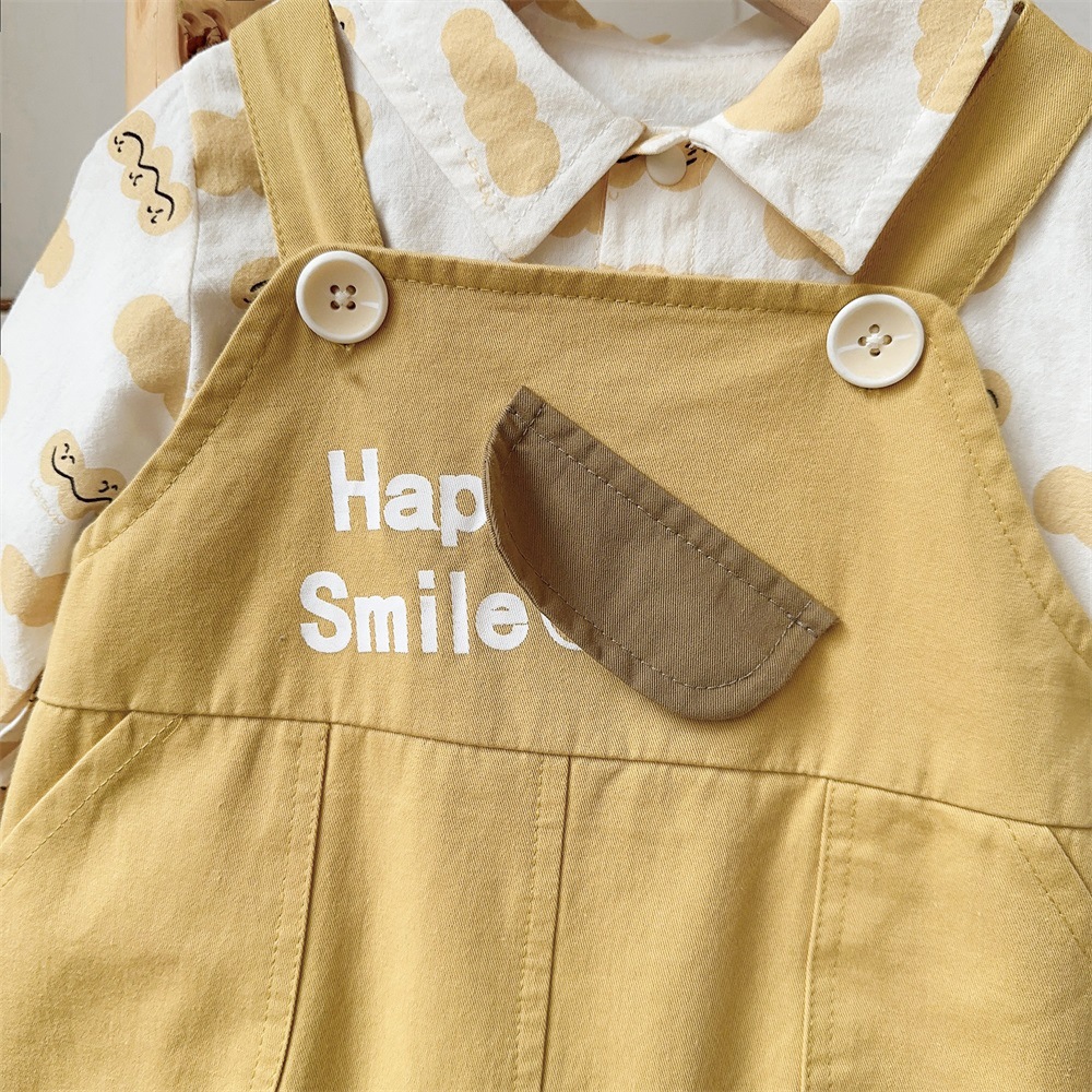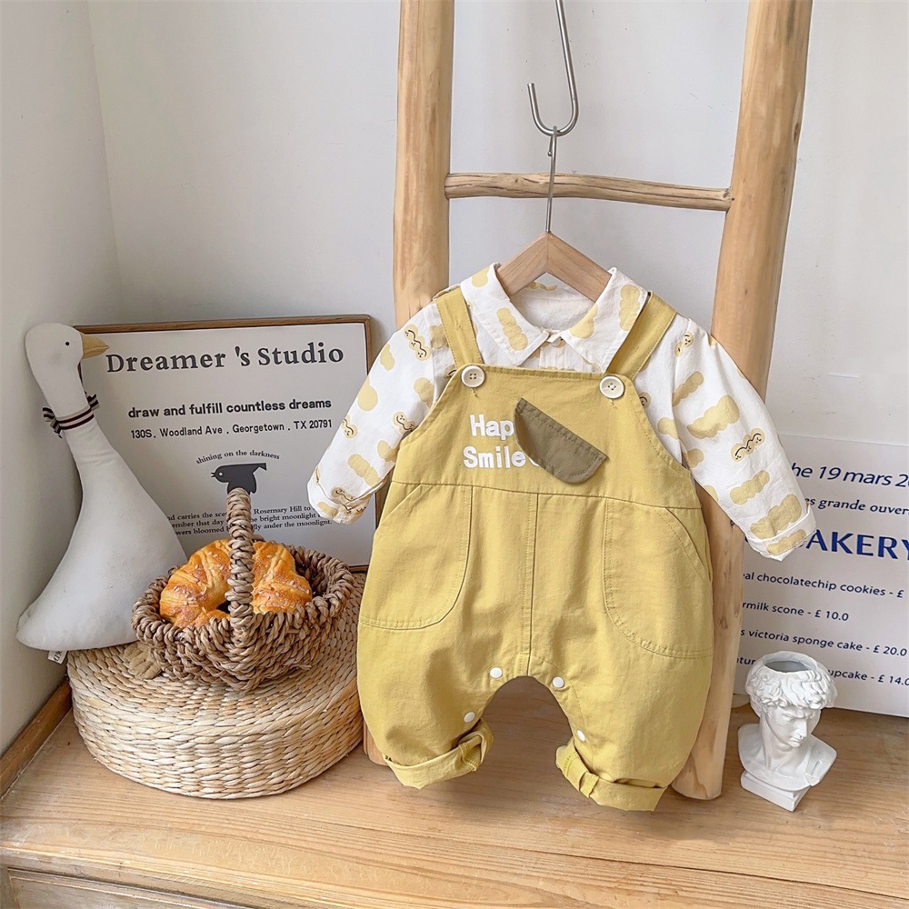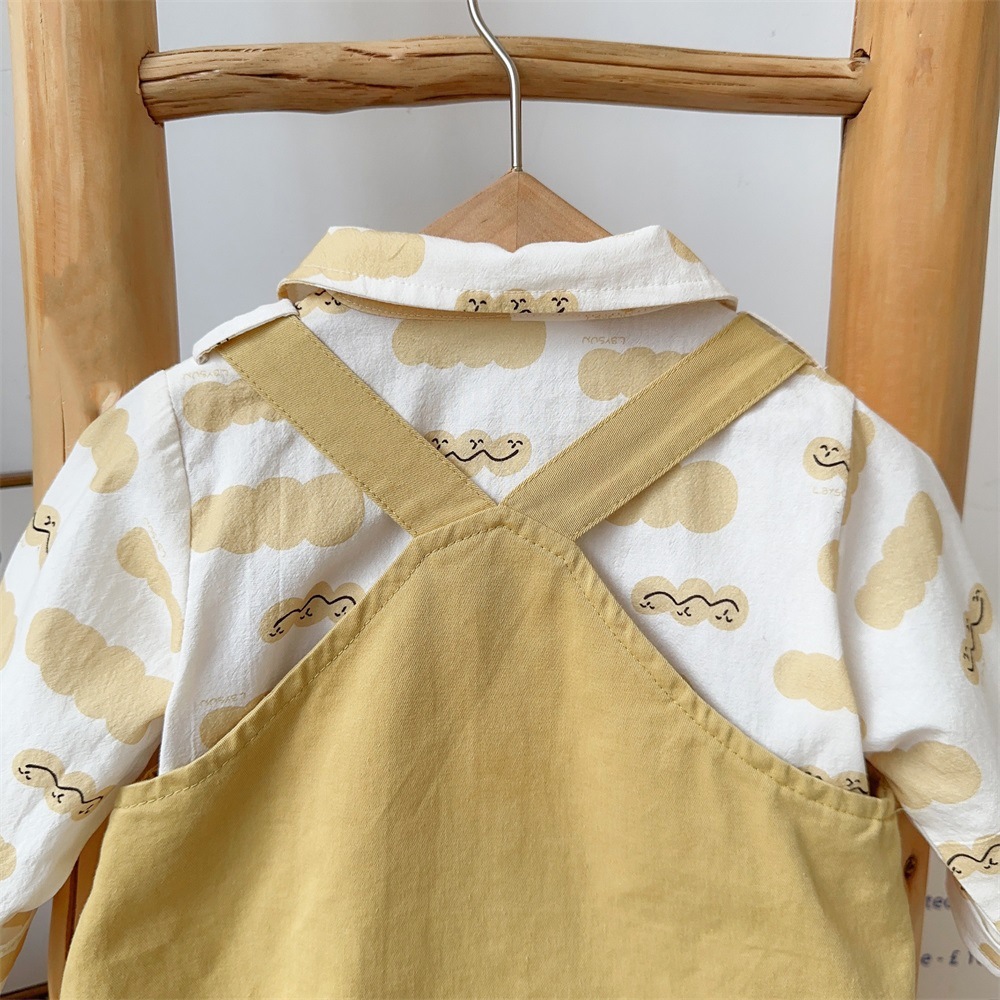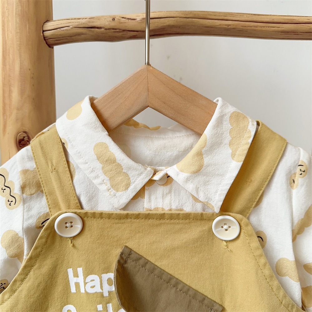 2025 봄 새 아기 아기 세트 소년 서양식 귀여운 멜빵 셔츠 투피스 세트