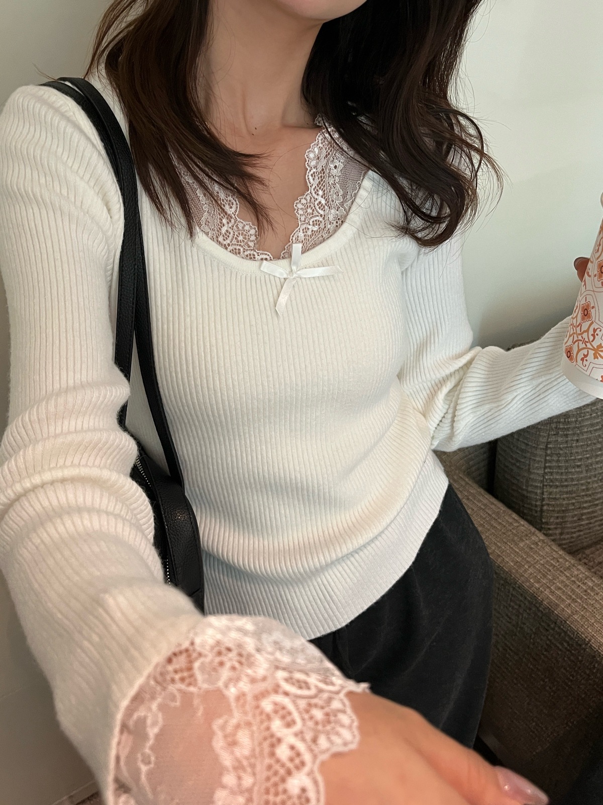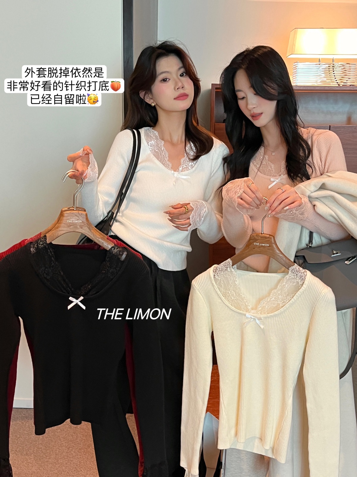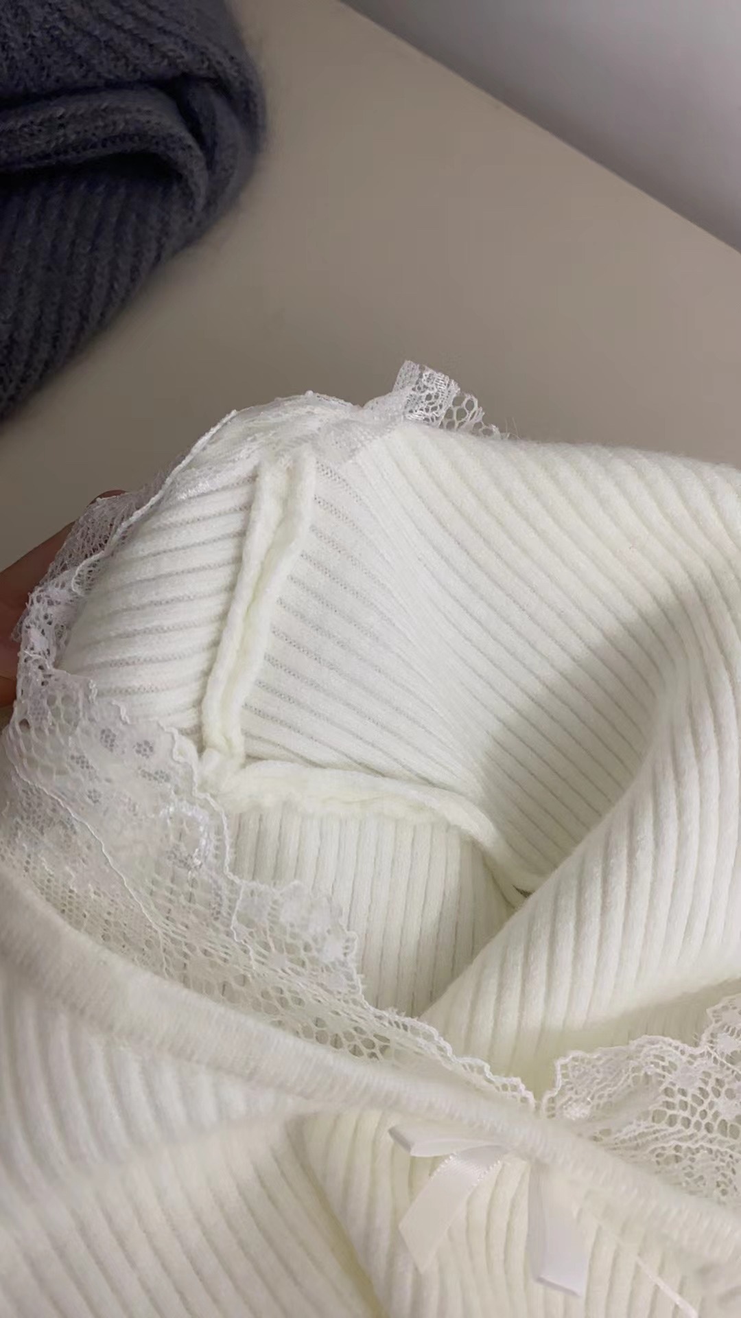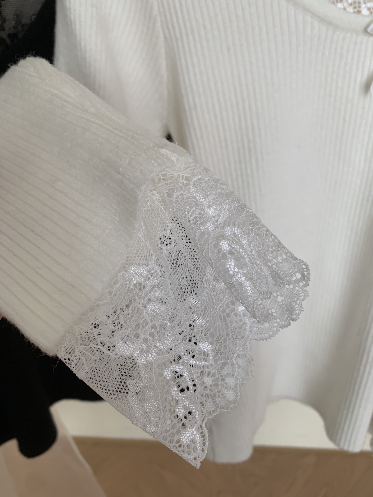 Kaiyidai 가을과 겨울 프랑스 레이스 스티칭 슬림 핏 슬림 스웨터 크리스마스 신년베이스 순수한 여성을 입고 싶어스토어 가기