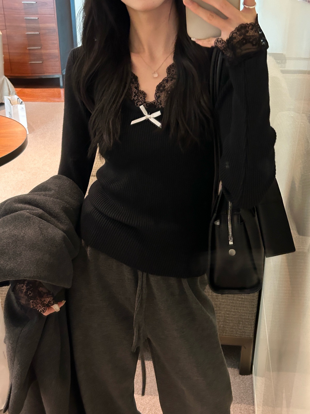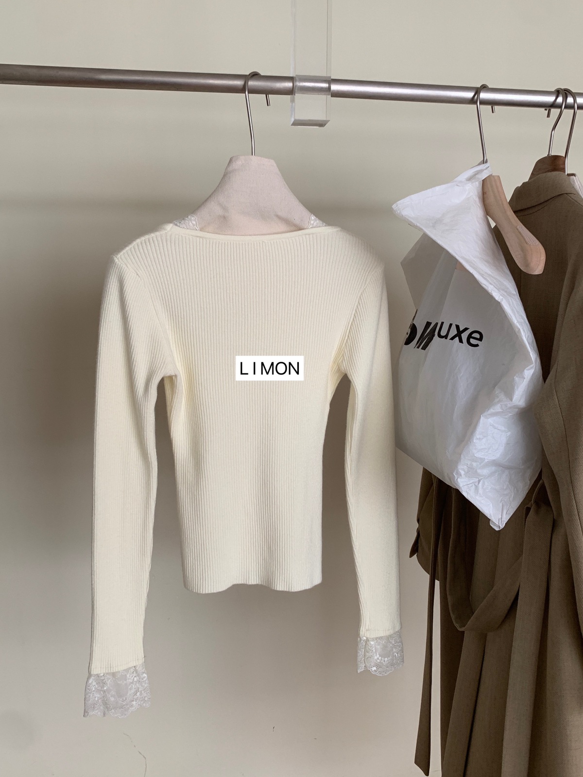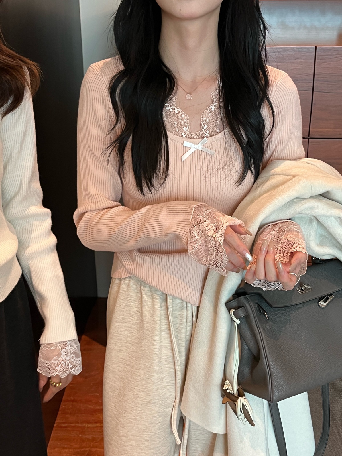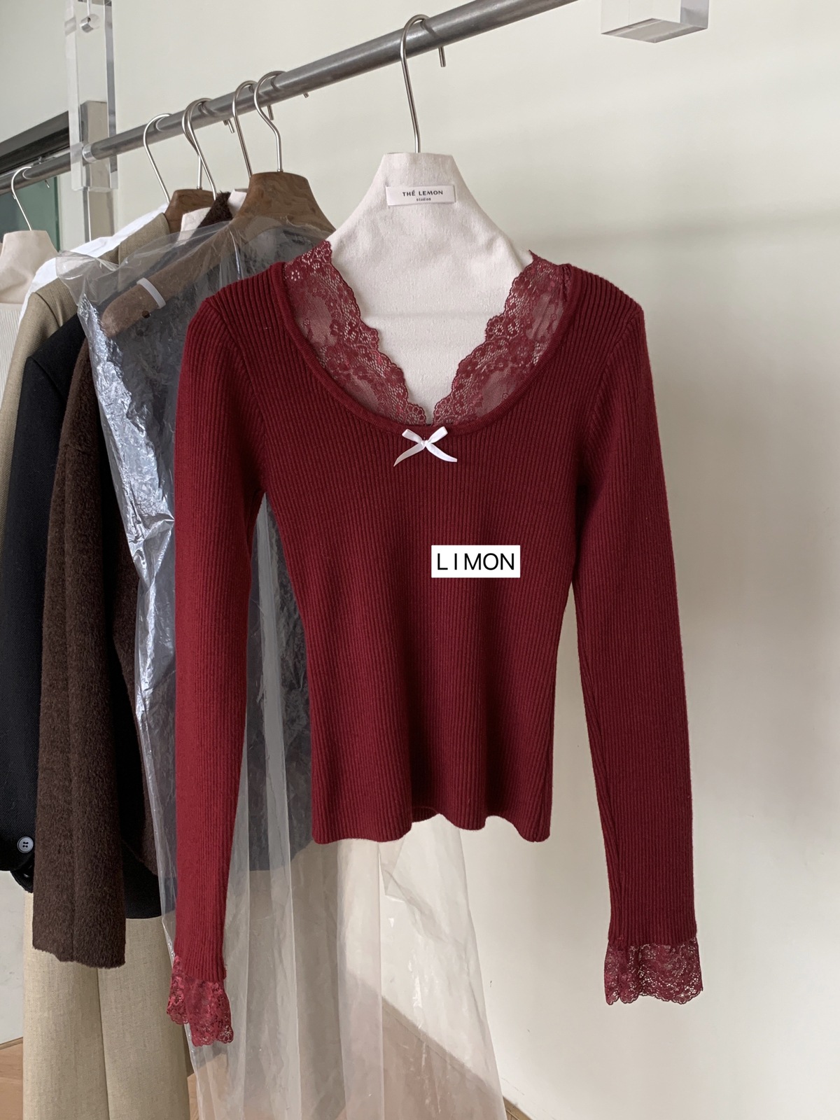 Kaiyidai 가을과 겨울 프랑스 레이스 스티칭 슬림 핏 슬림 스웨터 크리스마스 신년베이스 순수한 여성을 입고 싶어스토어 가기