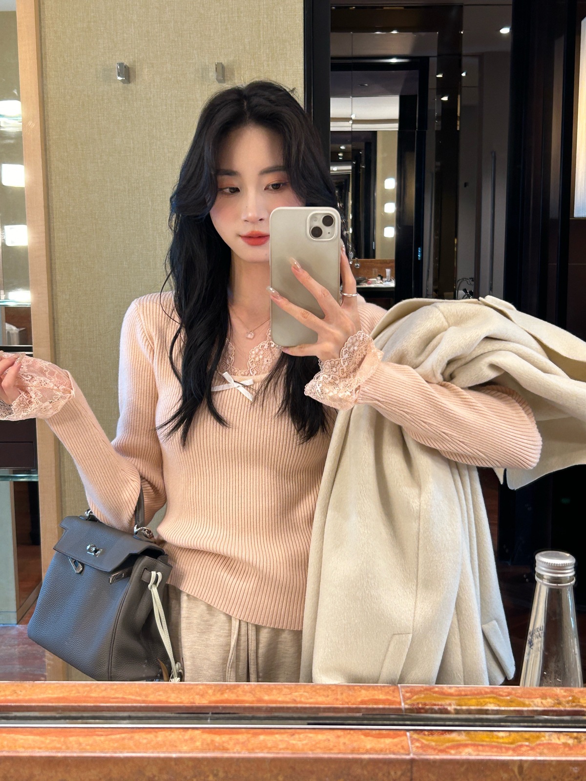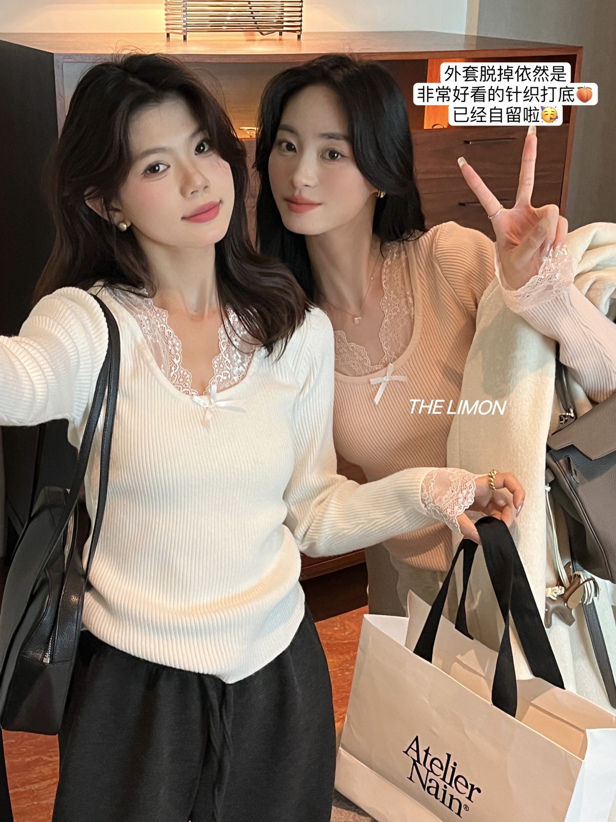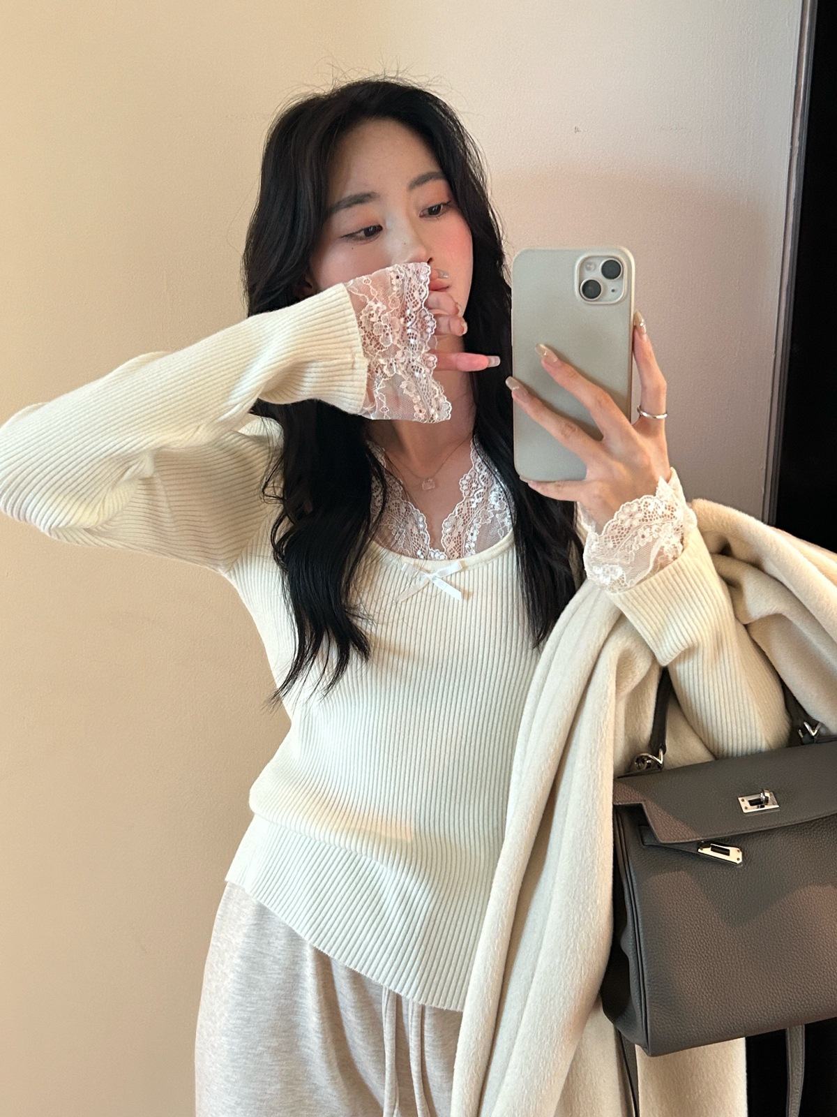 Kaiyidai 가을과 겨울 프랑스 레이스 스티칭 슬림 핏 슬림 스웨터 크리스마스 신년베이스 순수한 여성을 입고 싶어