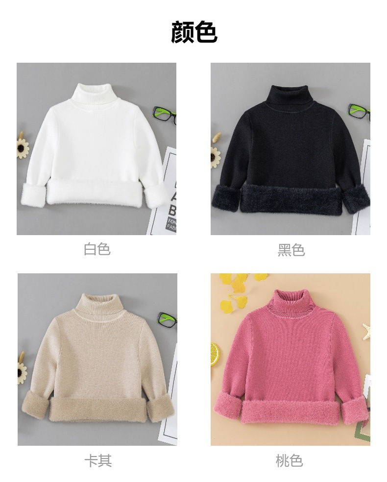 어린이 터틀넥 원피스 벨벳 스웨터 아기의 한국 솔리드 컬러 풀오버 니트 스웨터 소년과 소녀 한국 기모 베이스 셔츠