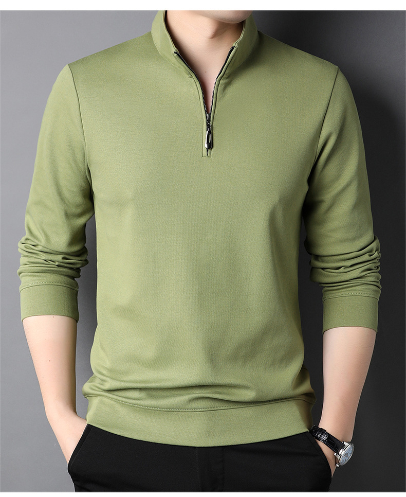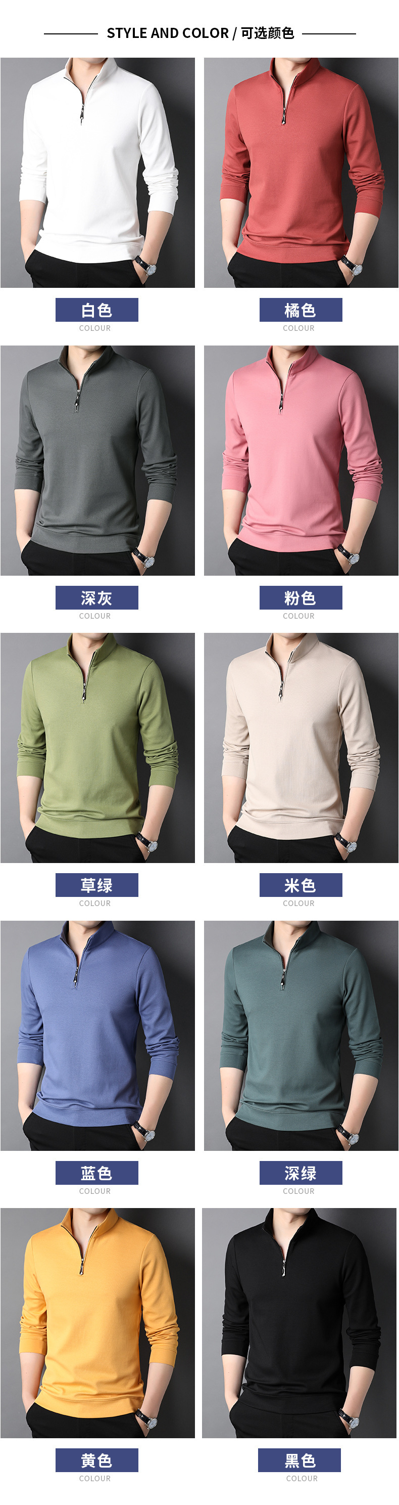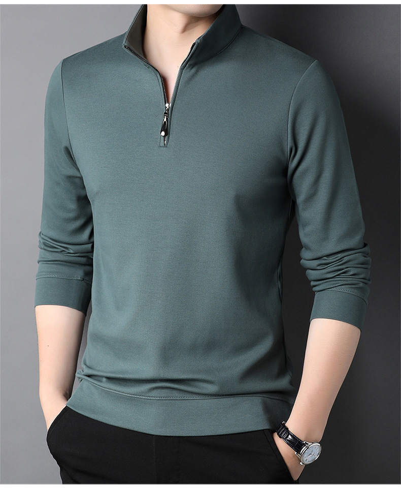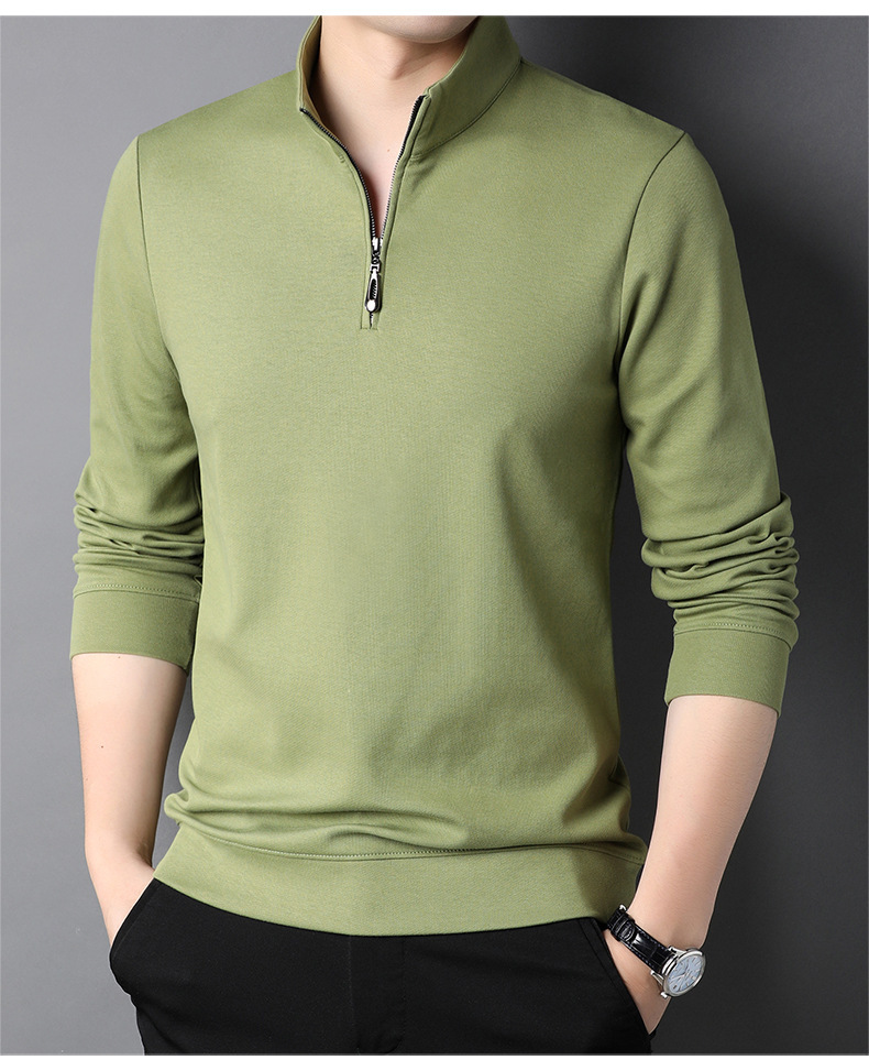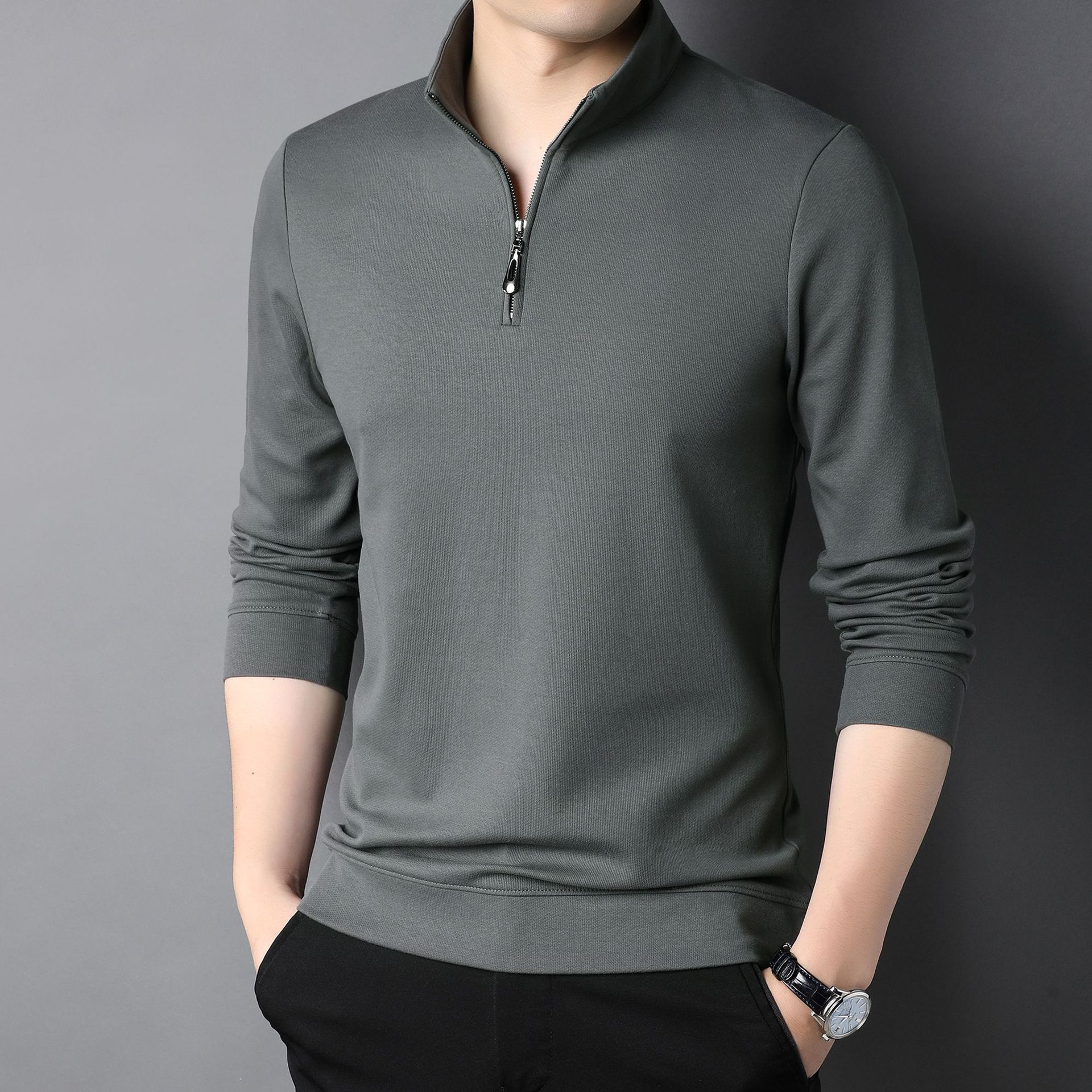 국경 2024 면 긴팔 땀 남자 젊고 중년 유행 캐주얼 칼라 지퍼 솔리드 컬러베이스 탑