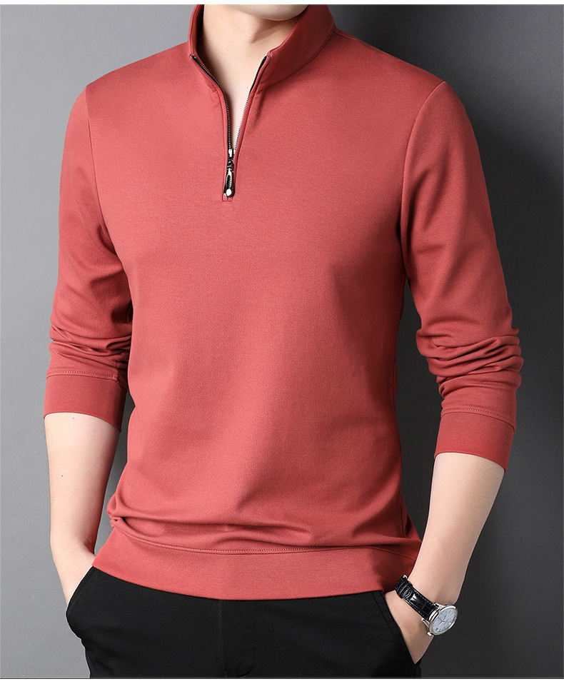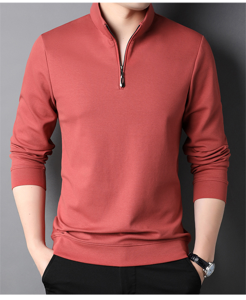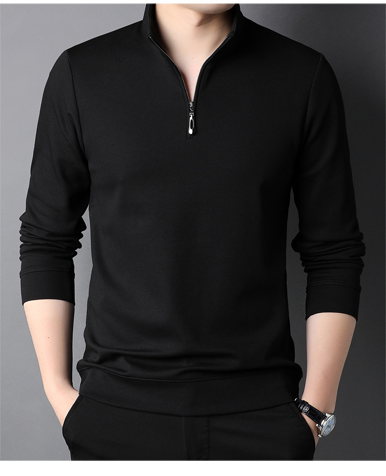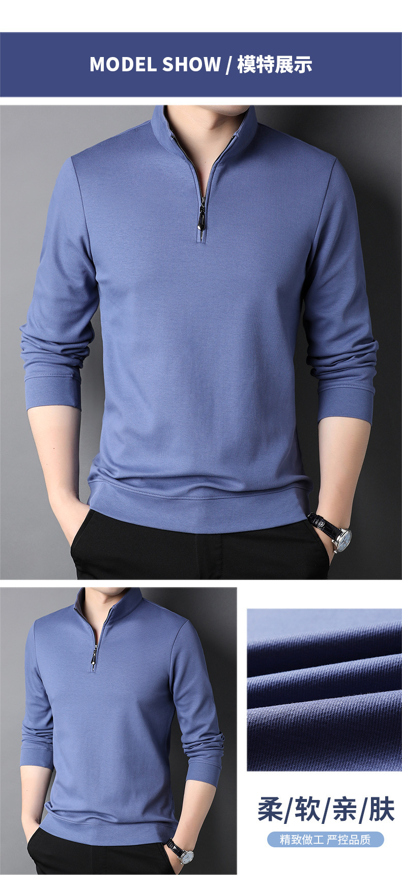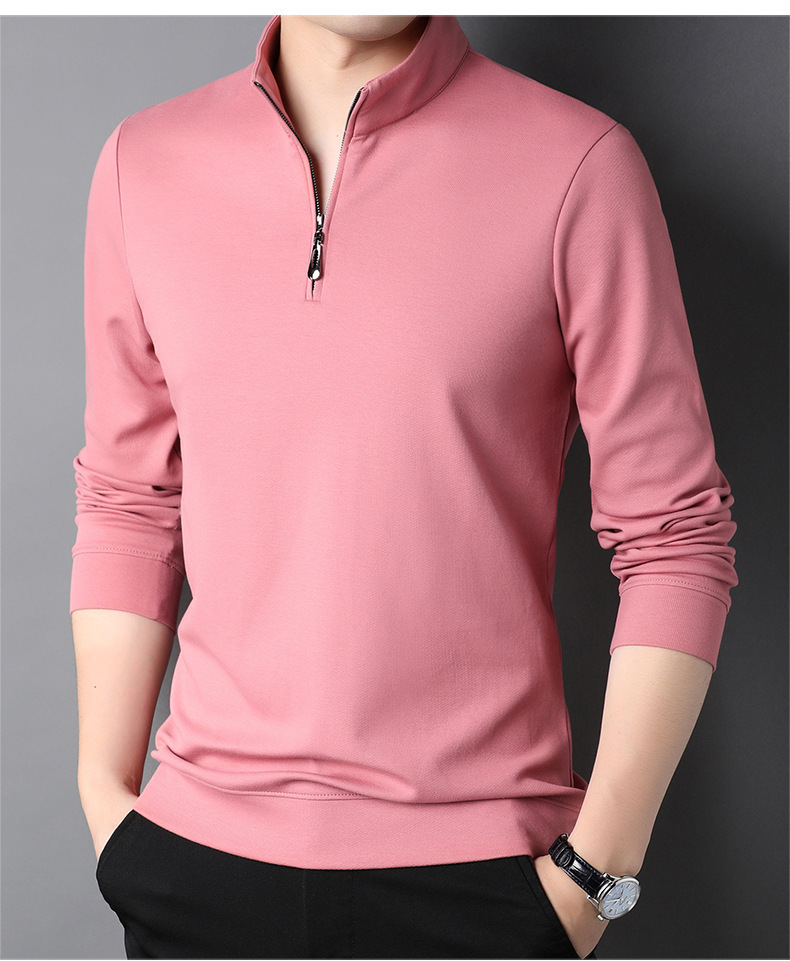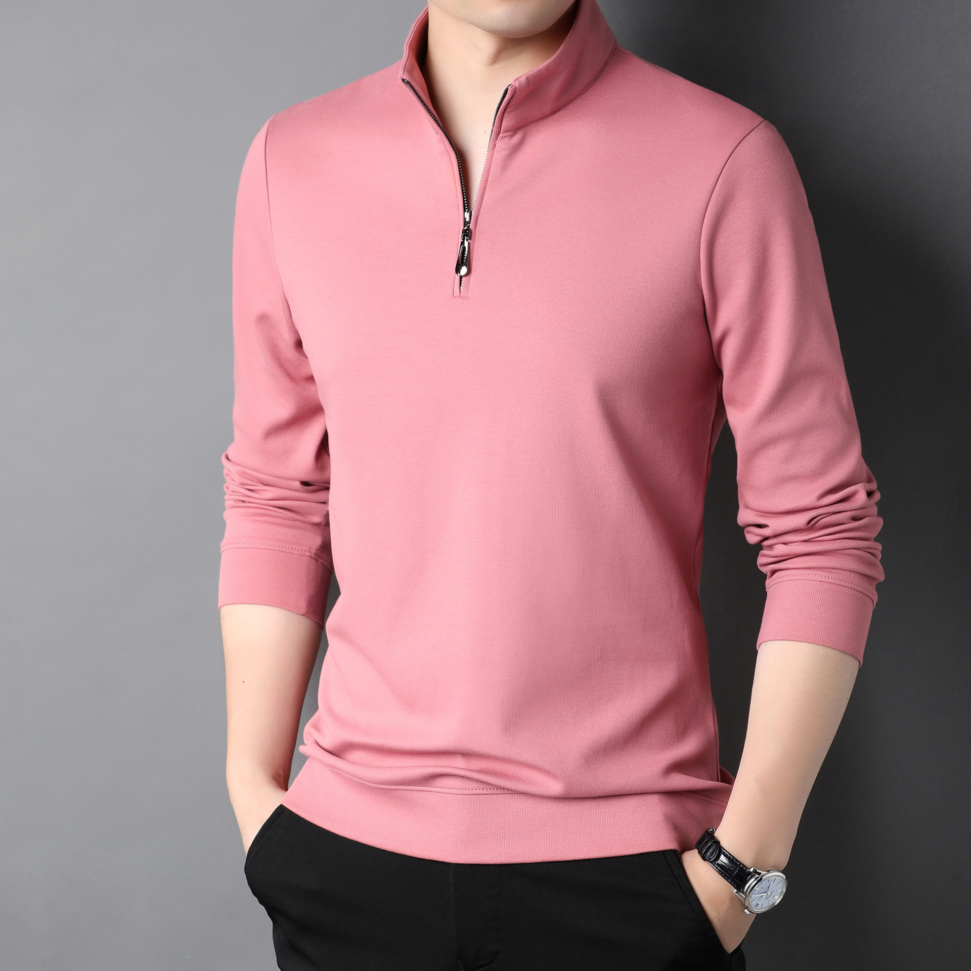 국경 2024 면 긴팔 땀 남자 젊고 중년 유행 캐주얼 칼라 지퍼 솔리드 컬러베이스 탑
