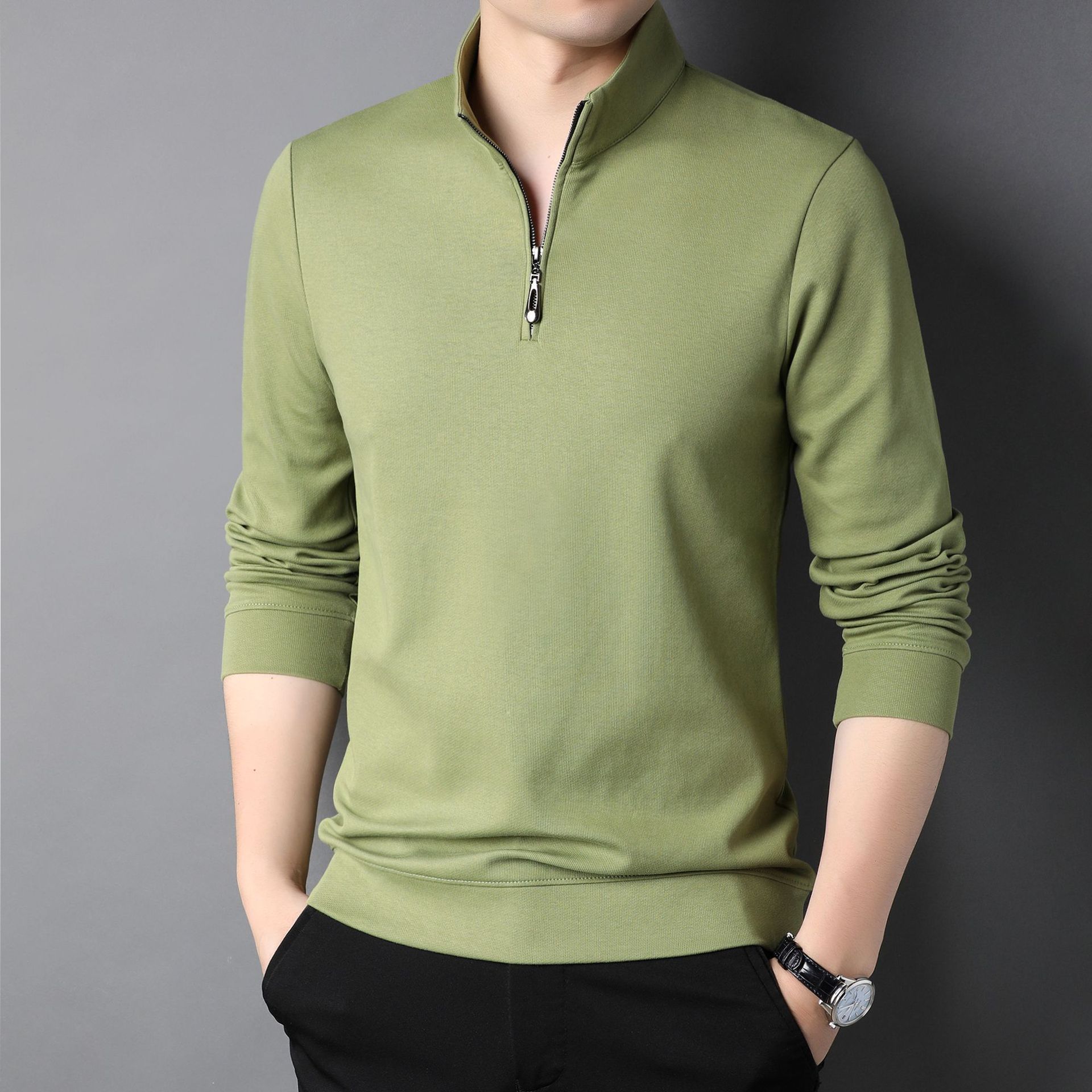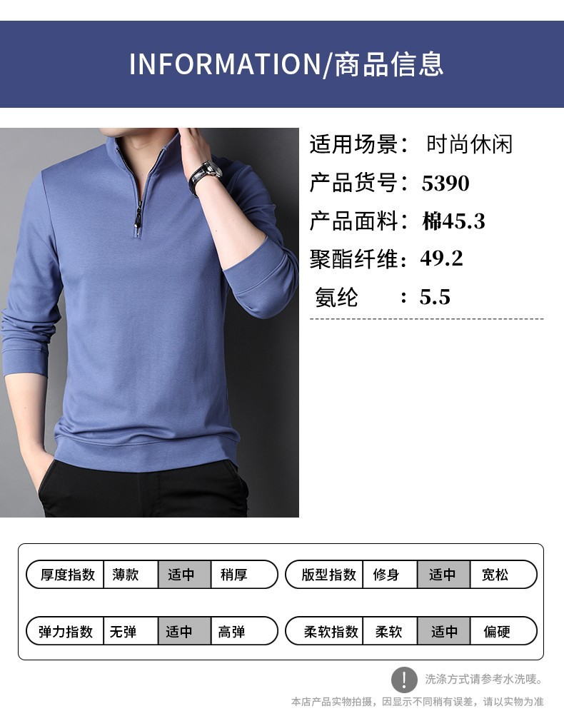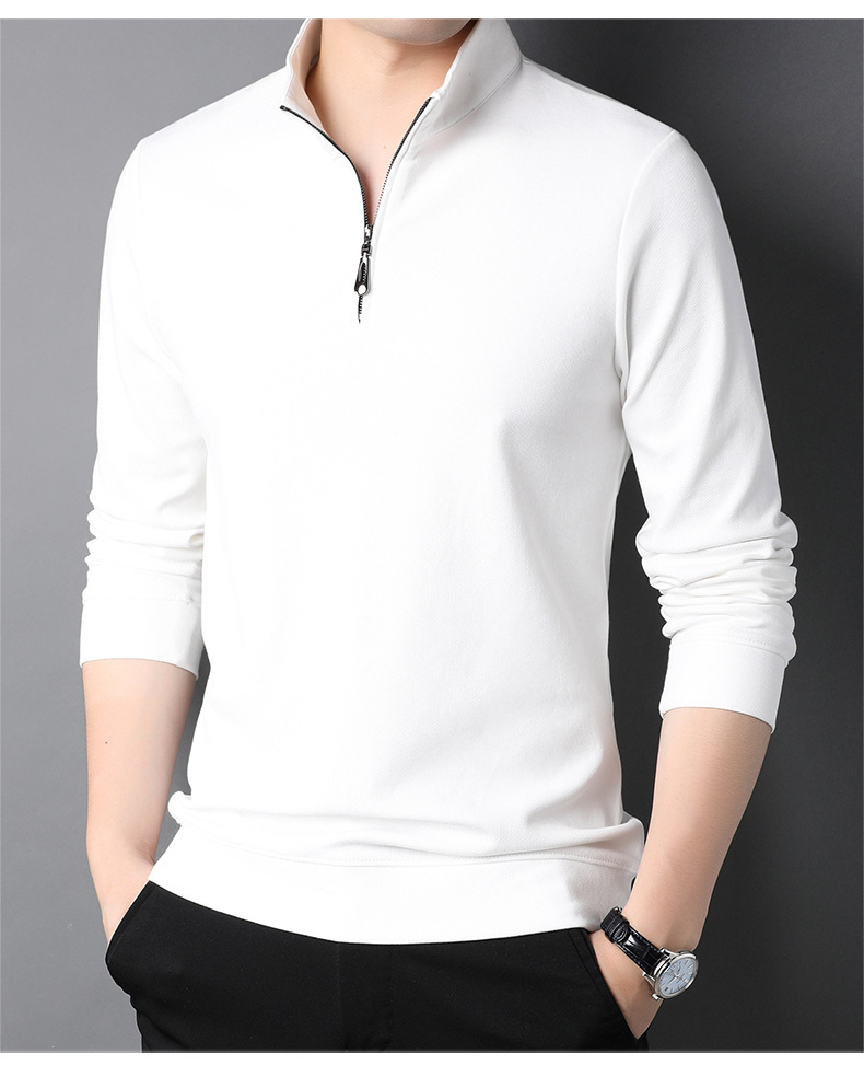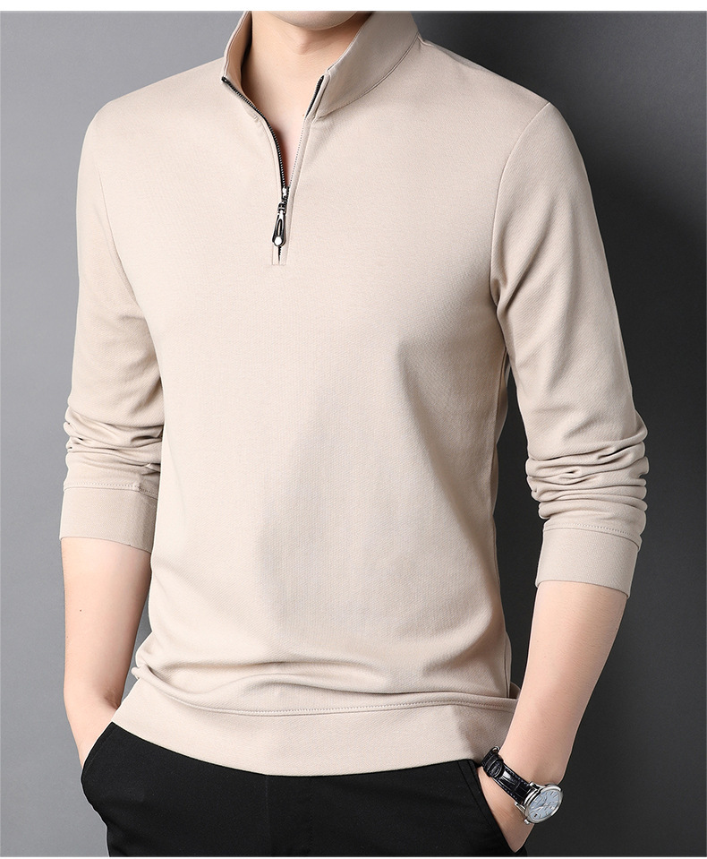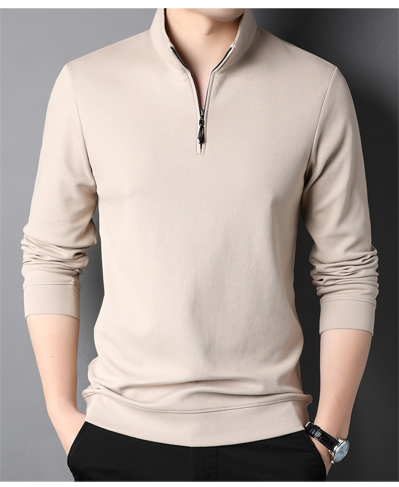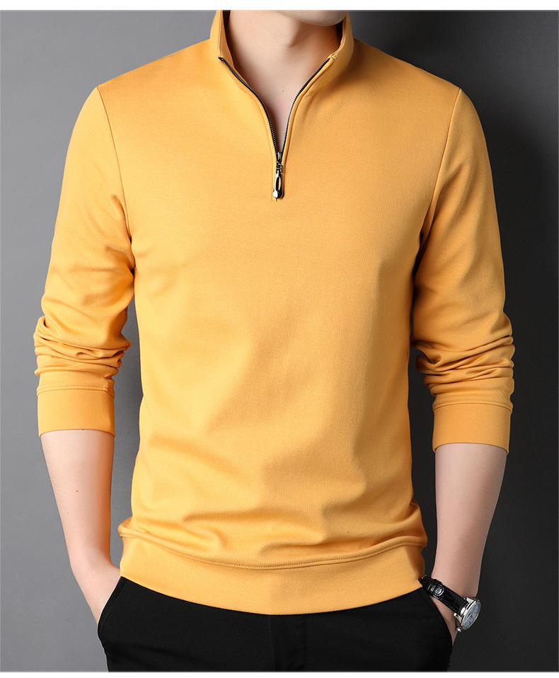 국경 2024 면 긴팔 땀 남자 젊고 중년 유행 캐주얼 칼라 지퍼 솔리드 컬러베이스 탑