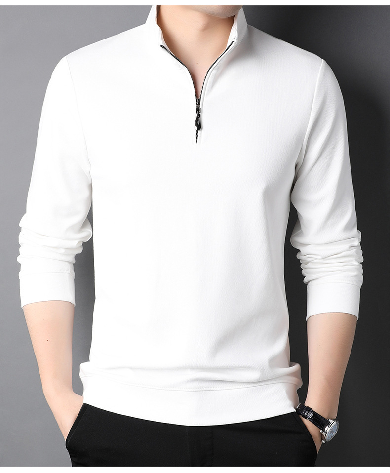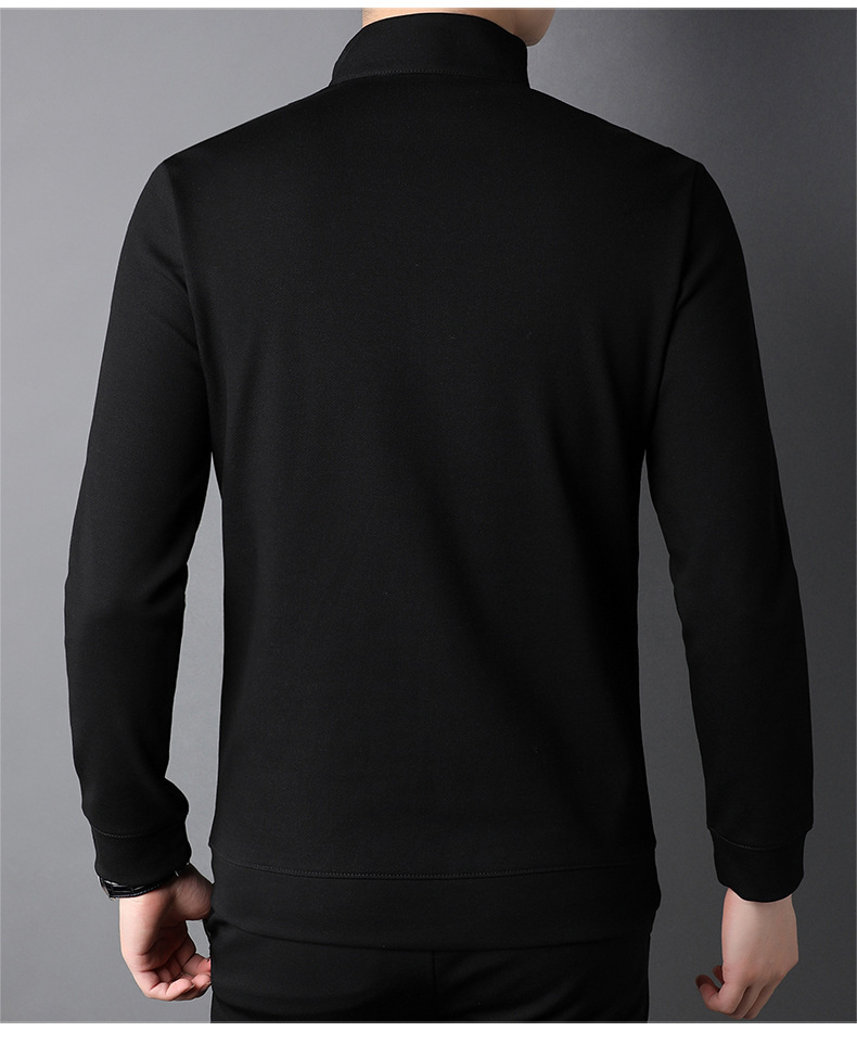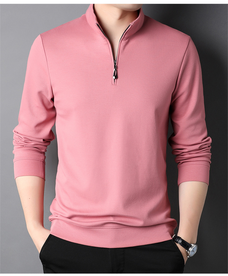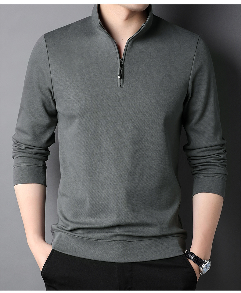跨境2024棉质长袖卫衣男中青年时尚休闲立领拉链纯色打底上衣