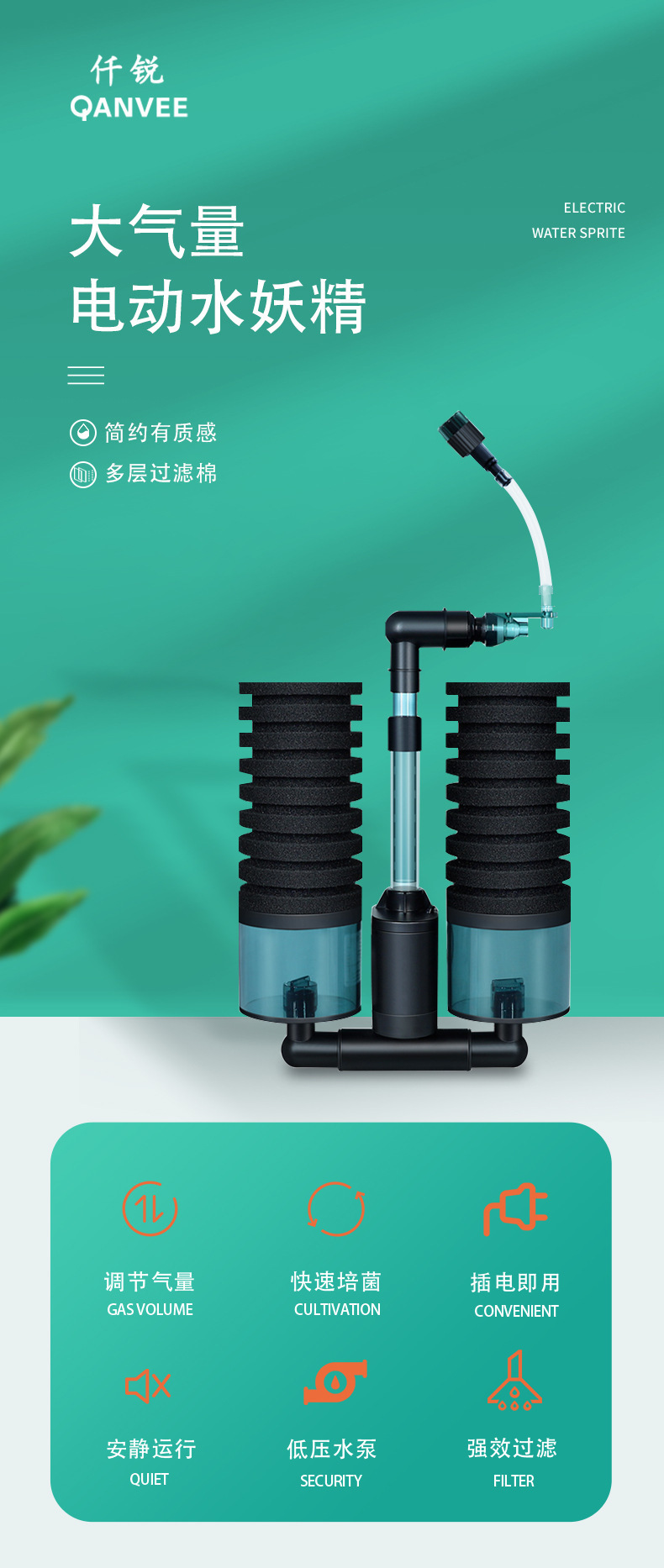 Qianrui 전기 공압 물 고블린 생화학 필터 어항 새우 탱크 수족관 에어로빅 박테리아 물 역방향 가스 LIFT 상승