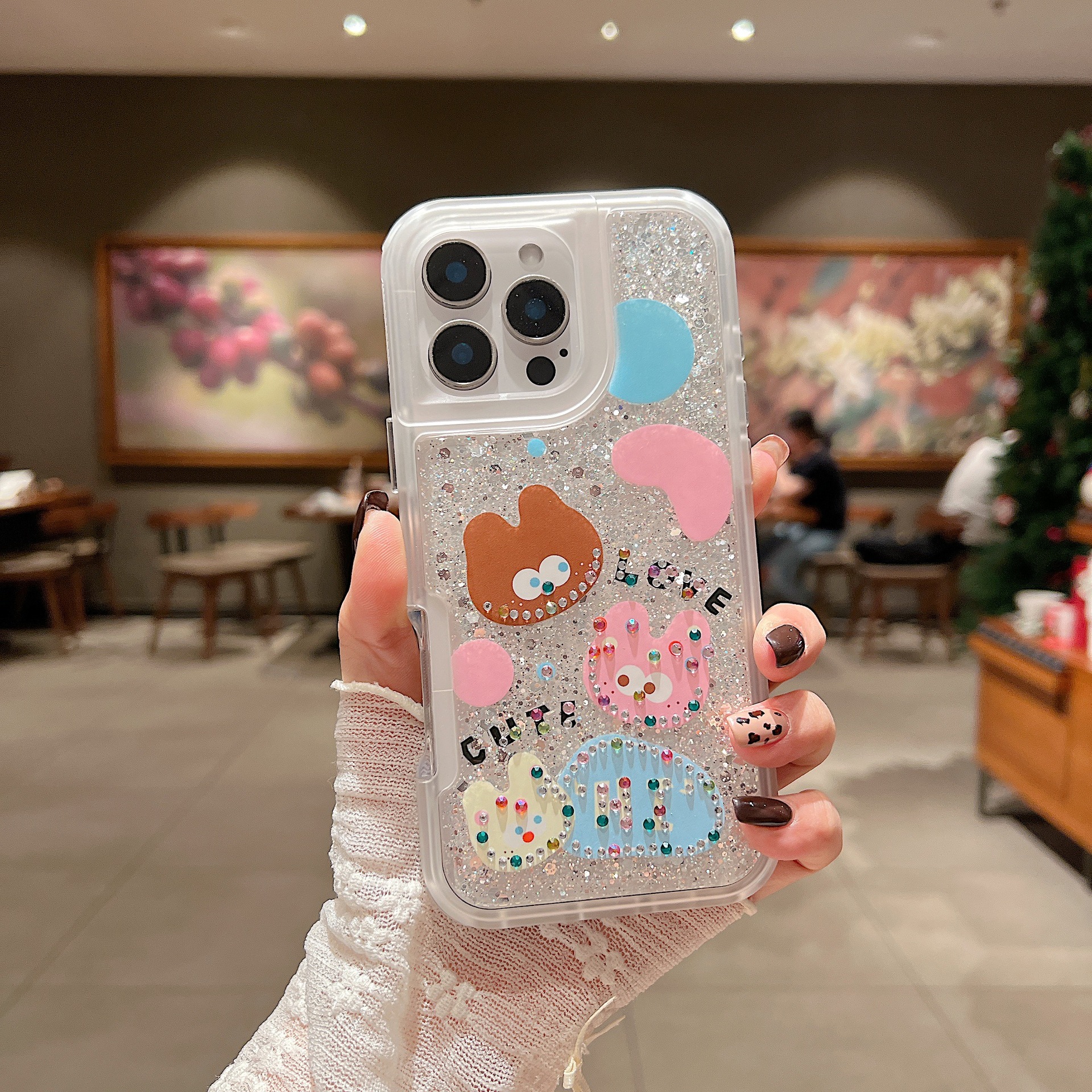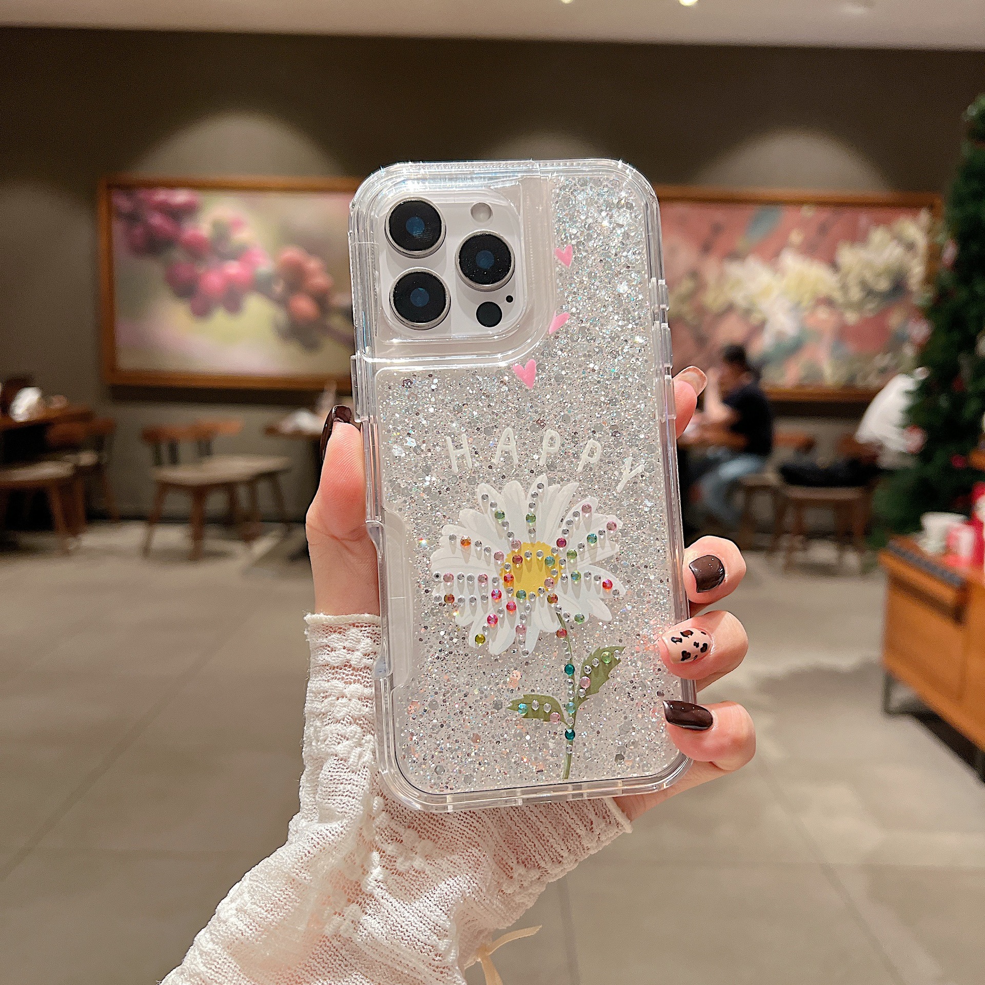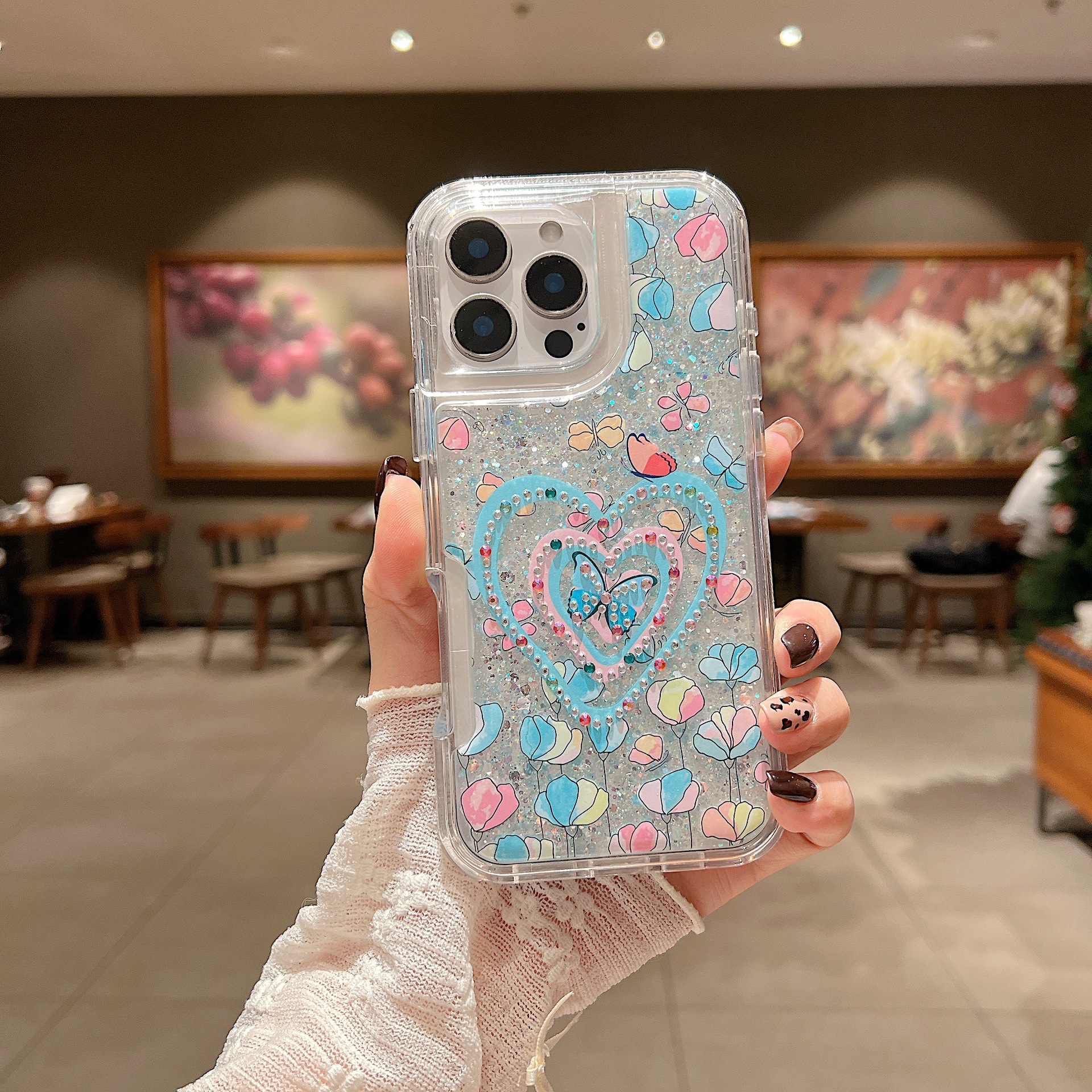 새로운 애플 iPhone16Promax 전화 케이스 레인보우 플래시 다이아몬드 드롭 방지 여성 유화 15 플러스 세트에 적합스토어 가기