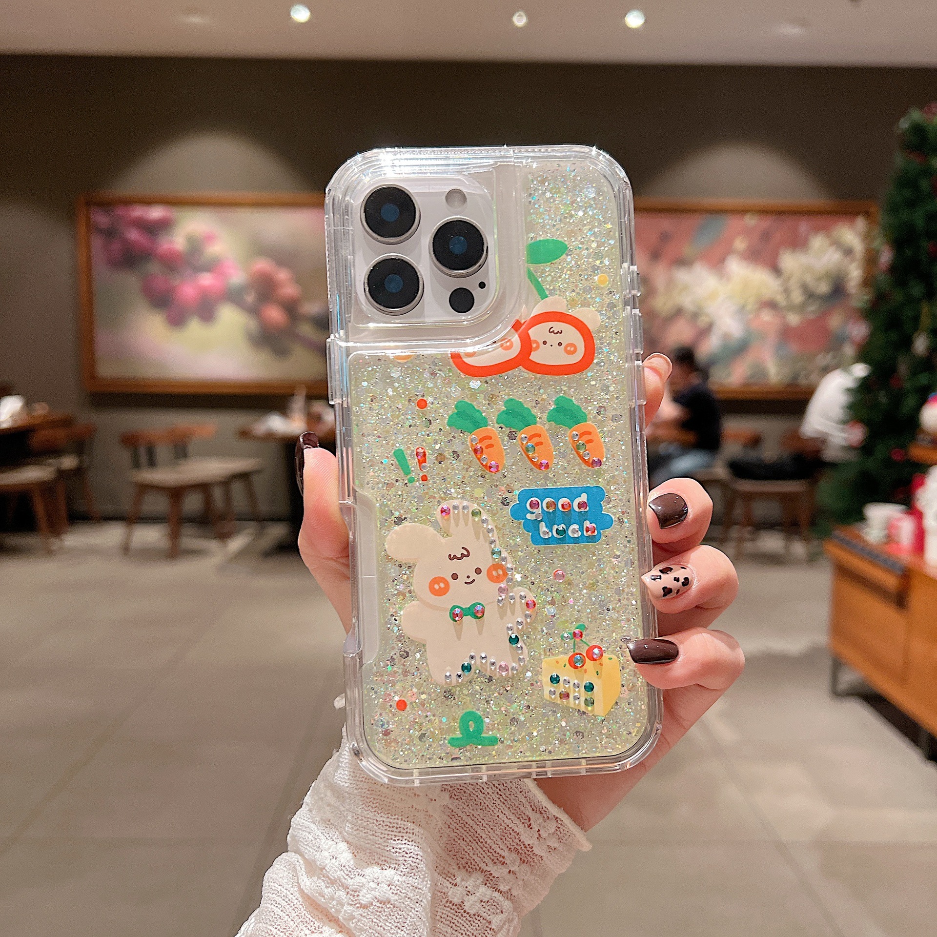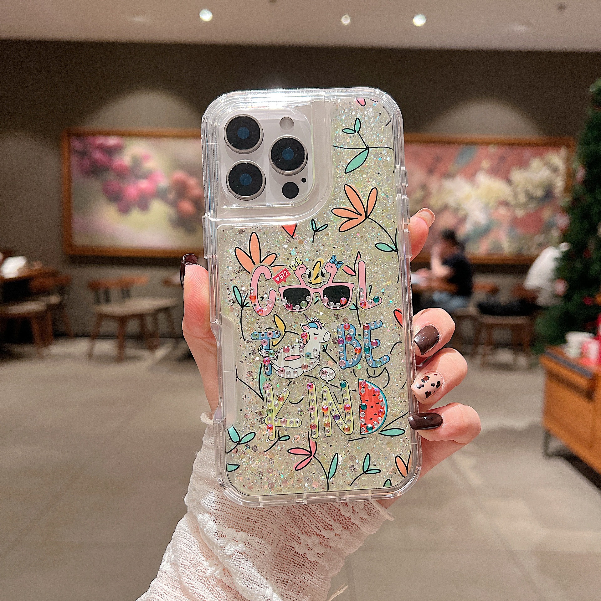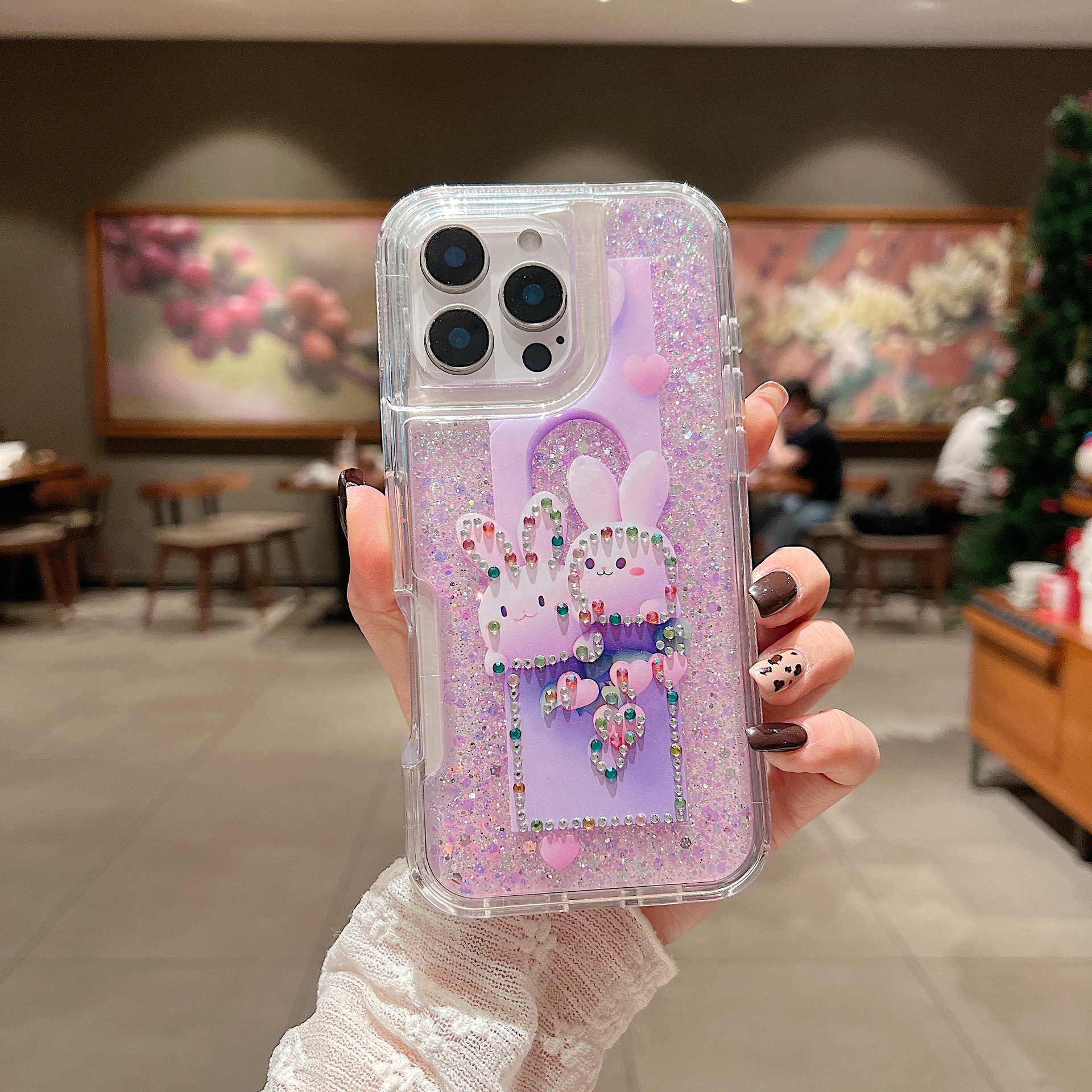 새로운 애플 iPhone16Promax 전화 케이스 레인보우 플래시 다이아몬드 드롭 방지 여성 유화 15 플러스 세트에 적합스토어 가기