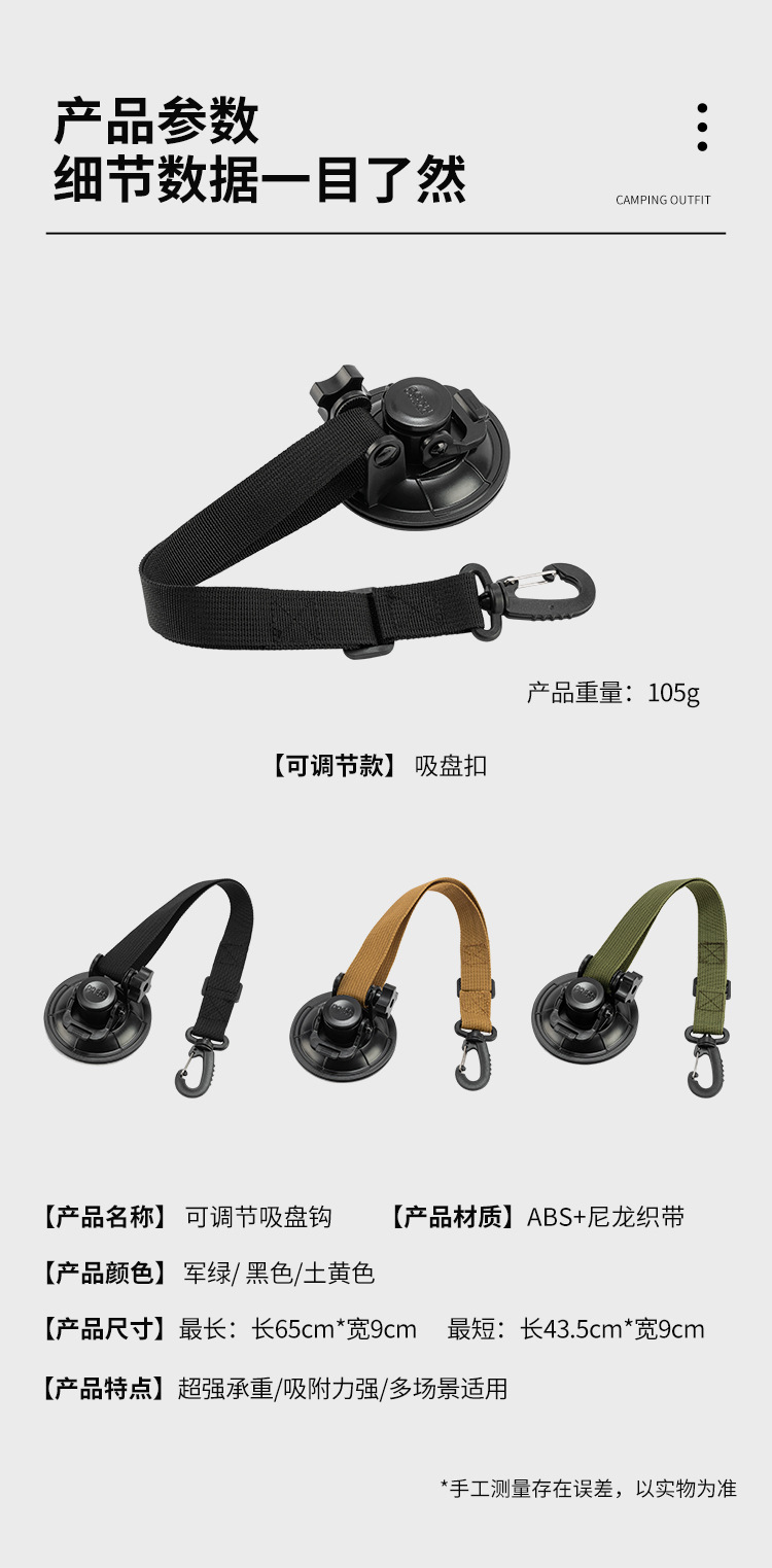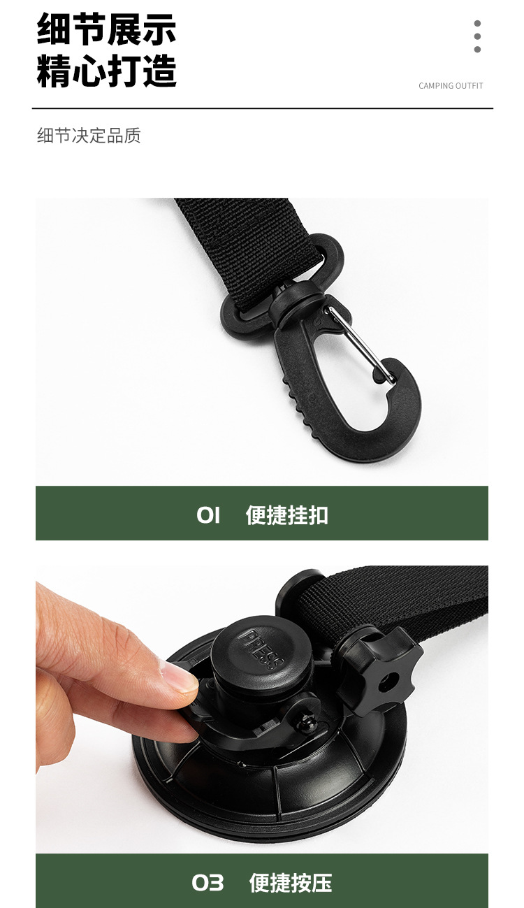 가정용 야외 캠핑 여행 자동차 휴대용 흡입 컵 후크 하이킹 버클 웨빙 보관 후크 텐트 흡입 컵