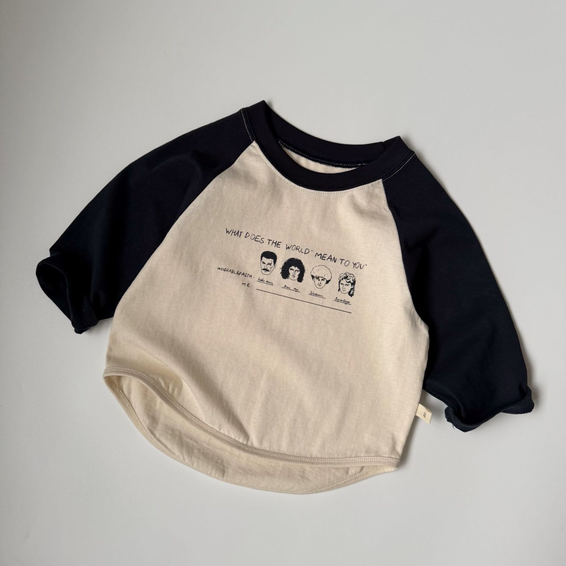 GL-kids 한국어 버전 가을 새로운 어린이 복고풍 아바타 인쇄 라글란 슬리브 티셔츠 남성과 여성 보물 원래 배아 바닥 셔츠