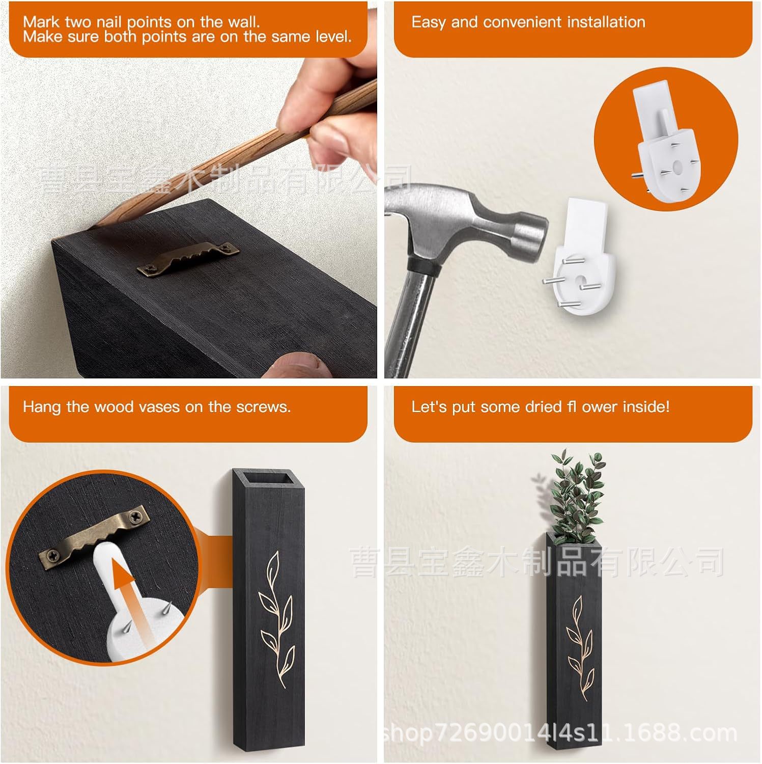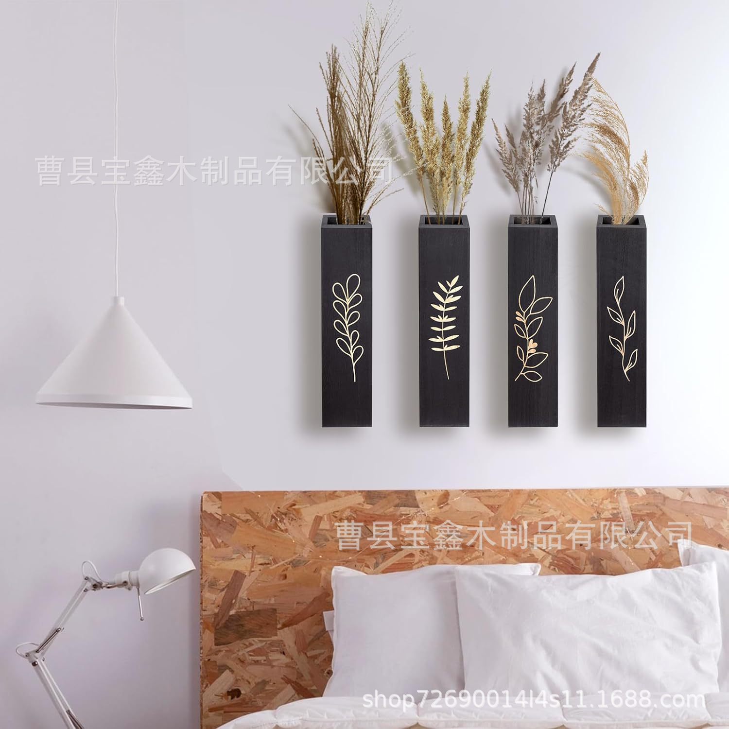국경 간 나무 벽 꽃병 목회 농가 벽 꽃병 장식 거실 침실 말린 꽃 보관 용기스토어 가기