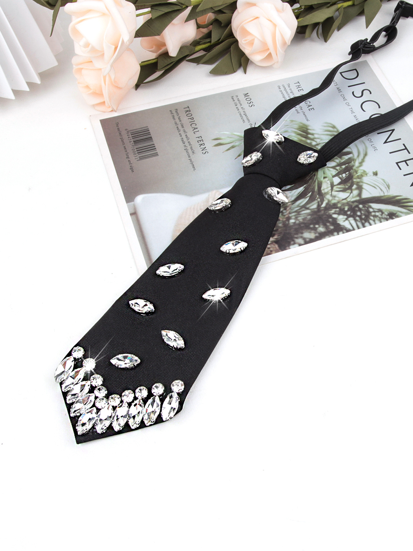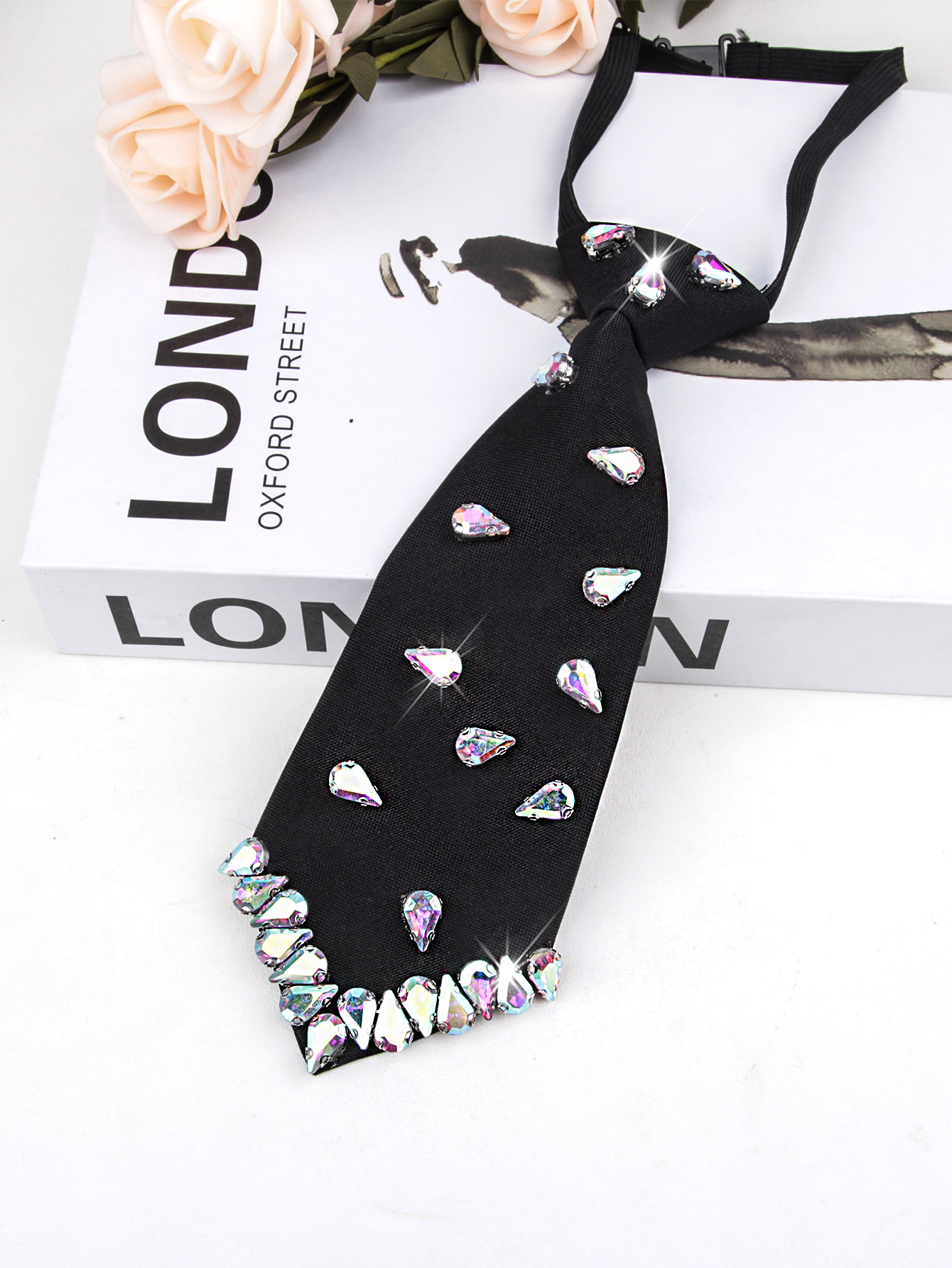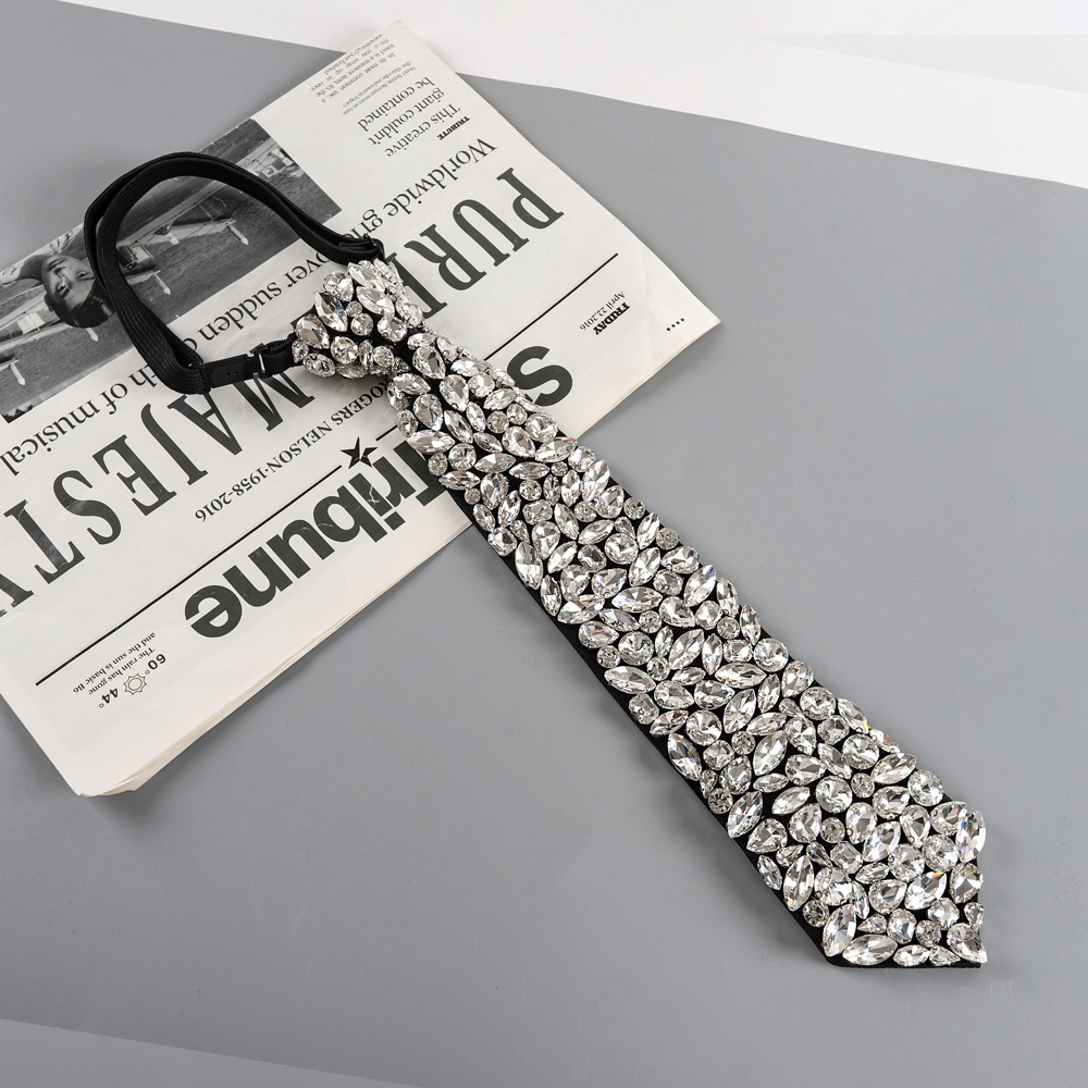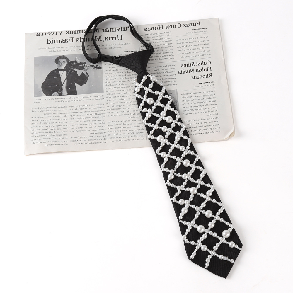 여성용 진주 넥타이와 블랙 라인스톤 넥타이가 함께 제공되는 여성용 셔츠, 간편하게 착용할 수 있는 여성용 넥타이 도매스토어 가기