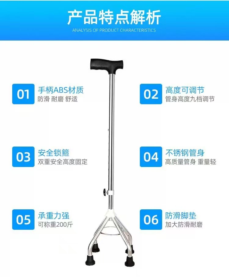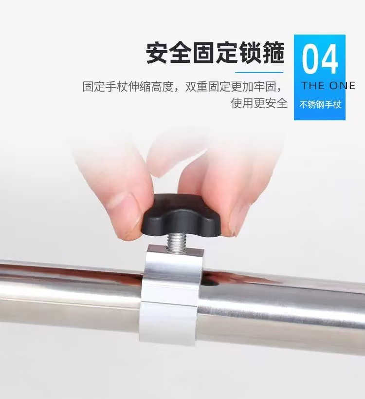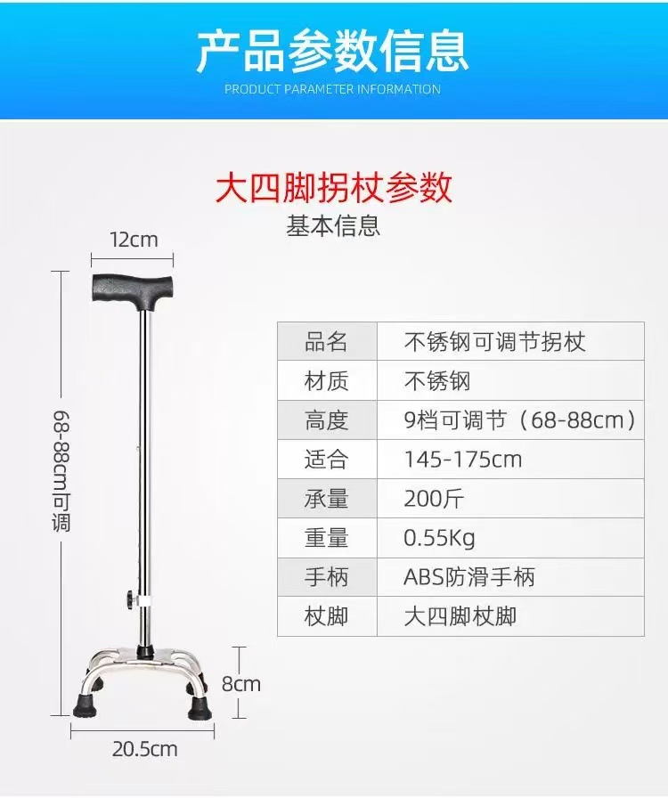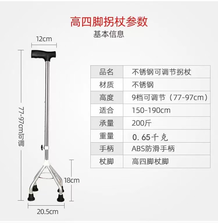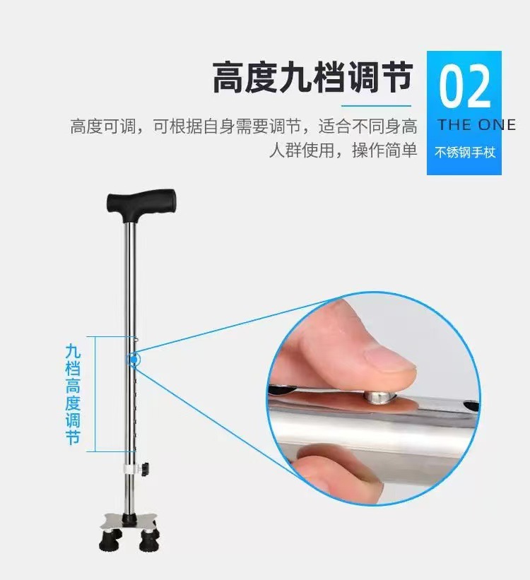 스테인리스 스틸 4각 지팡이, 노인용 미끄럼 방지 지팡이, 높이 조절 가능 보행 보조 지팡이, 하이킹 지팡이