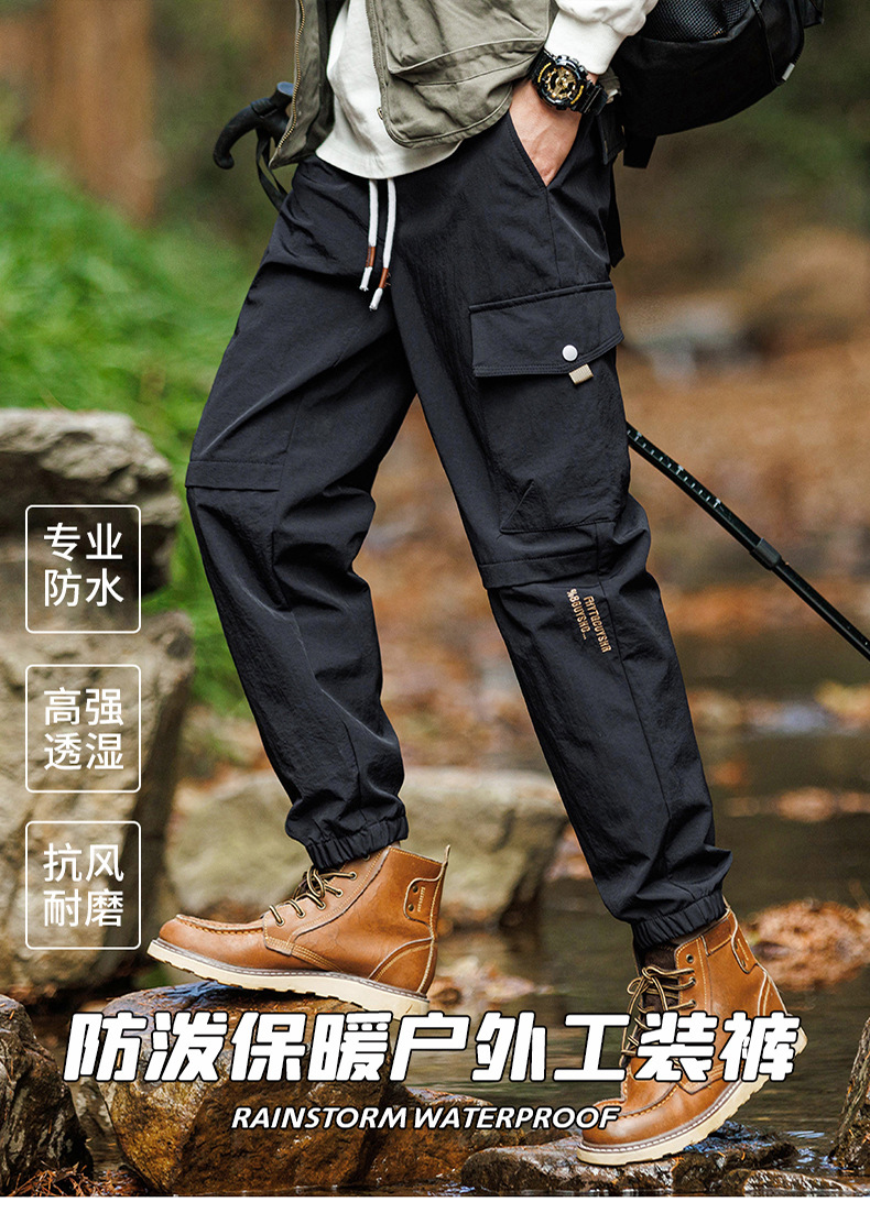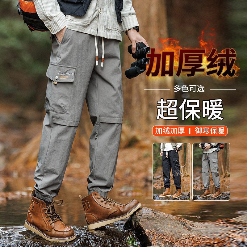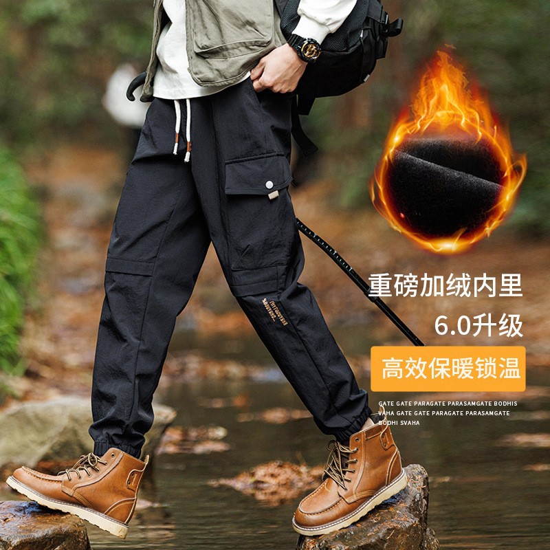 봄가을 작업복 바지 남성용 겨울 기모 안감 두꺼운 보온 캐주얼 바지 블랙 조거 팬츠 심플 스타일