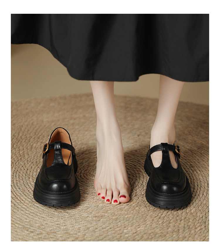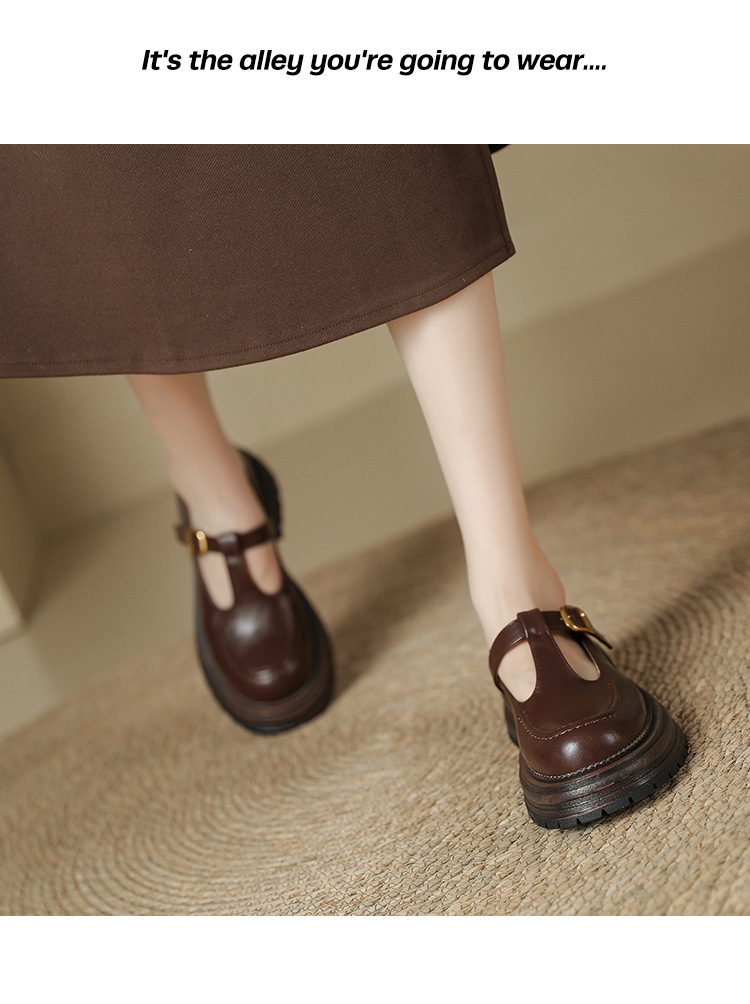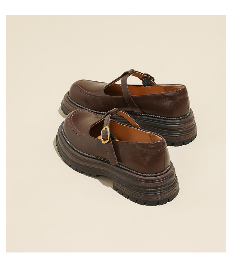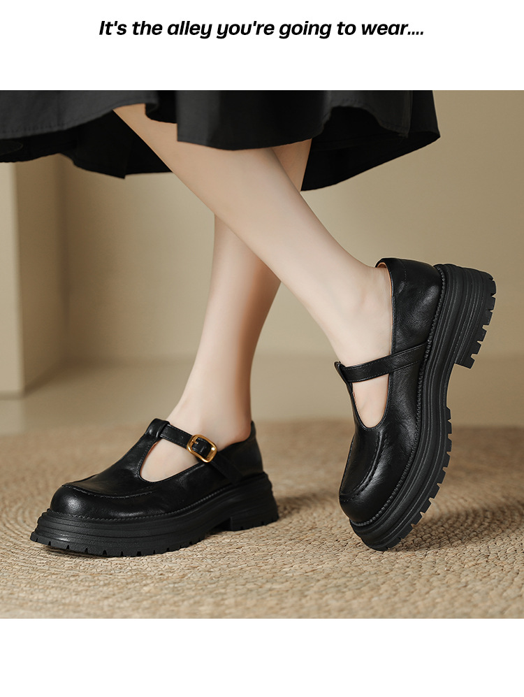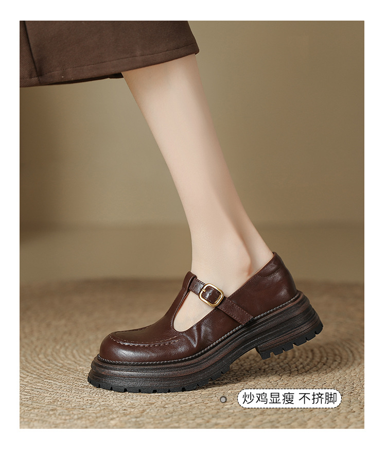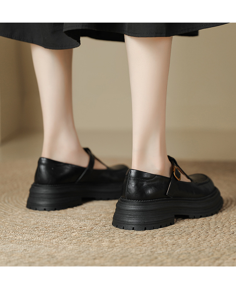 여성용 두꺼운 밑창 영국 가죽 신발 레트로 두꺼운 둥근 발가락 슬립 온 로퍼 신발 얕은 입 메리 제인 신발스토어 가기
