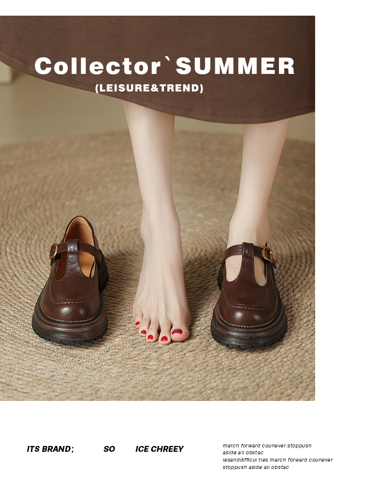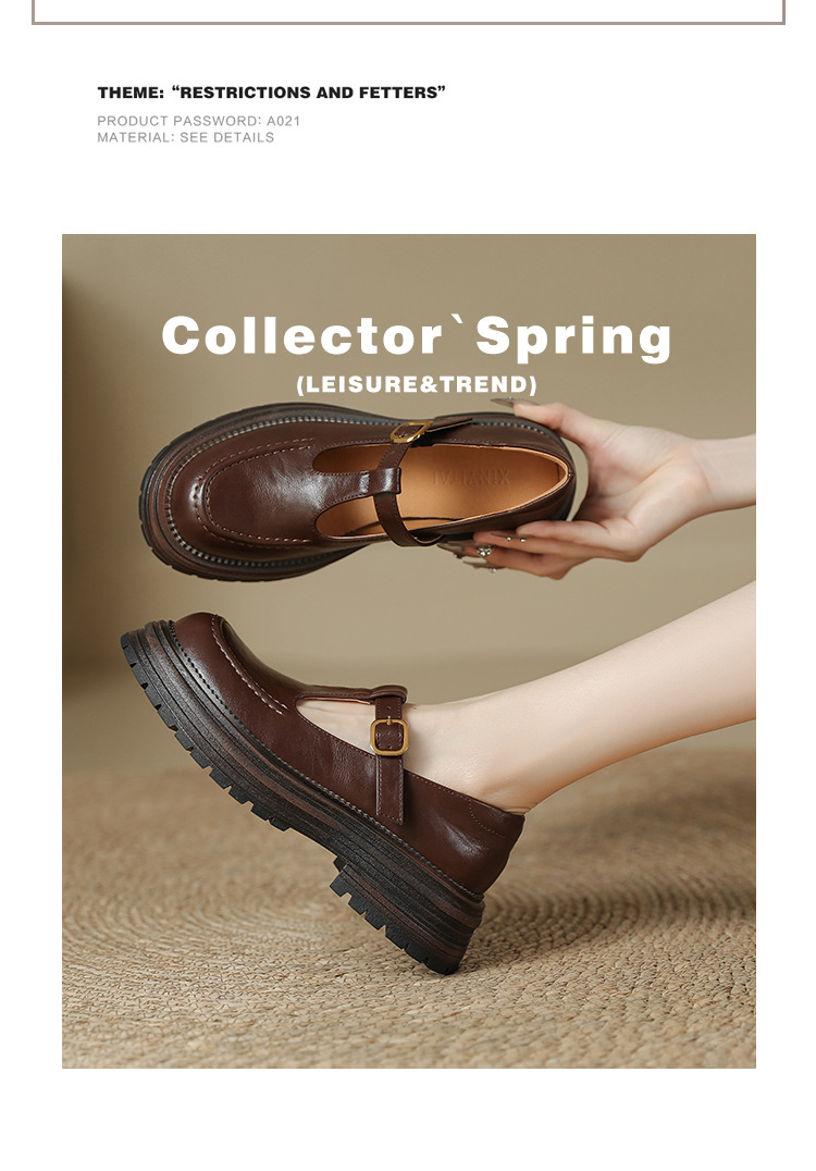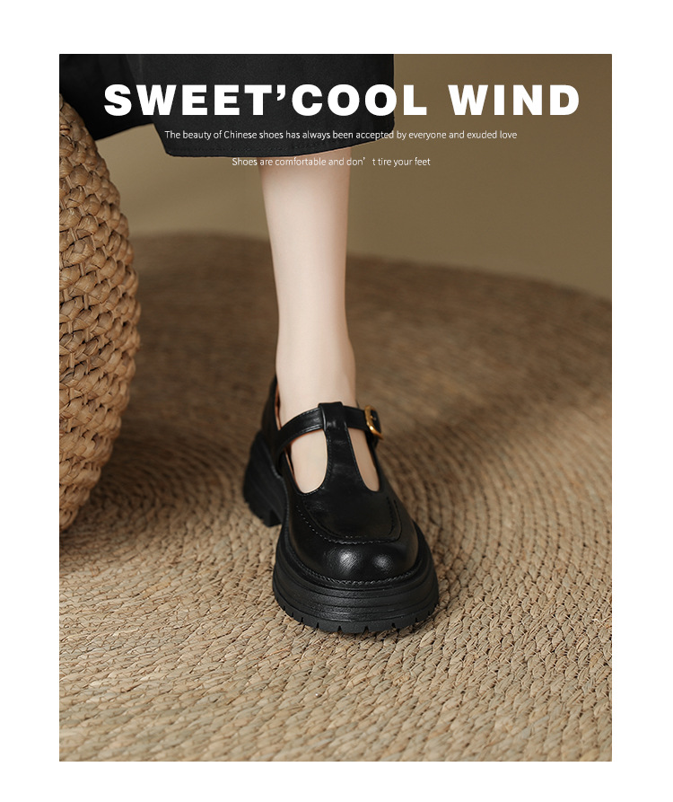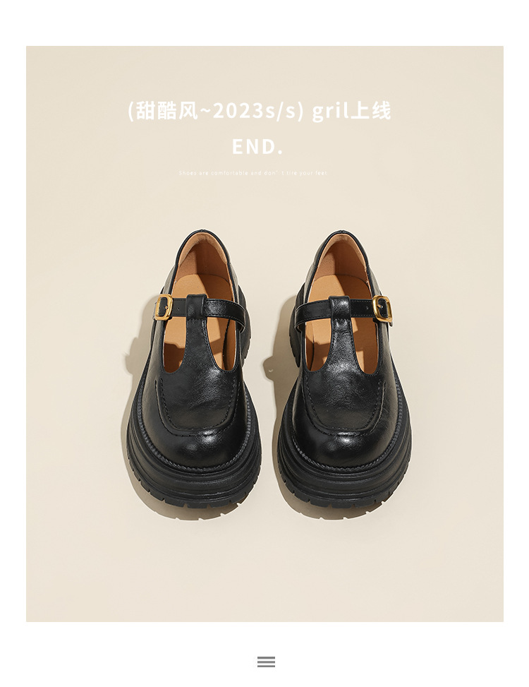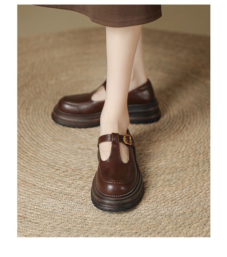 여성용 두꺼운 밑창 영국 가죽 신발 레트로 두꺼운 둥근 발가락 슬립 온 로퍼 신발 얕은 입 메리 제인 신발스토어 가기