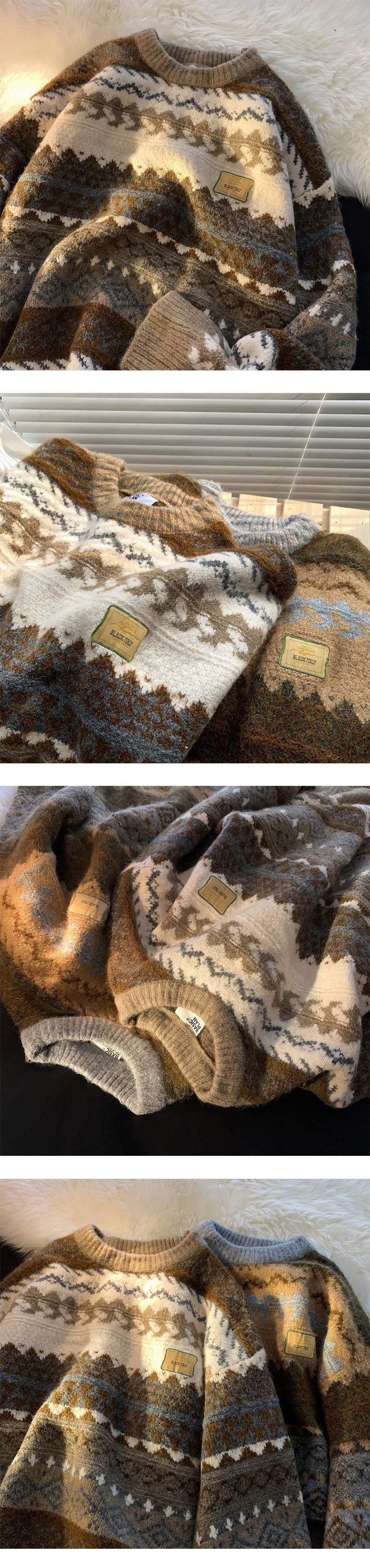 게으른 스타일 스웨터 남자 레트로 가을과 겨울 두꺼운 Ins 트렌디 한 라운드 넥 느슨한 캐주얼 니트 스웨터 청소년과 학생스토어 가기