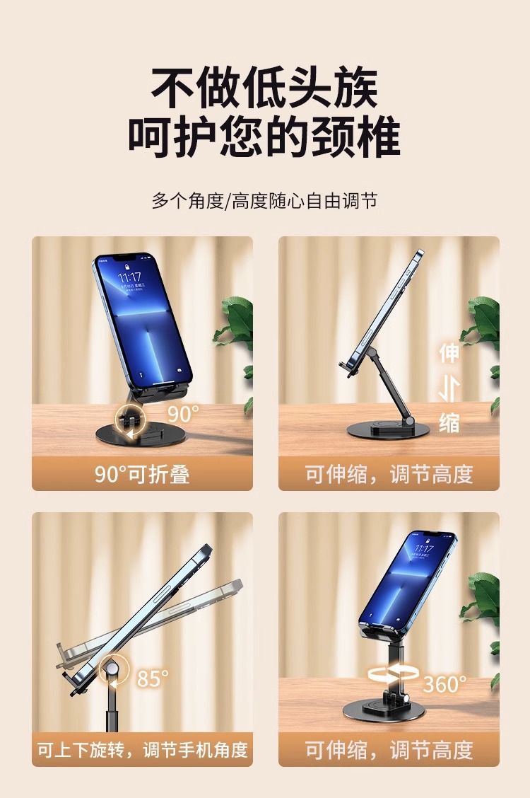 [공장 직접 공급] 알루미늄 합금 360 도 회전 리프팅 접이식 휴대 전화 브래킷 데스크톱 태블릿 실용적이고 범용스토어 가기