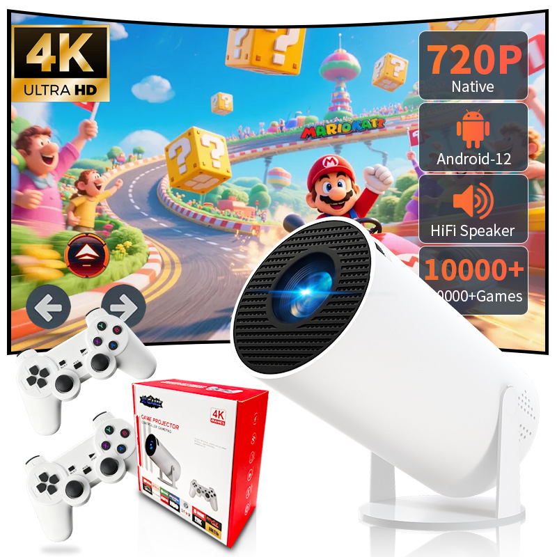 새로운 HY300 게임 프로젝터 올인원 X10PLUS 휴대용 스마트 안드로이드 4K HD 아케이드 프로젝터