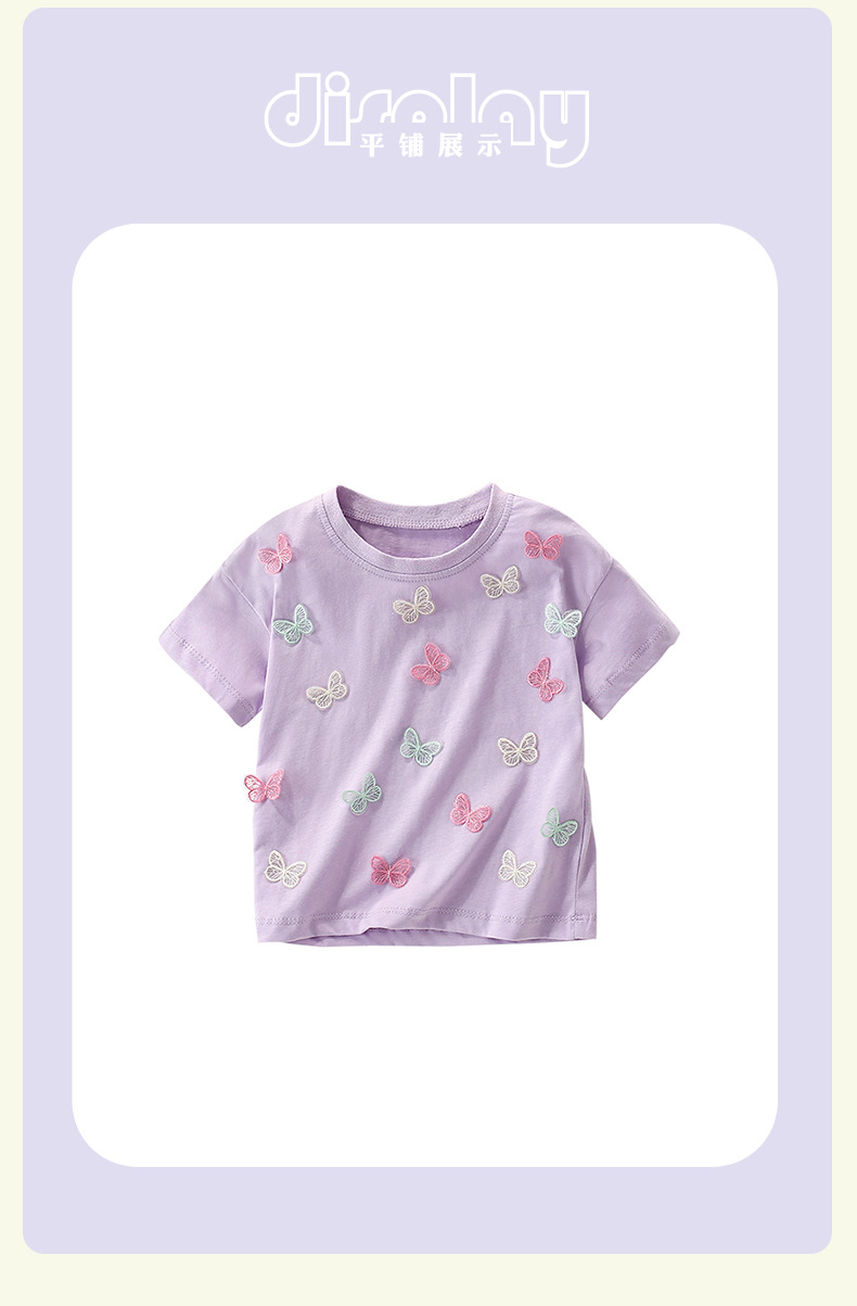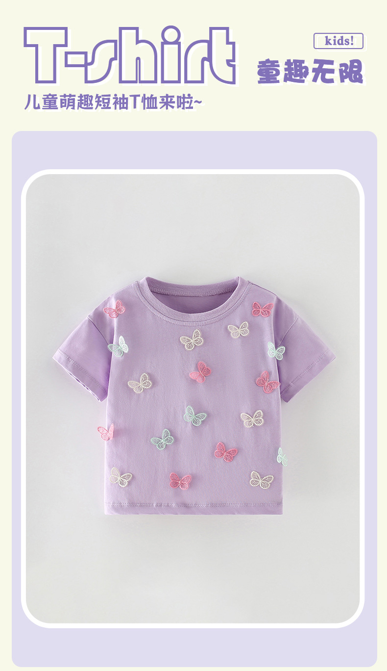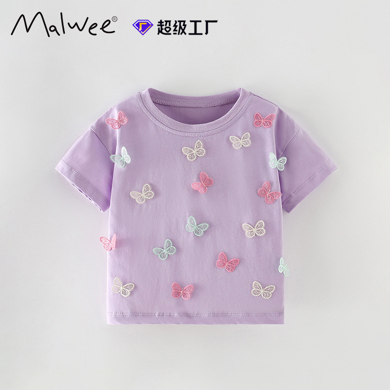 말위 여름 새로운 스타일 반팔 소녀 티셔츠 유럽과 미국 어린이 둥근 목 귀여운 소녀 아동복스토어 가기
