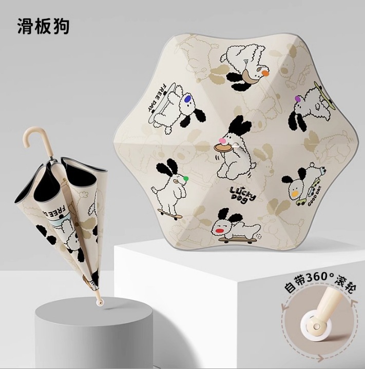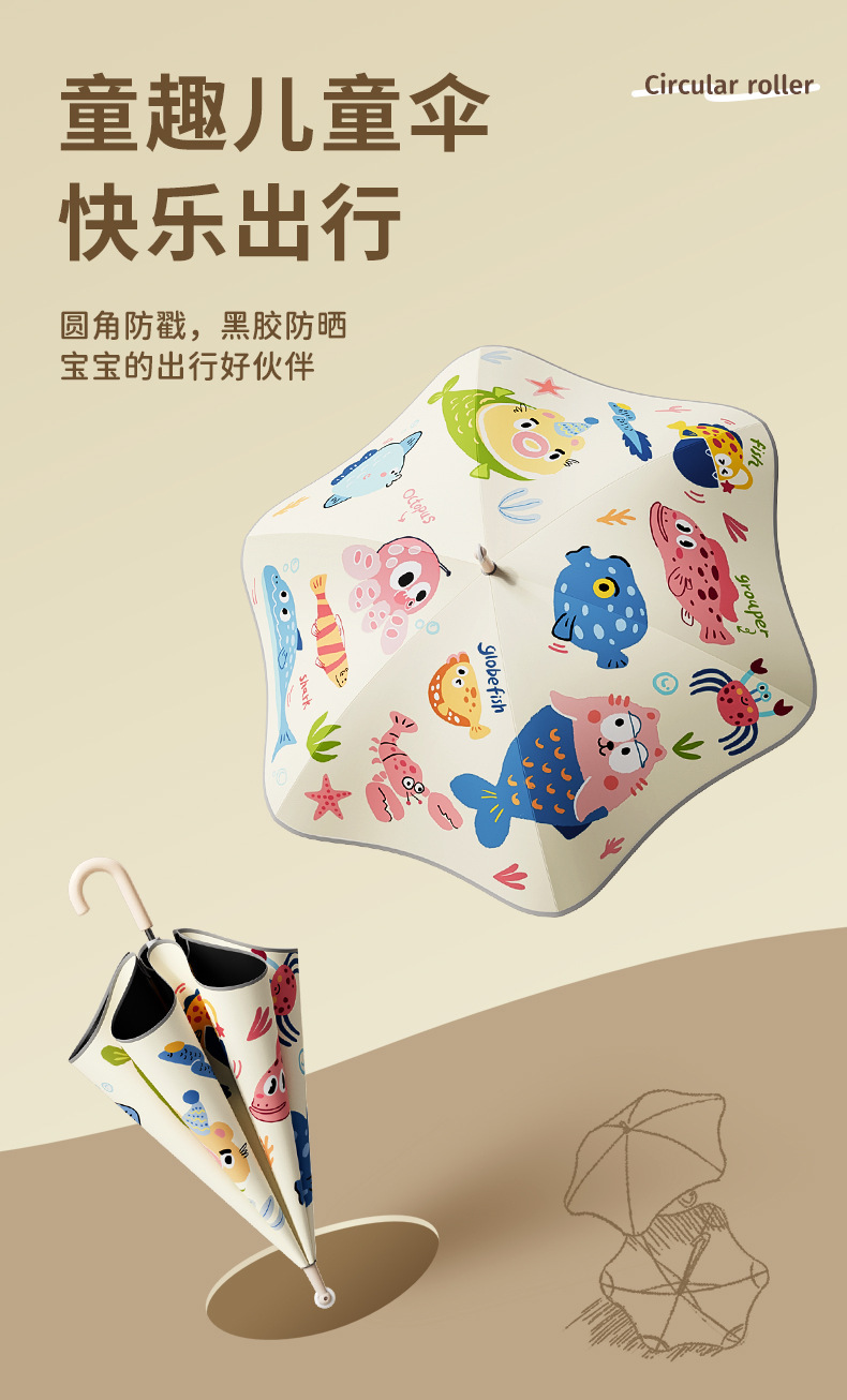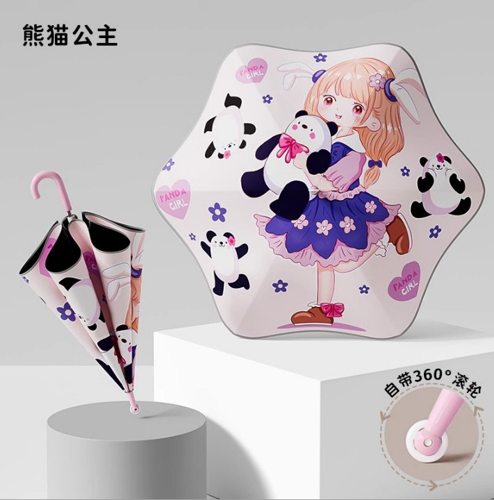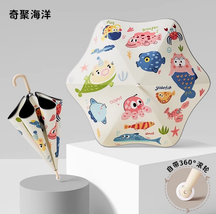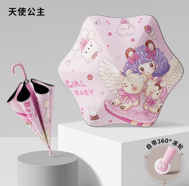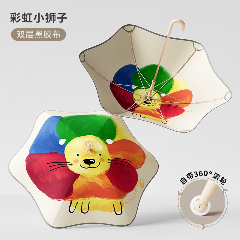 어린이 우산 둥근 롤러 대형 남성 및 초등학생 안티 찌르기 부상 소녀 검은 접착제 맑고 비 이중 목적 우산 귀여운 우산스토어 가기
