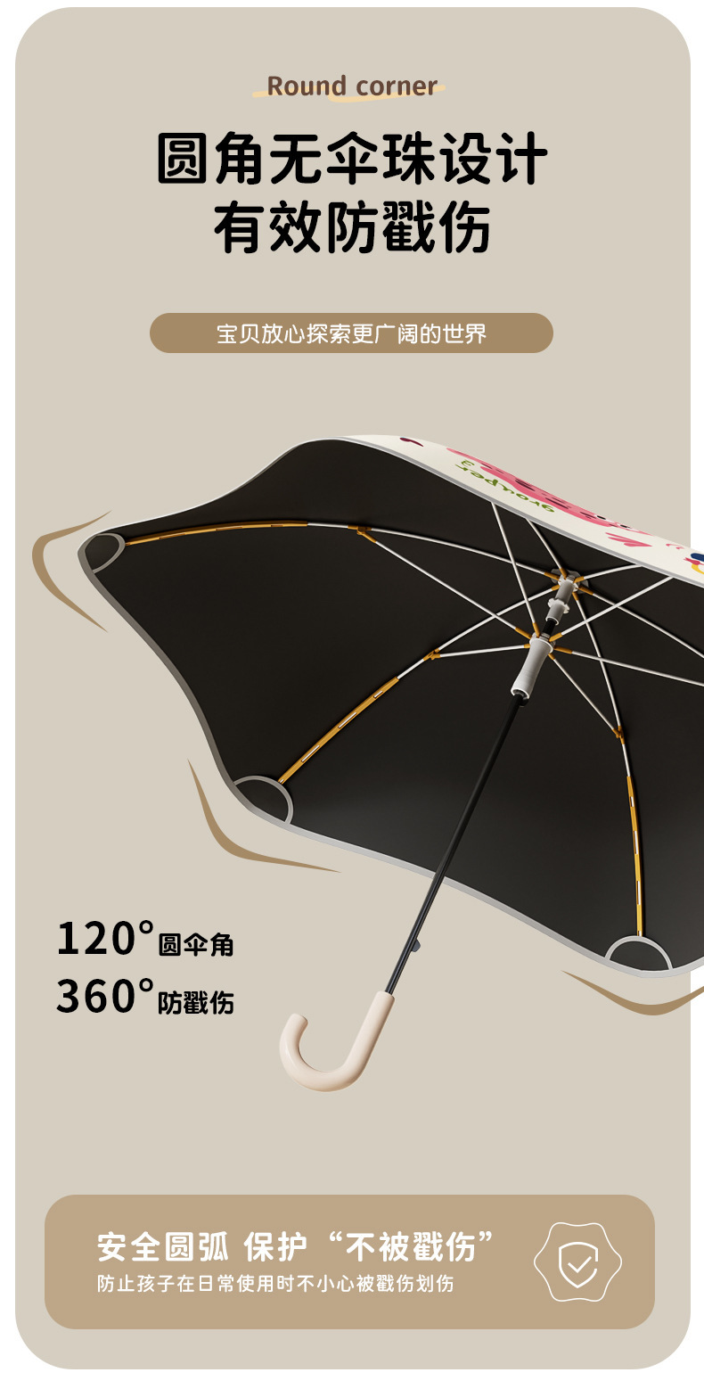 어린이 우산 둥근 롤러 대형 남성 및 초등학생 안티 찌르기 부상 소녀 검은 접착제 맑고 비 이중 목적 우산 귀여운 우산
