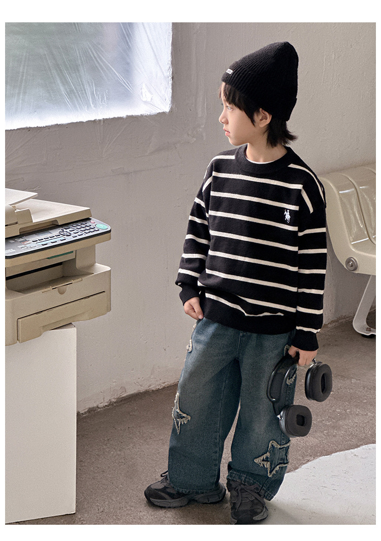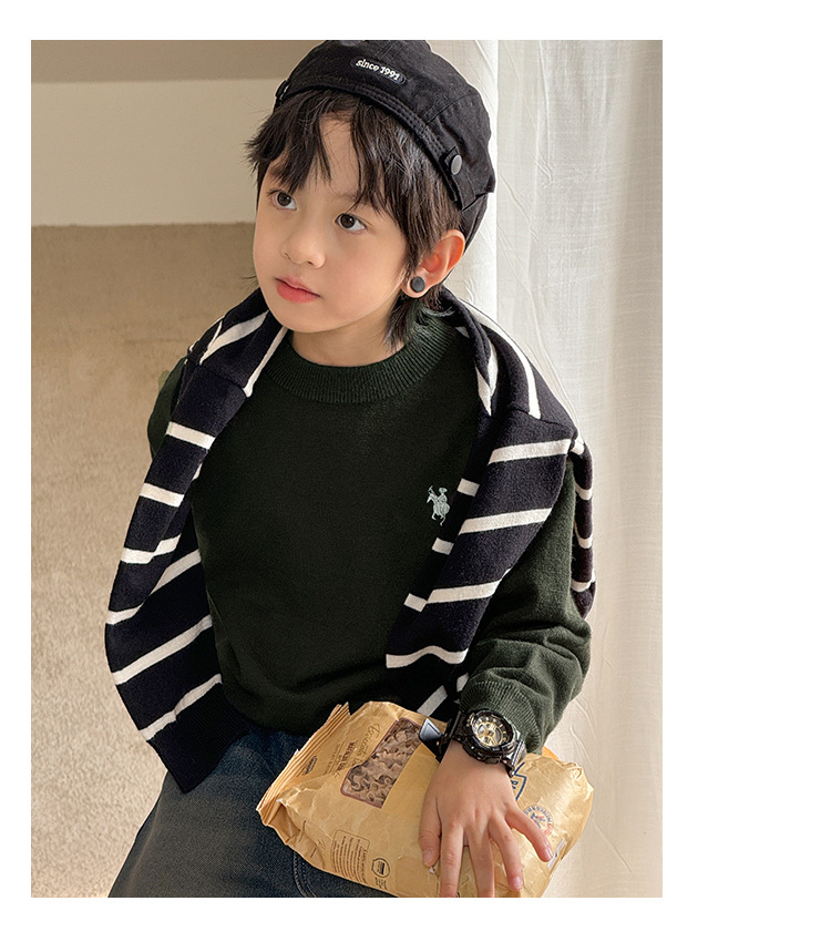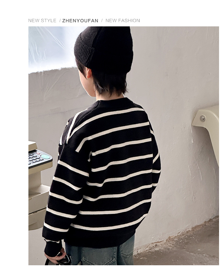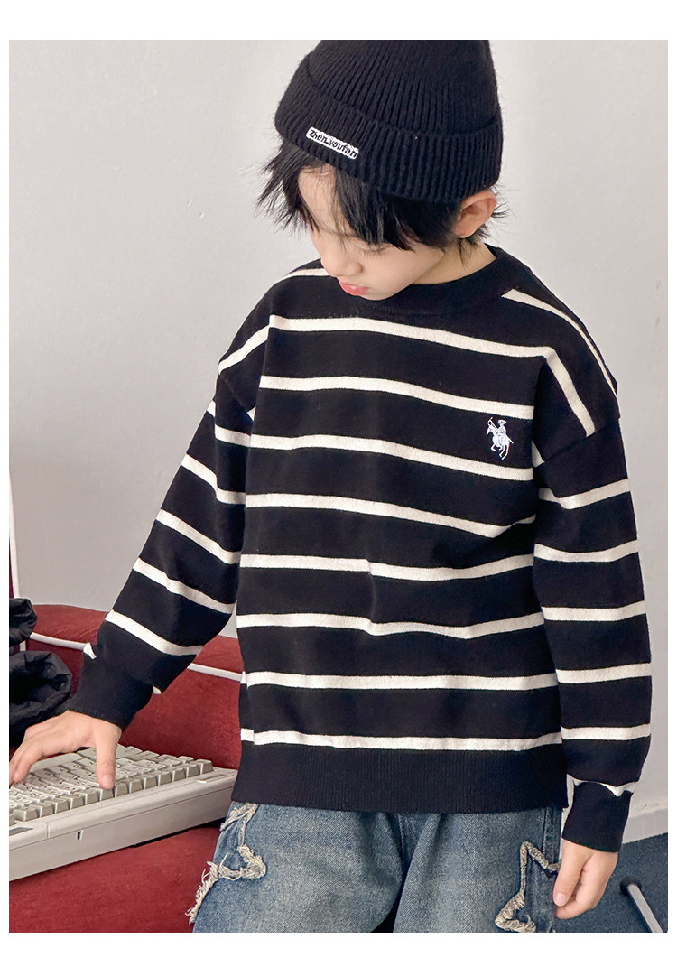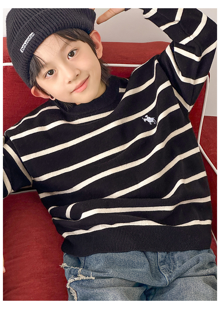 소년 아기 한국 스타일 패션 크루 넥 풀오버 스웨터 큰 아이 가을 겨울 새로운 스타일 올 매치 스트라이프 스웨터스토어 가기