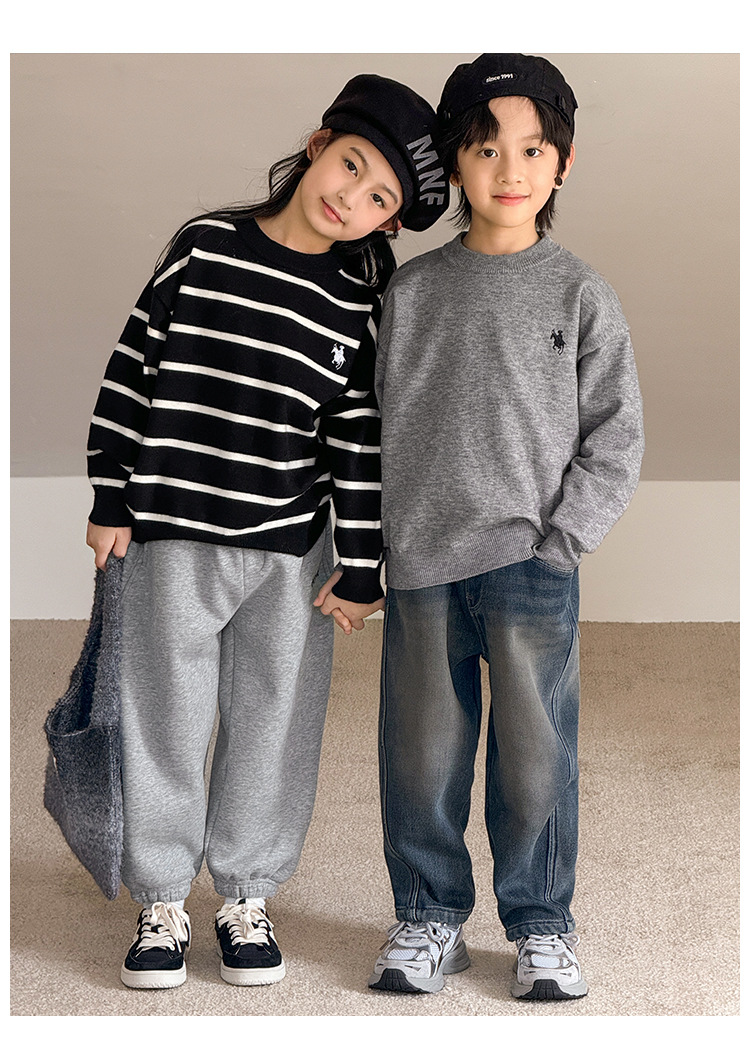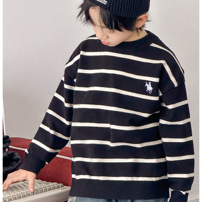 소년 아기 한국 스타일 패션 크루 넥 풀오버 스웨터 큰 아이 가을 겨울 새로운 스타일 올 매치 스트라이프 스웨터