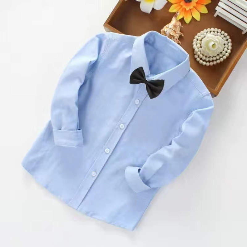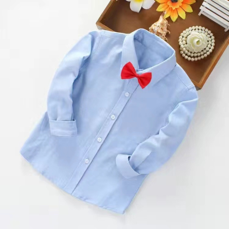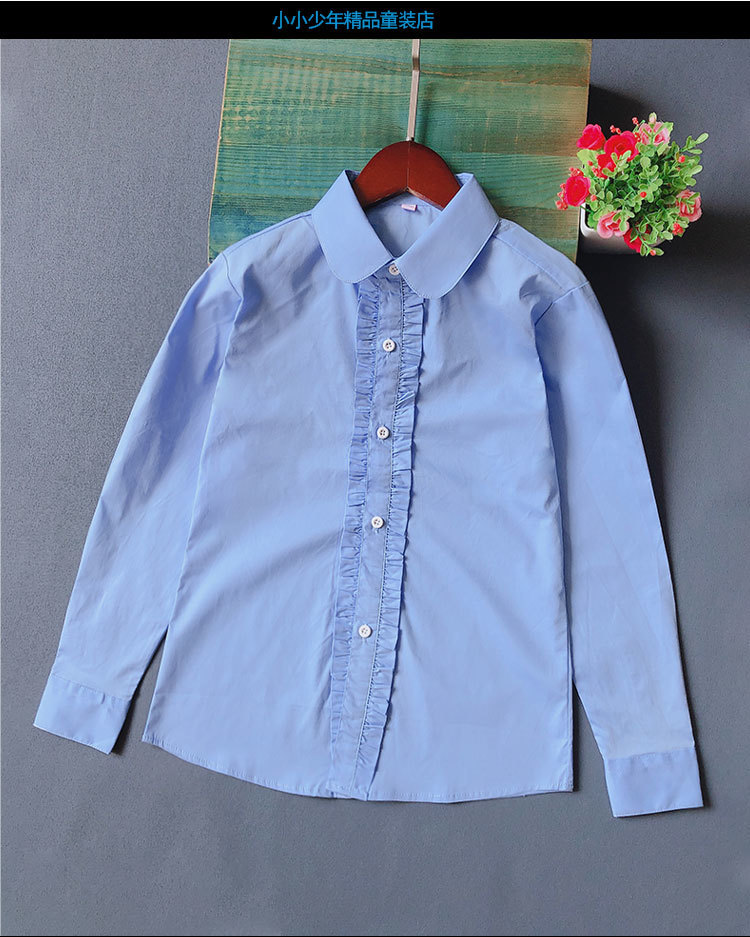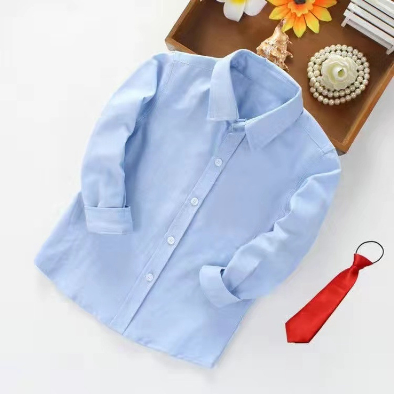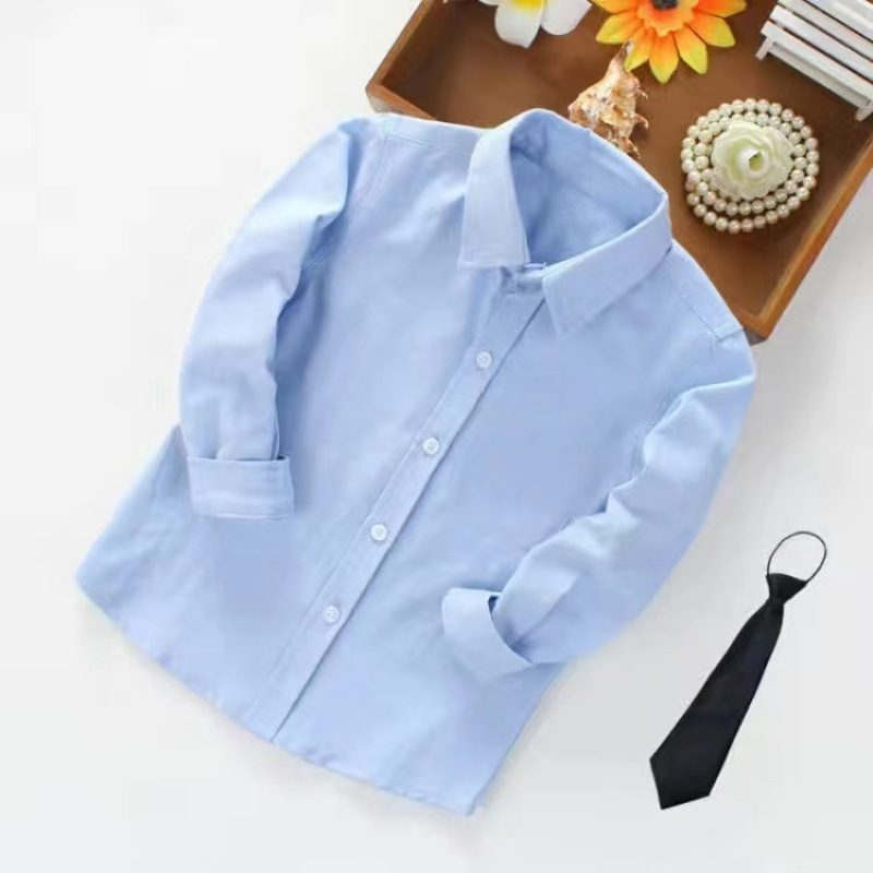 어린이 퓨어 블루 셔츠 긴 소매 봄 및 가을 최고 초등 및 중등 학교 학생의 공연 유니폼 학교 유니폼 소년 소녀 블루 셔츠