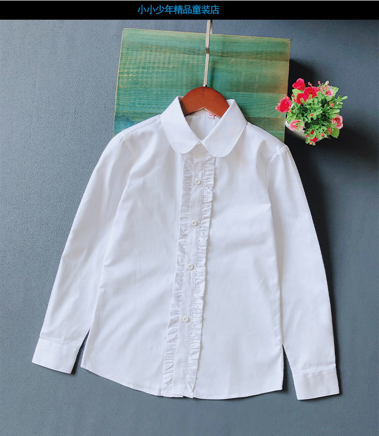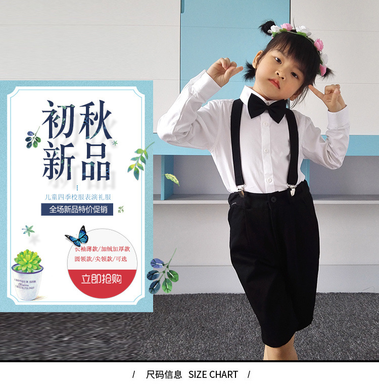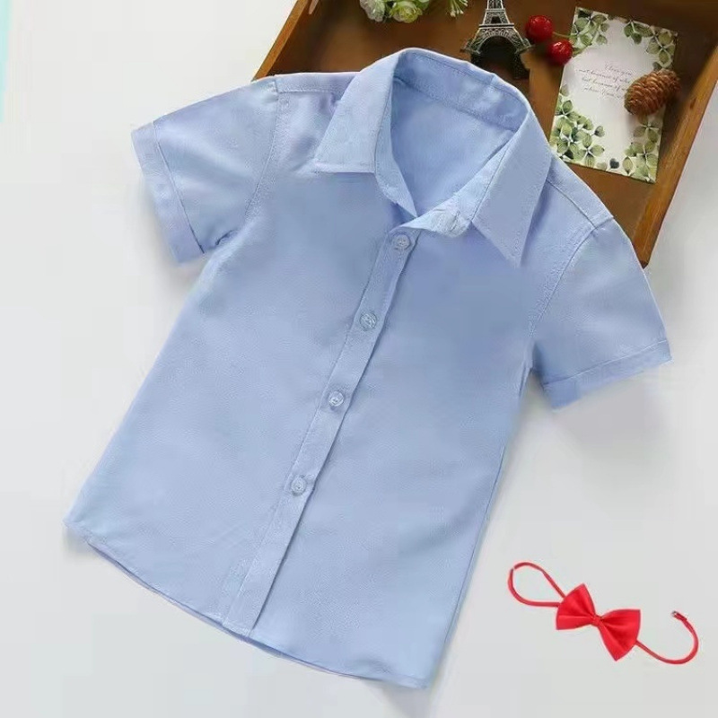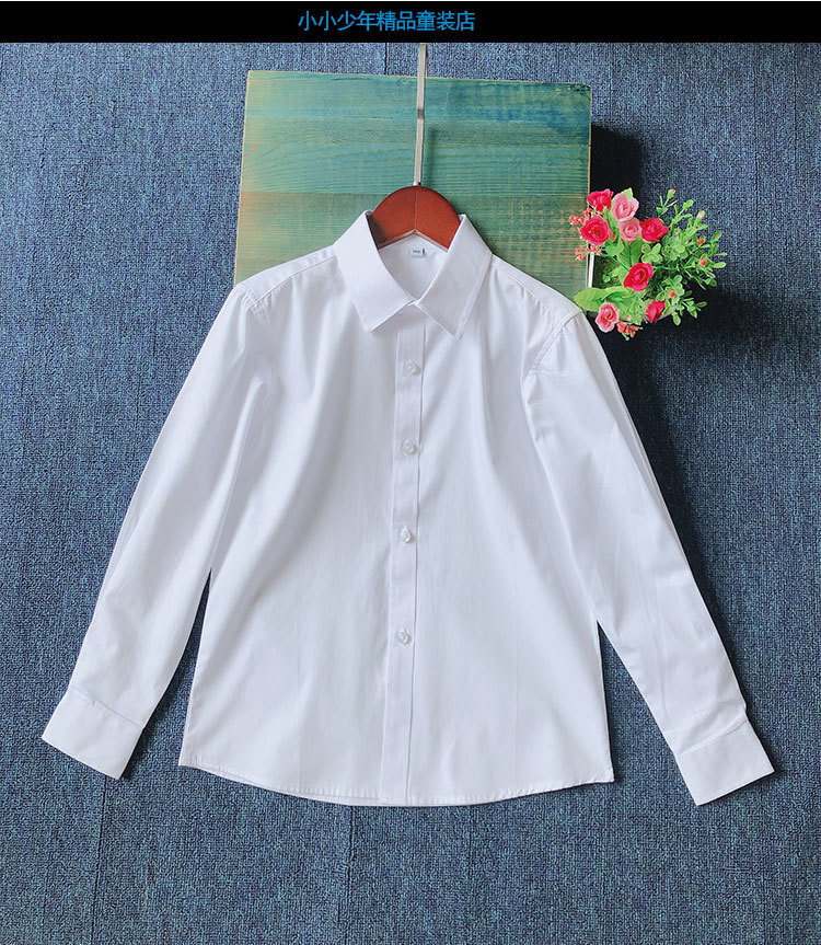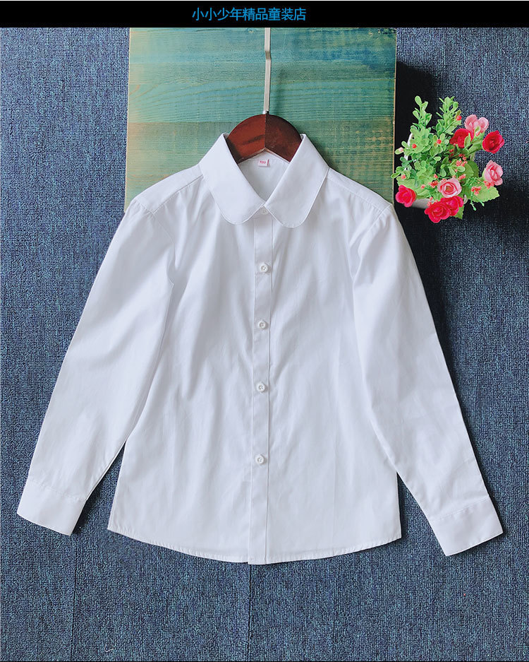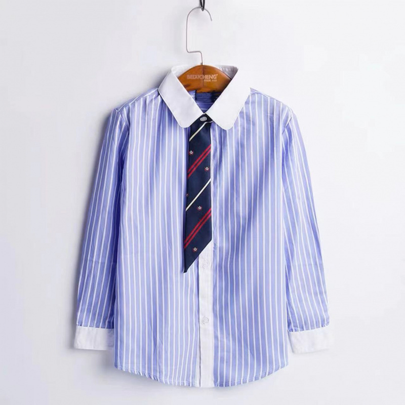 어린이 퓨어 블루 셔츠 긴 소매 봄 및 가을 최고 초등 및 중등 학교 학생의 공연 유니폼 학교 유니폼 소년 소녀 블루 셔츠