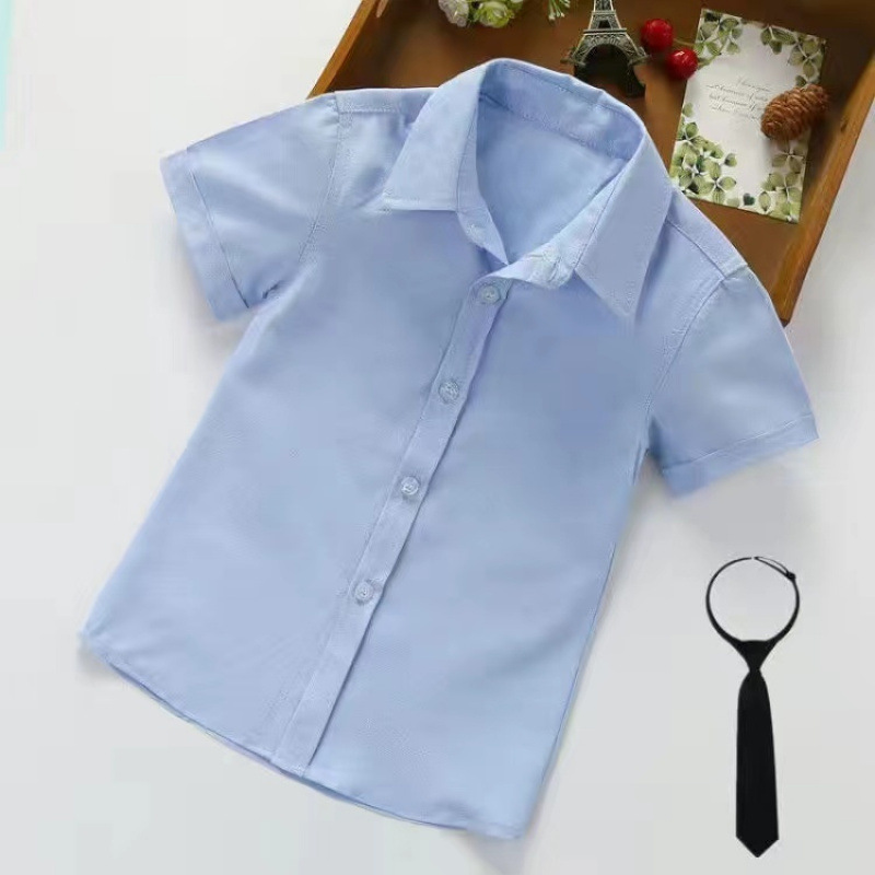 어린이 퓨어 블루 셔츠 긴 소매 봄 및 가을 최고 초등 및 중등 학교 학생의 공연 유니폼 학교 유니폼 소년 소녀 블루 셔츠스토어 가기
