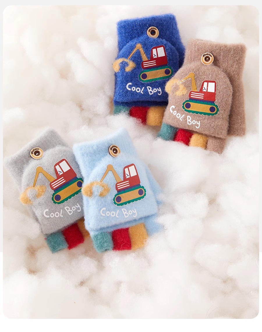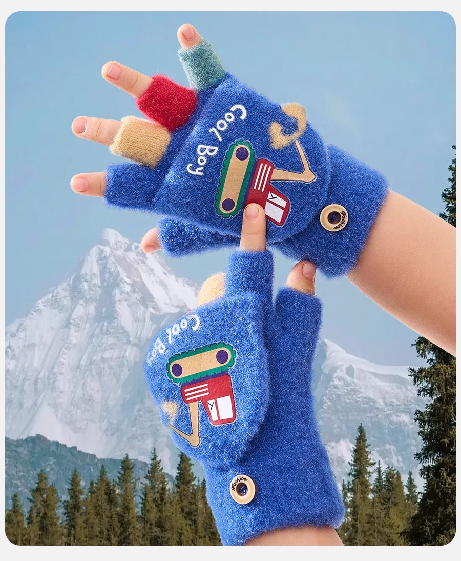 어린이 장갑 가을 겨울 소년 플립 커버 어린이 기모 따뜻한 반 손가락 숙제 글쓰기 큰 어린이와 학생을위한 장갑