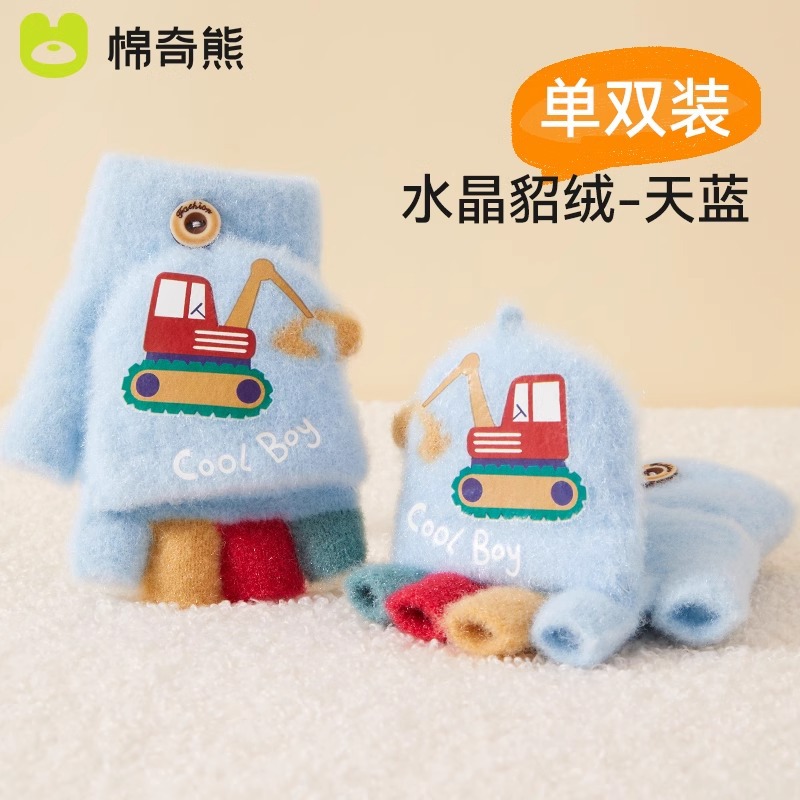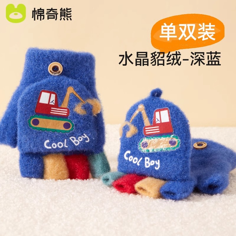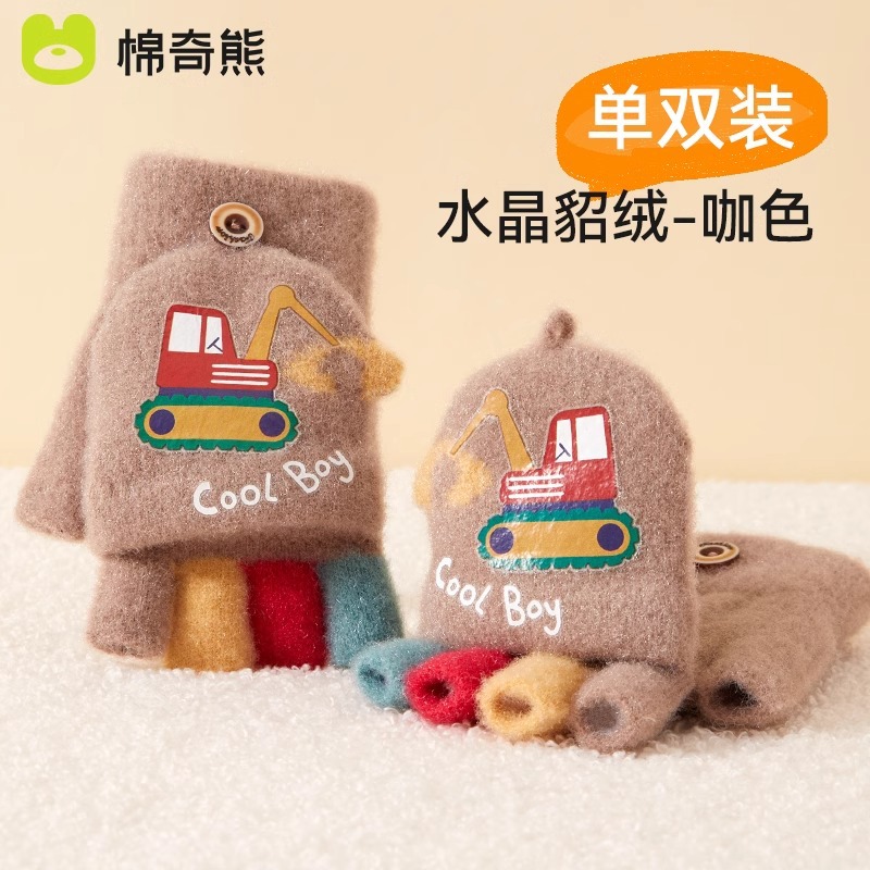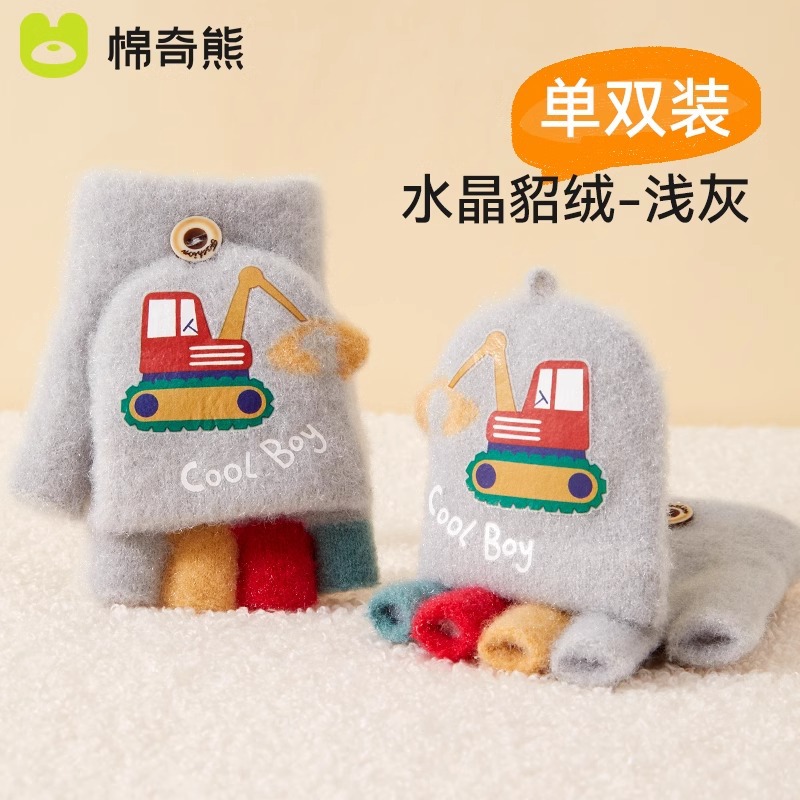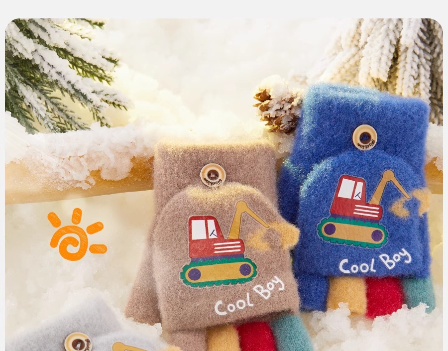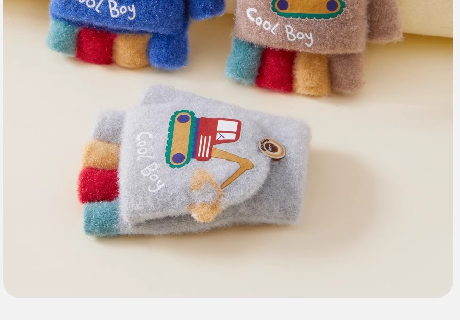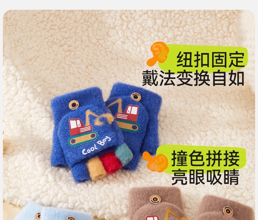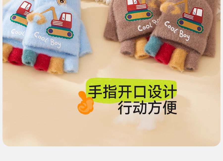 어린이 장갑 가을 겨울 소년 플립 커버 어린이 기모 따뜻한 반 손가락 숙제 글쓰기 큰 어린이와 학생을위한 장갑스토어 가기