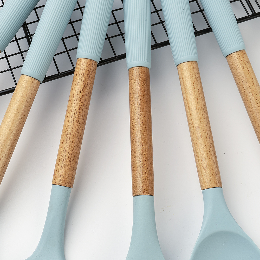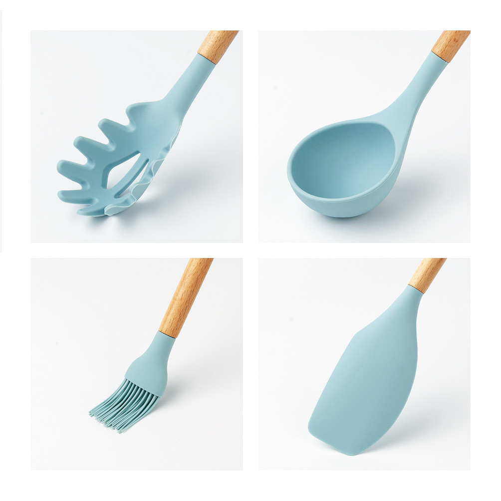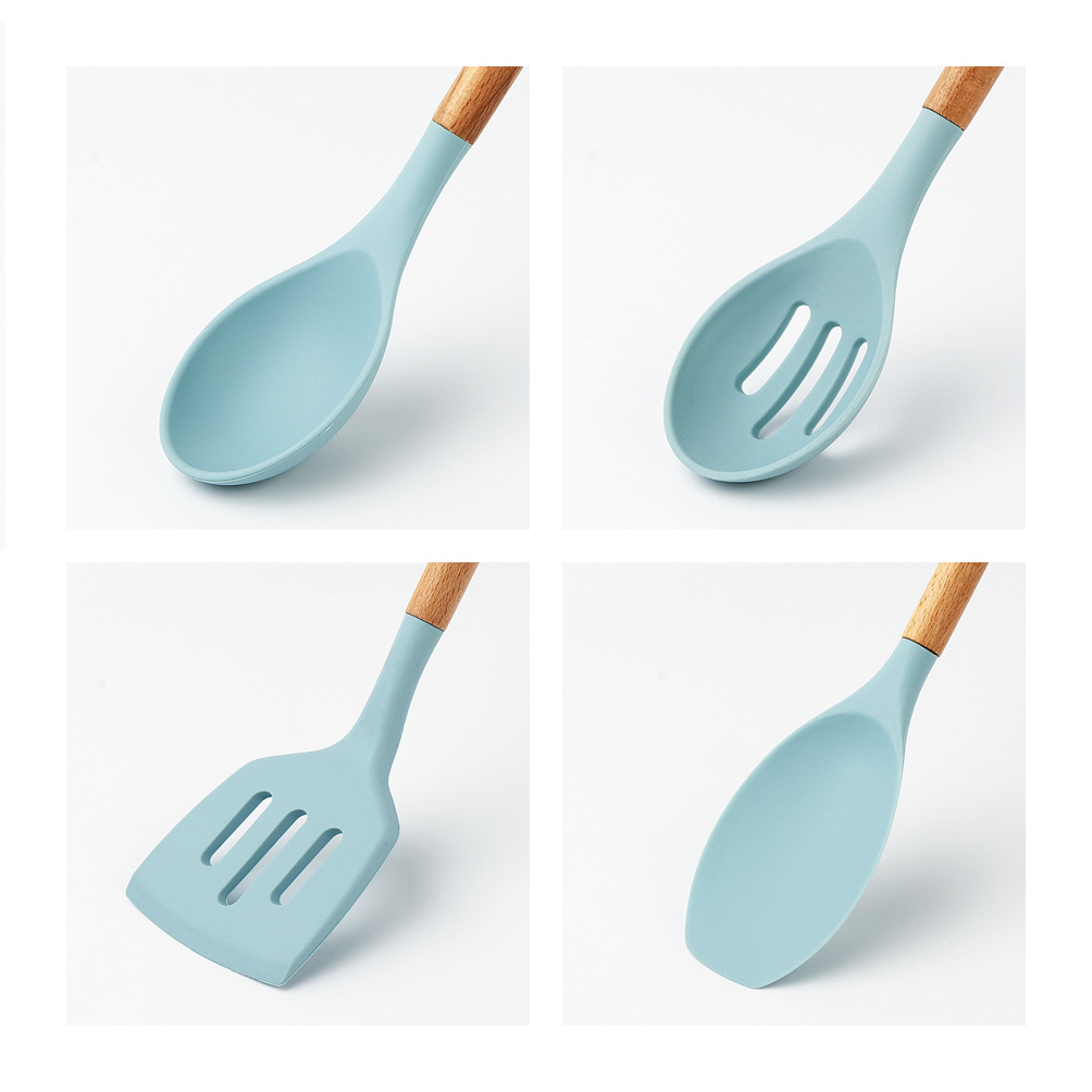 실리콘 주방 용품 세트 주걱 숟가락 나무 손잡이 9 개 세트 요리 주걱 베이킹 도구 세트 수프 숟가락 주걱 긁기