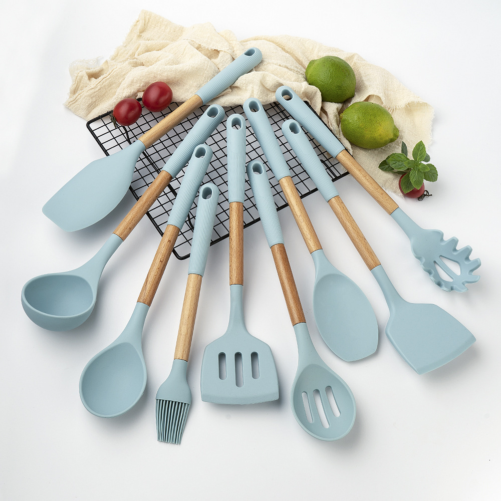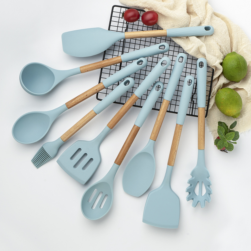 실리콘 주방 용품 세트 주걱 숟가락 나무 손잡이 9 개 세트 요리 주걱 베이킹 도구 세트 수프 숟가락 주걱 긁기스토어 가기