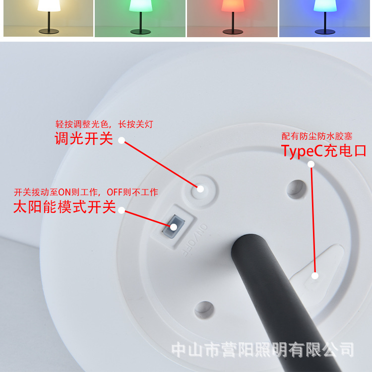 아마존 LED 태양 테이블 램프 레스토랑 야외 캠핑 데스크탑 분위기 RGB 방수 충전식 장식 테이블 램프