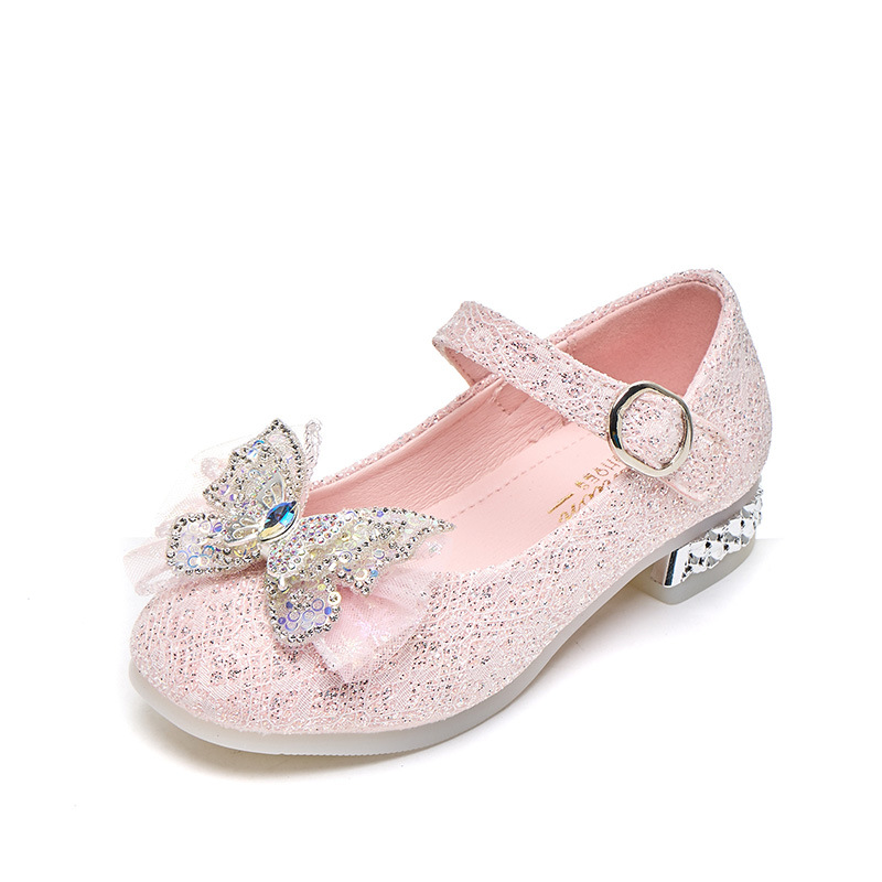 작은 하이힐 걸스 공주 신발 봄과 가을 2025 새로운 소녀 가죽 신발 원피스 부드러운 단독 어린이 크리스탈 신발 싱글 레이어 신발