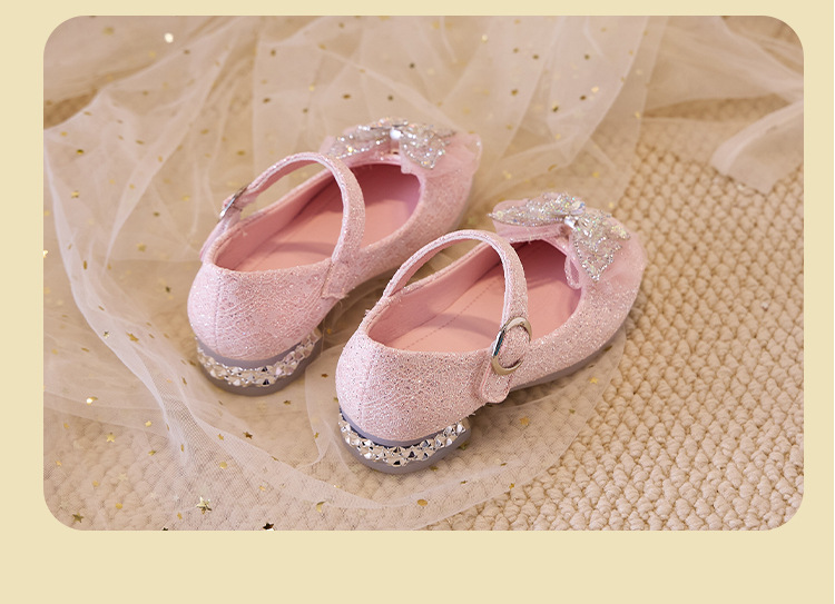 작은 하이힐 걸스 공주 신발 봄과 가을 2025 새로운 소녀 가죽 신발 원피스 부드러운 단독 어린이 크리스탈 신발 싱글 레이어 신발스토어 가기