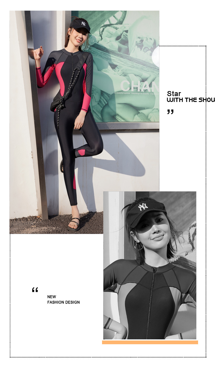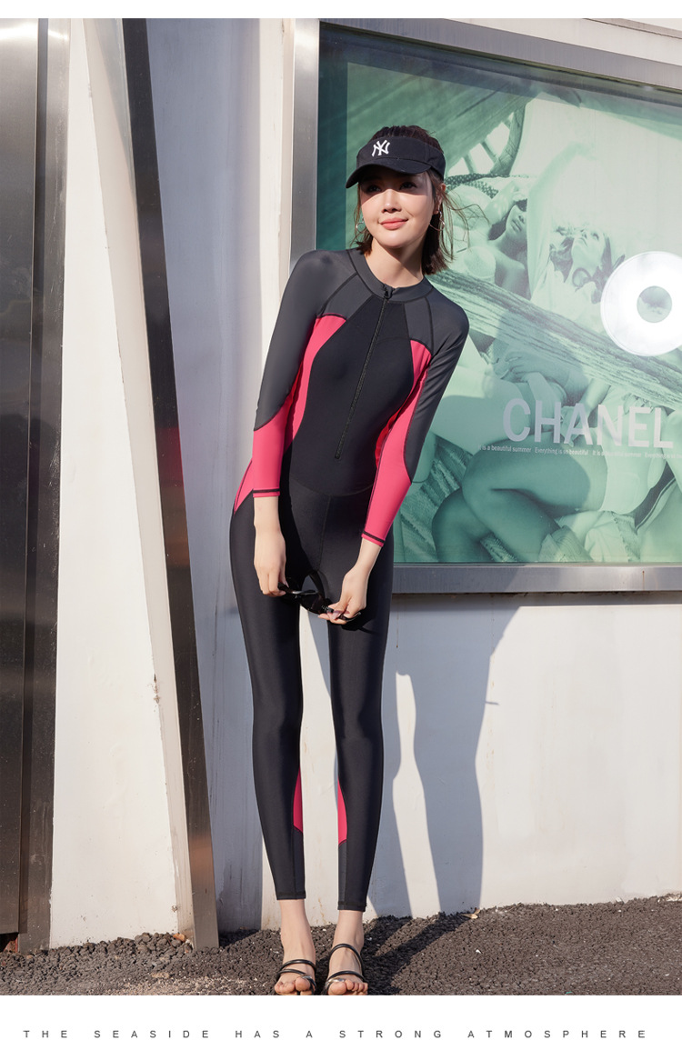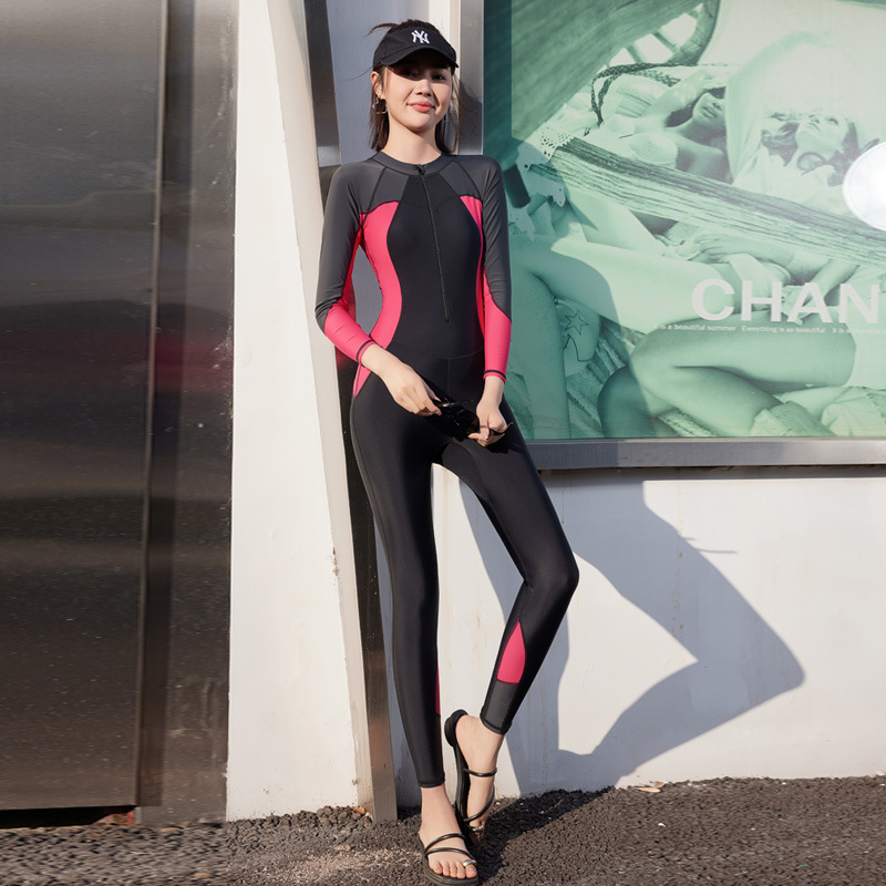 슬림핏 슬림 선스크린 긴팔 바지 하이넥 지퍼 스포츠 수영복 여성 스노클링 다이빙 세트