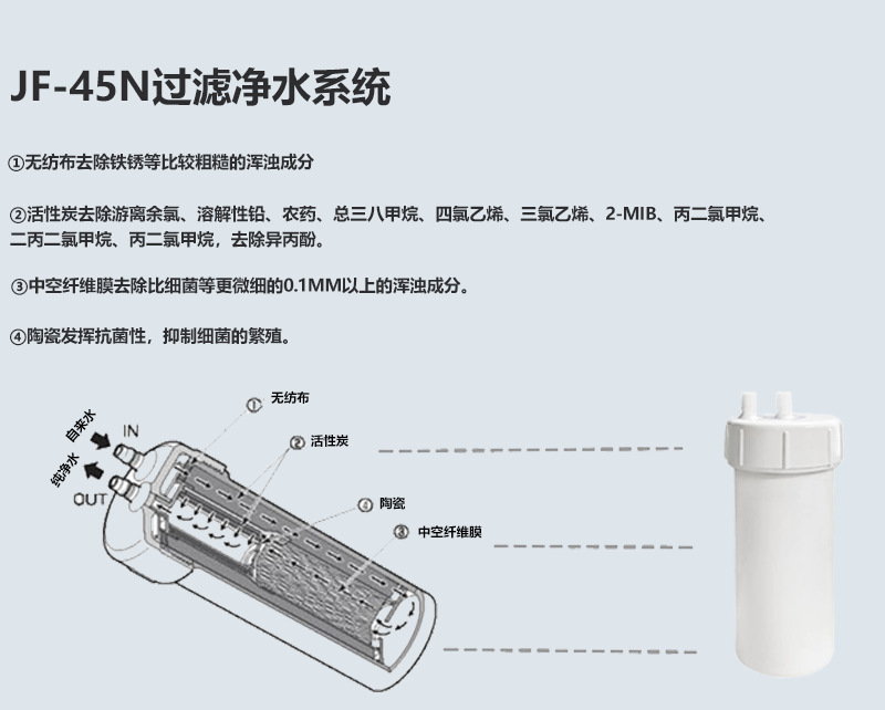 국경 간 일본 정수기 필터 요소 JF-45N 활성탄 필터 요소 가정용 주방 필터 요소 JF-43N 교체 필터 요소