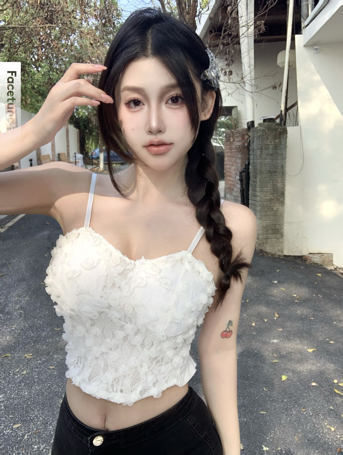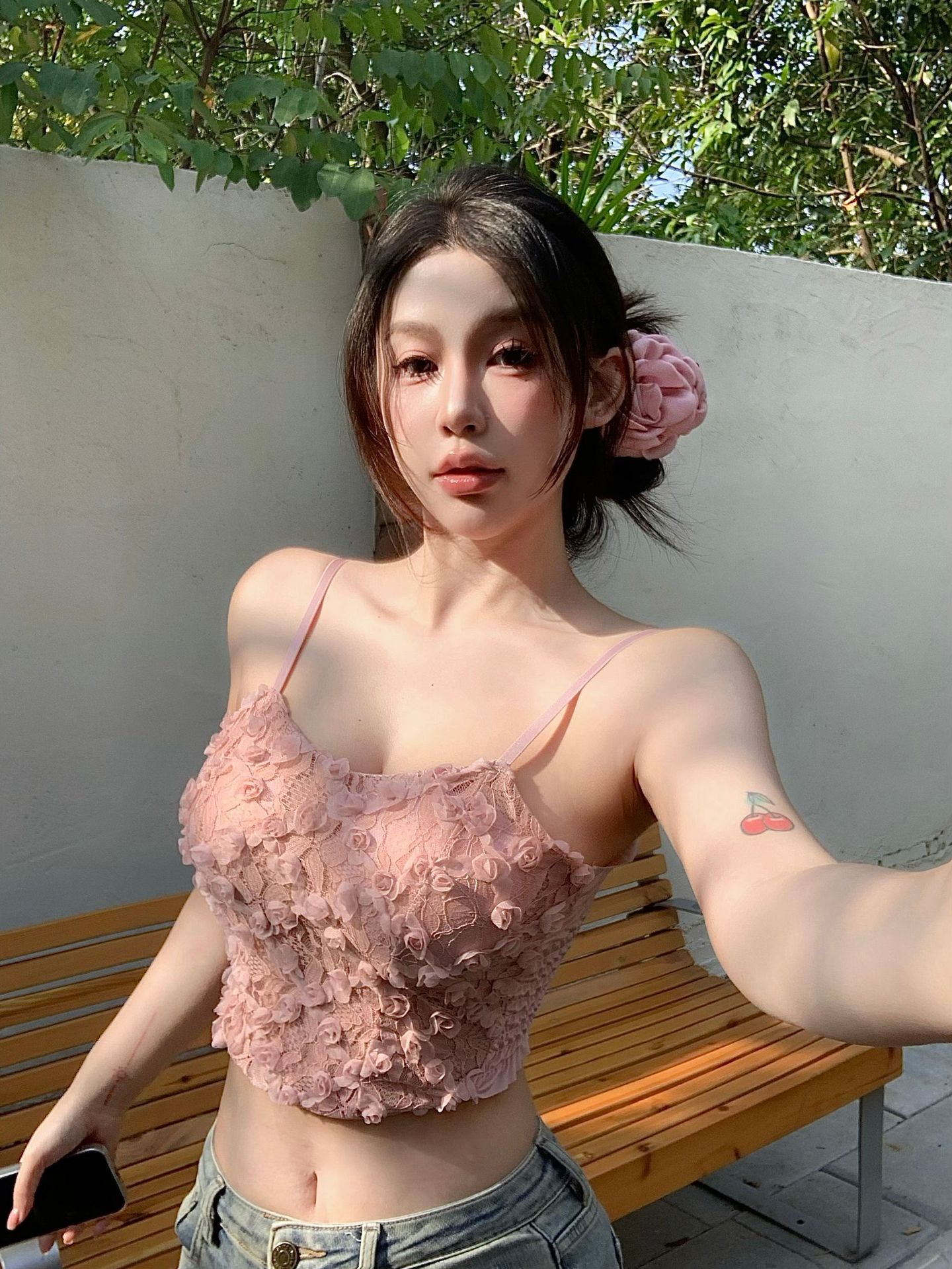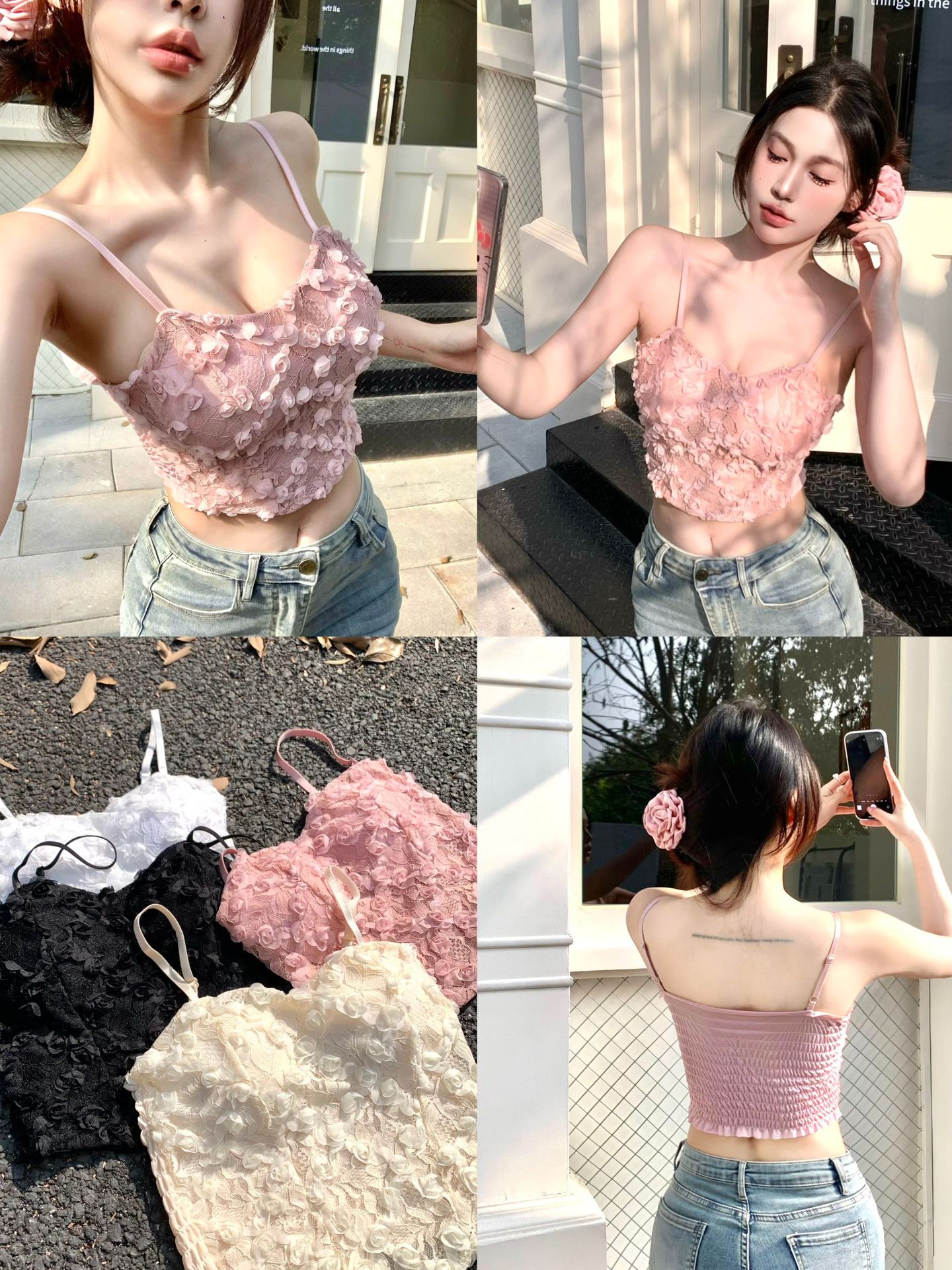 3 차원 꽃 민소매 끈이없는 조끼 여성 가을 슬림 핏 달콤하고 뜨거운 가슴 포장 디자인 백리스 짧은 아름다운 탑